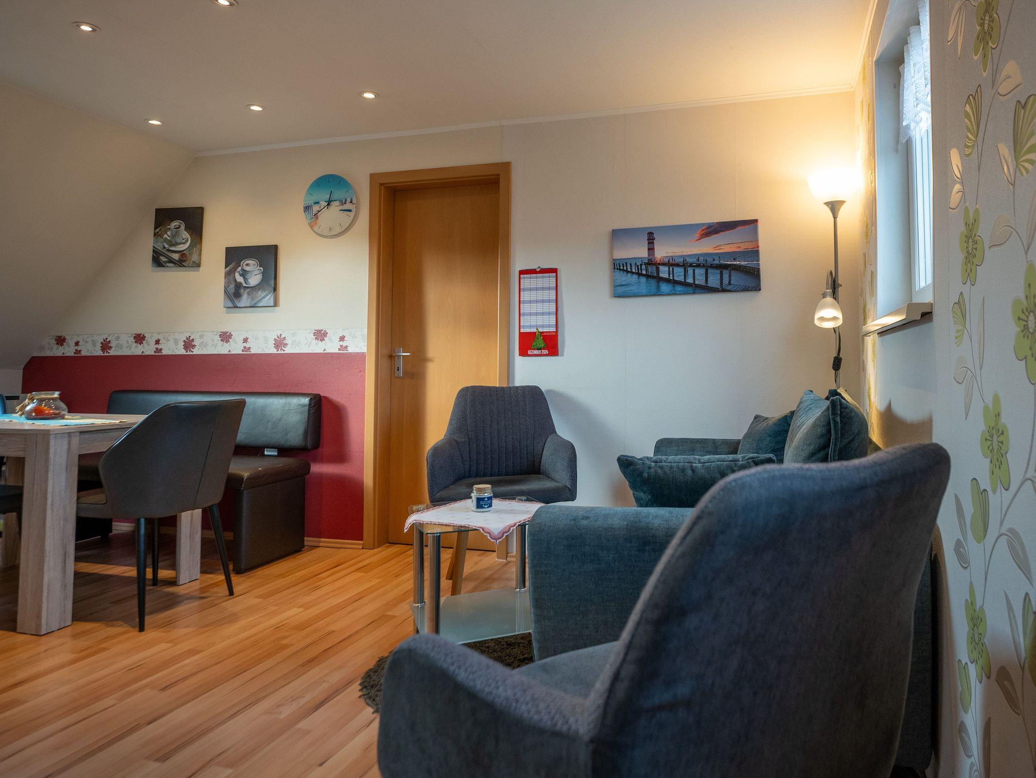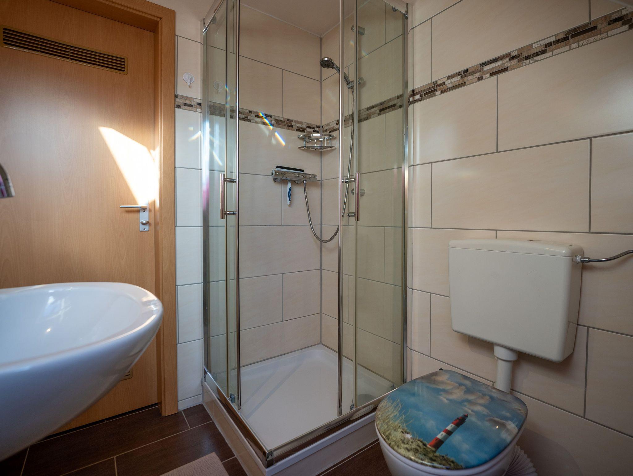 In der Wohnküche befindet sich eine voll ausgestattete Küchenzeile mit Kaffeemaschine, Wasserkocher, Toaster, Geschirrspüler, Backofen mit vier Ceranfeldplatten, Mikrowelle und Kühlschrank mit Gefrierfach. Eine gemütliche Essecke rundet diesen Bereich ab. Der Wohnbereich lädt mit einem Sofa und seinen Cocktailsesseln sowie einem 32 Zoll Flachbild Fernseher zum Relaxen ein. Ein Schlafzimmer ist mit einem Doppelbett (1,60 m x 2,00 m) ausgestattet. Das ander schlafzimmer (Kinderzimmer) ist mit 2 Einzelbetten (0,90 m x 2,00 m) versehen. Des Weiteren steht für ein Kleinkind, ein Kinder-Reisebett zur Verfügung. Das Bad ist mit einer Dusche, einer Toilette sowie einem Waschbecken ausgestattet.