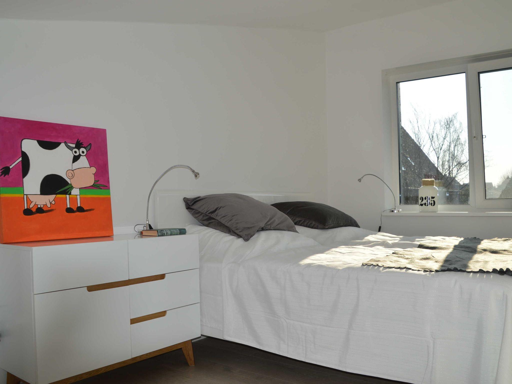 Das modern eingerichtete Ferienhaus liegt im grünen Stadtteil Aldenburg. Die Maadestraße ist eine Sackgasse und daher besonders ruhig. Die Südterrasse ist von der Straße nicht einsehbar, so daß Sie Ihre Privatsphäre in Ruhe genießen können. Auf der Nordterrasse können Sie sich im Schatten erholen oder überdacht dem Regen trotzend draußen sitzen.