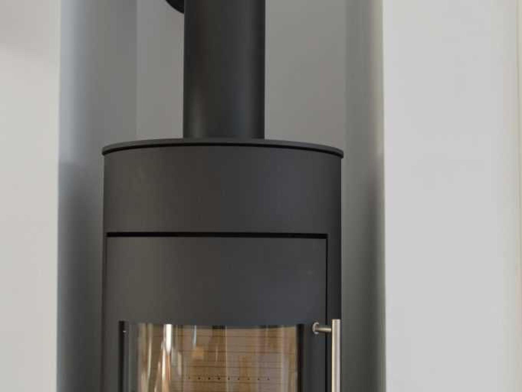 Im Wohnraum befindet sich ein leicht bedienbarer Holzofen mit einer Glasscheibe. Hier soll an kühleren Tagen das Feuer für mehr Behaglichkeit und Gemütlichkeit sorgen.