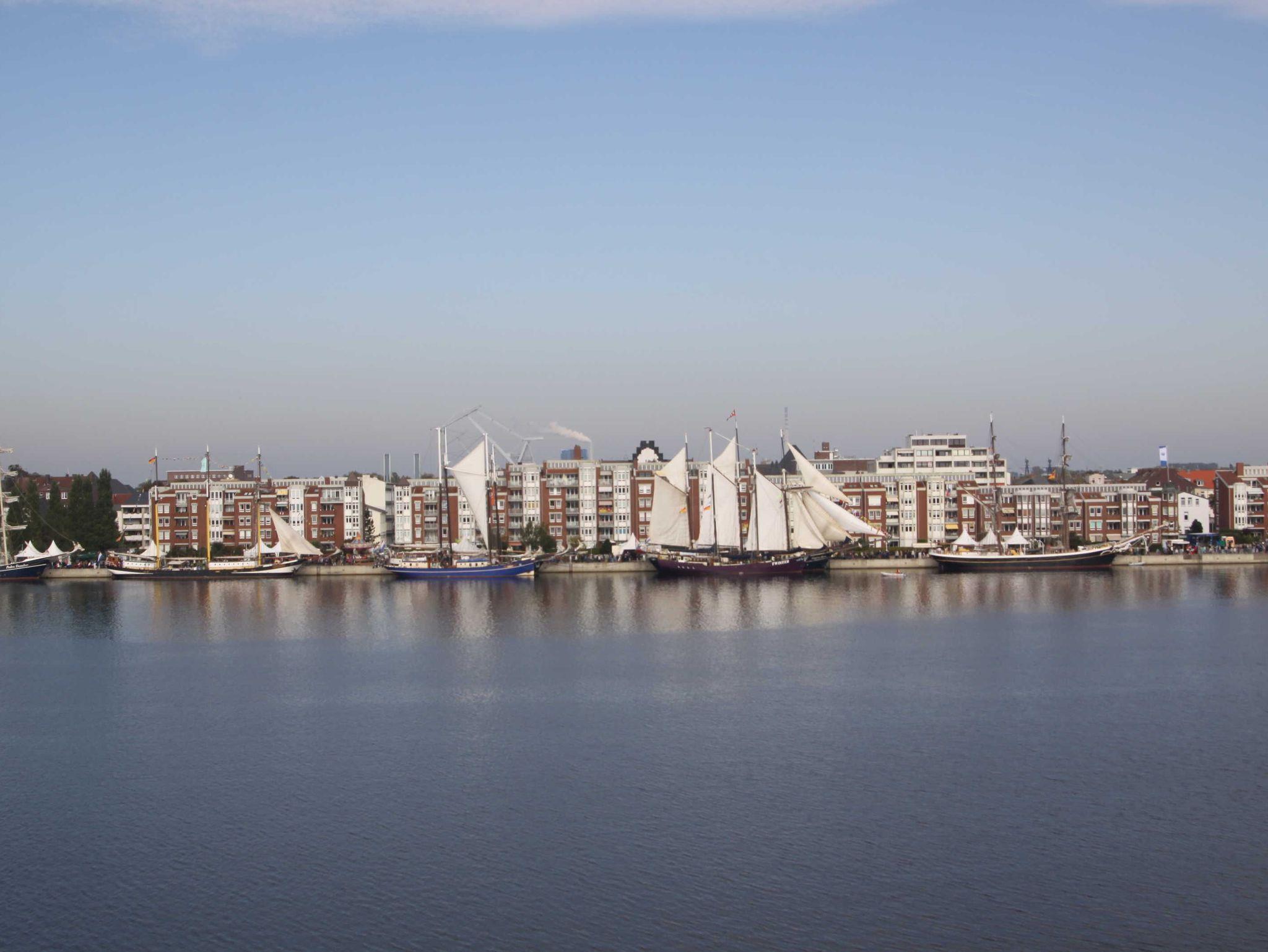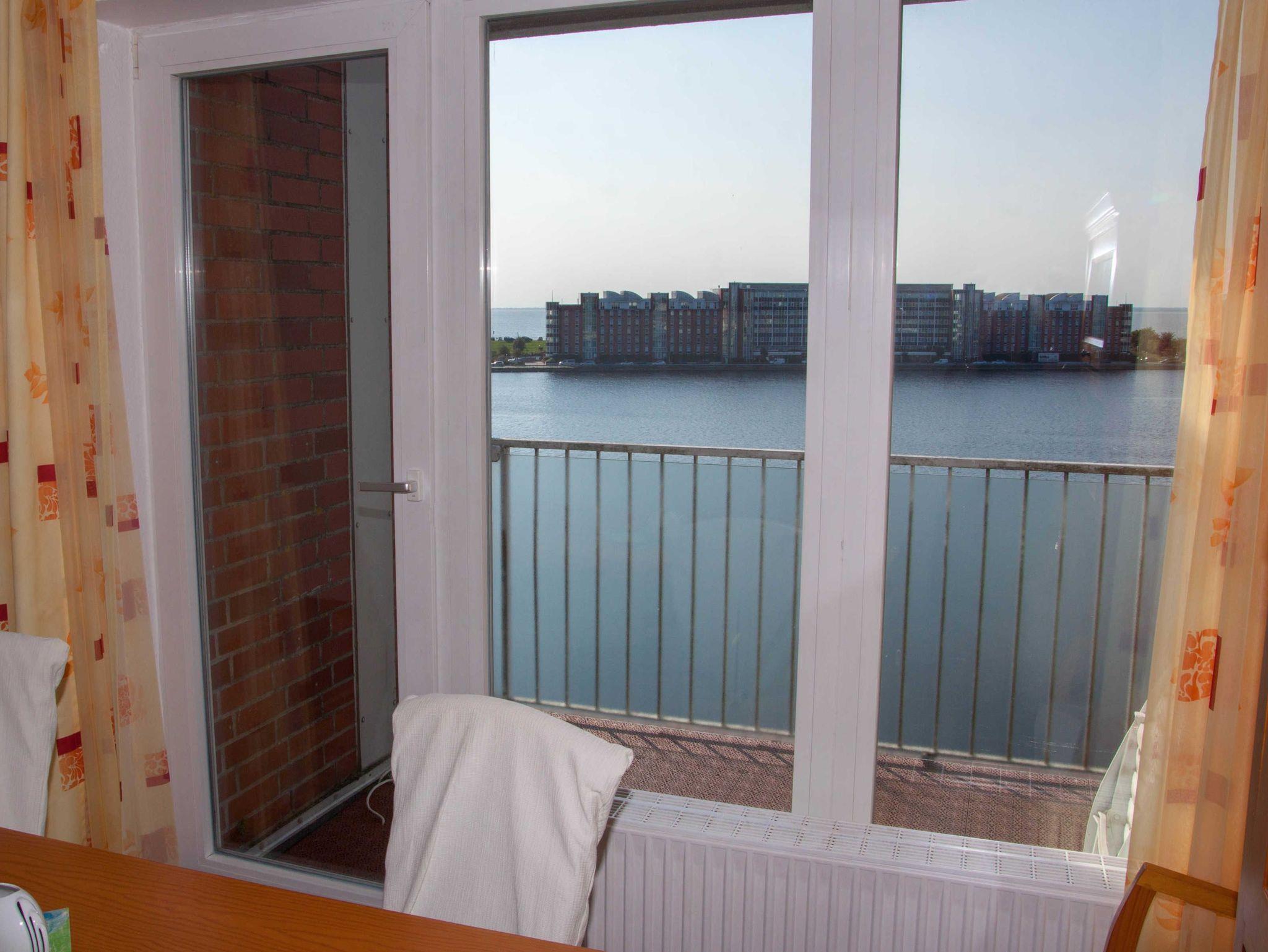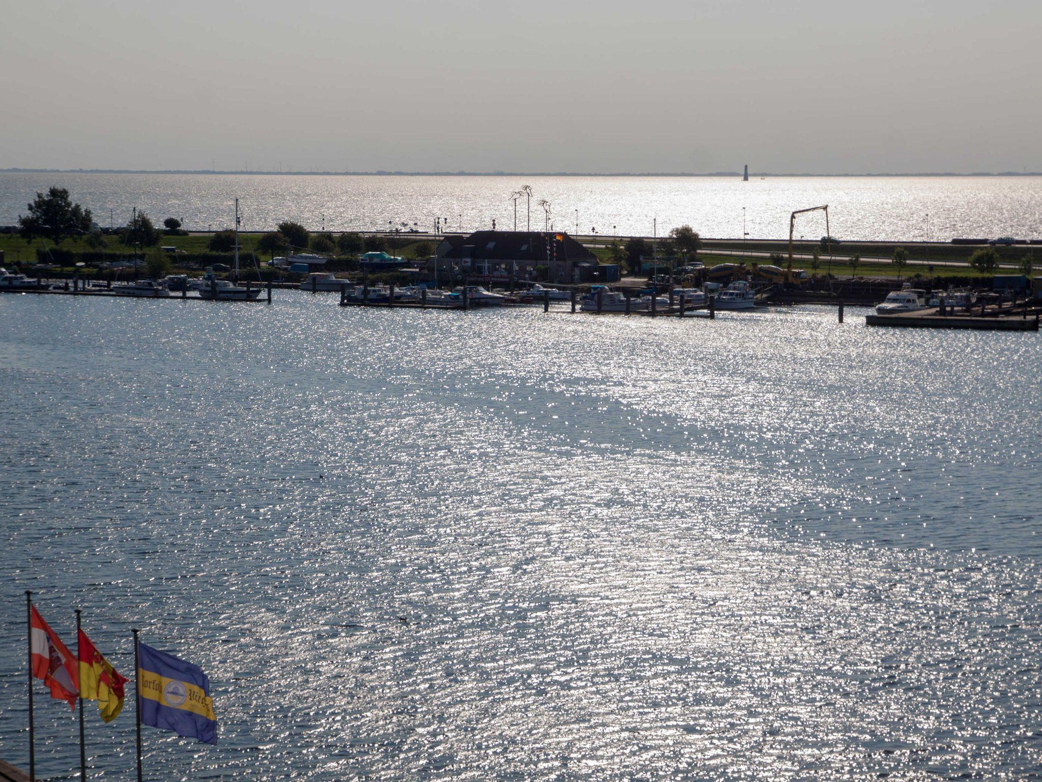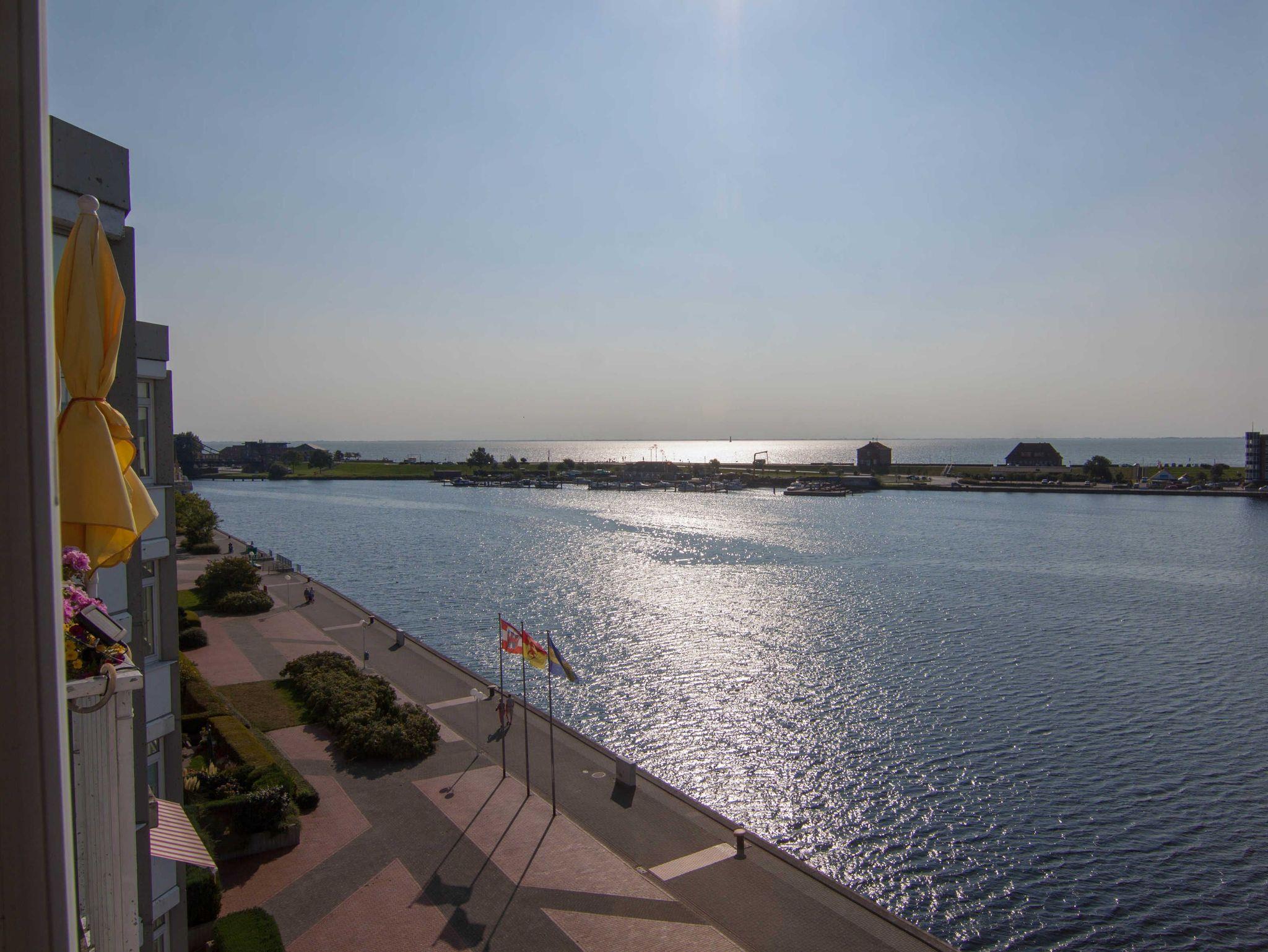 2 Zimmer Ferienwohnung mit Garagenstellplatz (zubuchbar gegen Gebühr), Balkon und mit Blick über den Hafen und Bontekai für maximal 3 erwachsene Personen. WLAN ist nicht verfügbar!