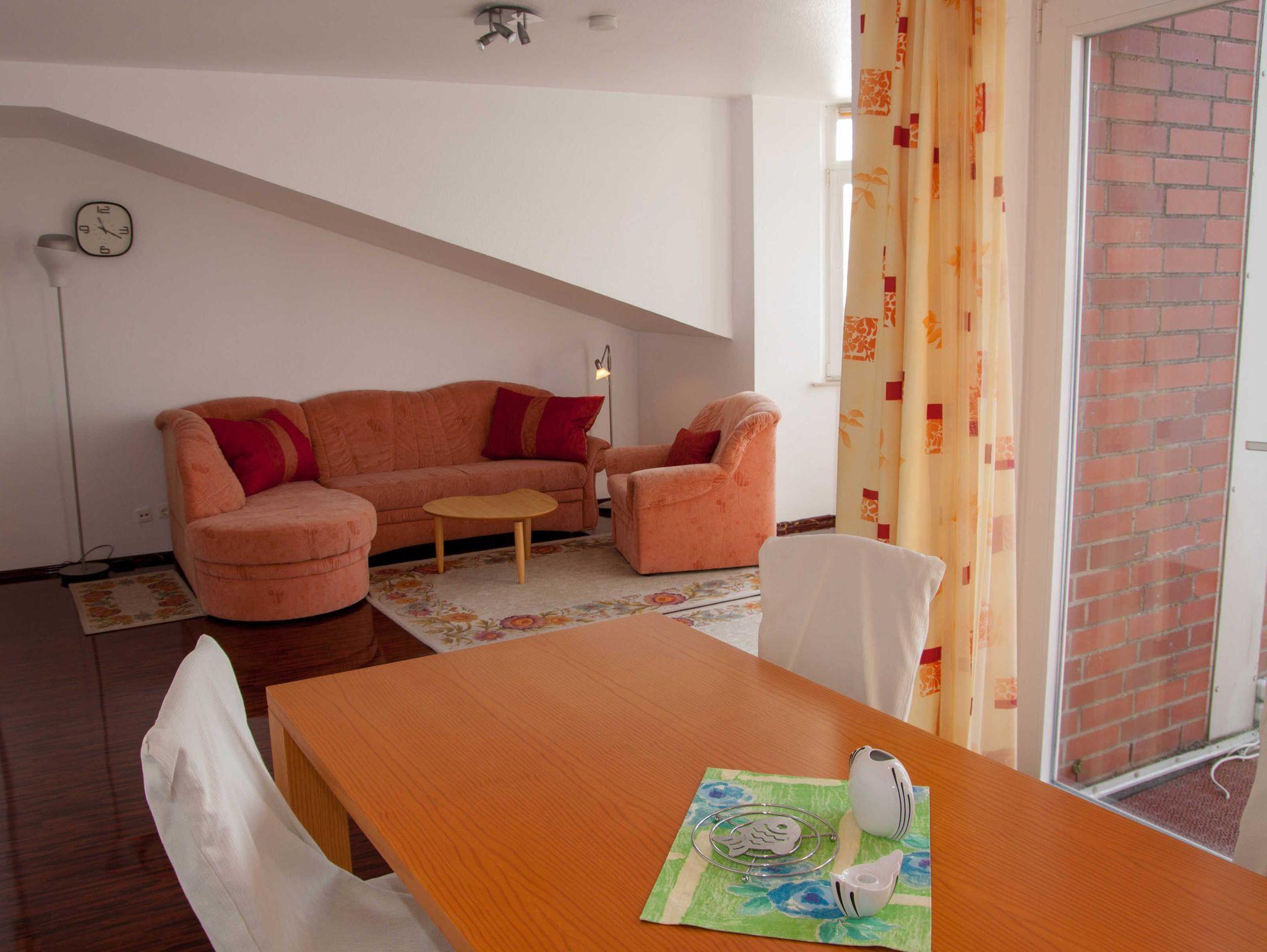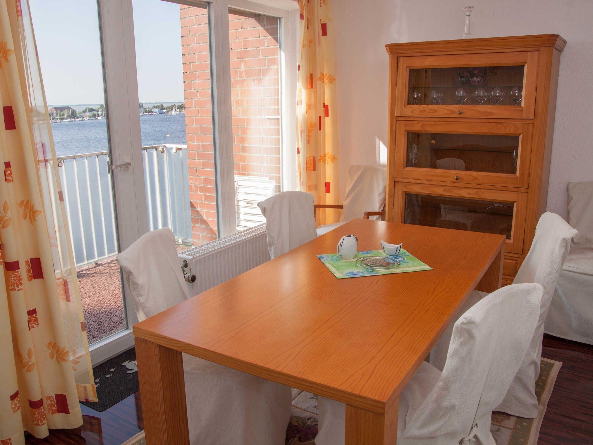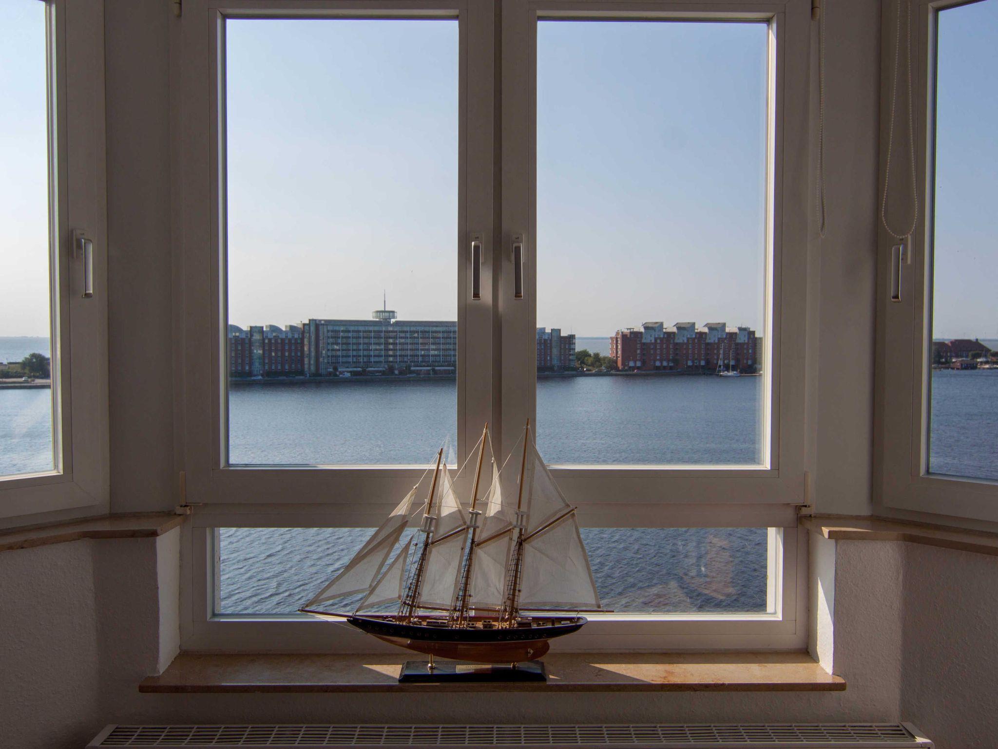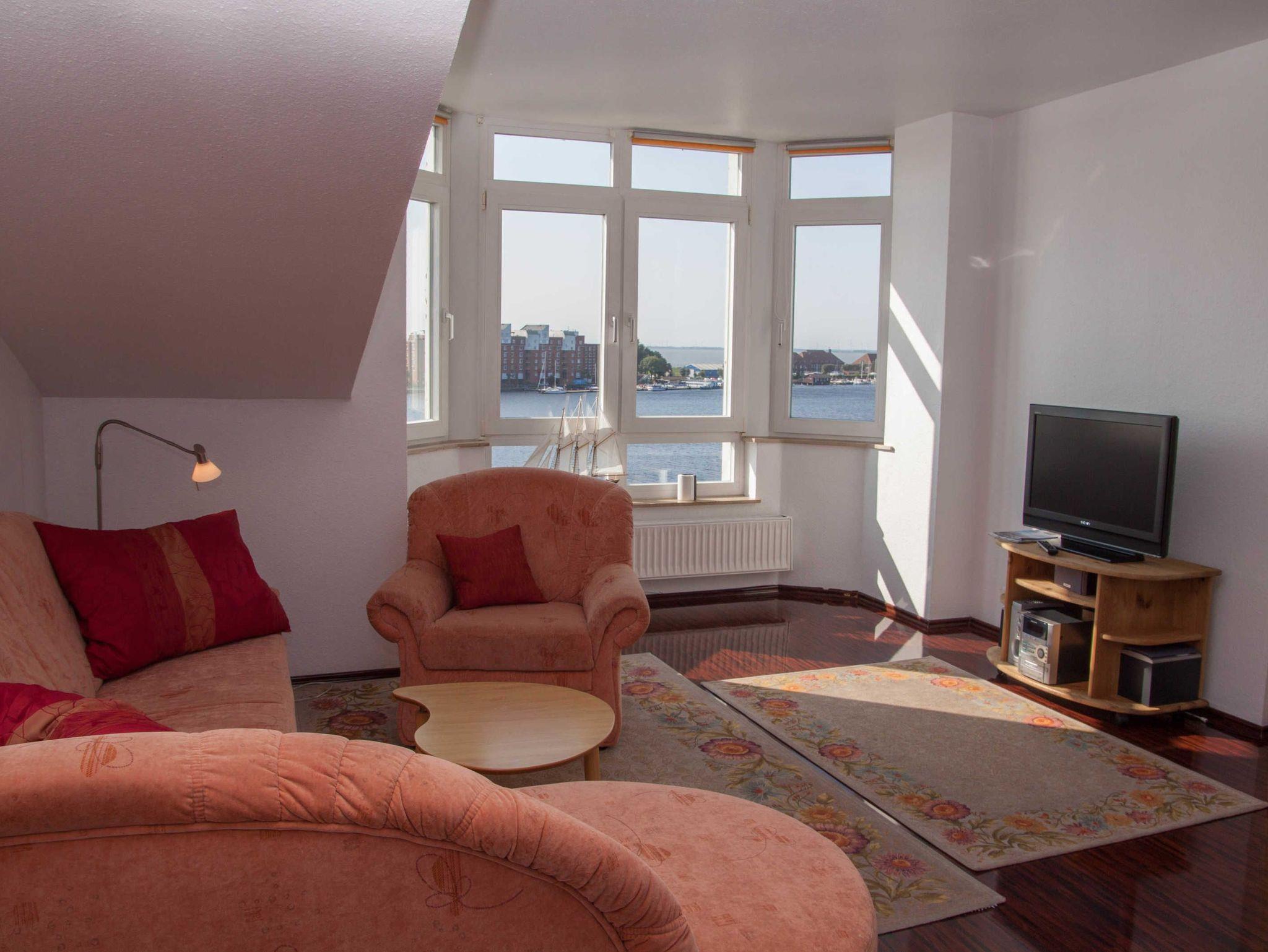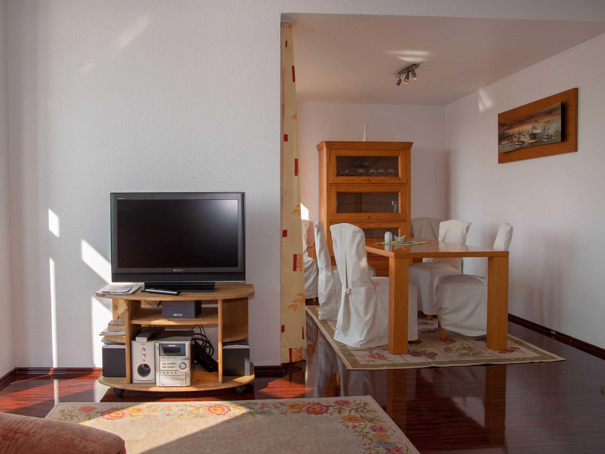2 Zimmer Ferienwohnung mit Garagenstellplatz (zubuchbar gegen Gebühr), Balkon und mit Blick über den Hafen und Bontekai für maximal 3 erwachsene Personen. WLAN ist nicht verfügbar!