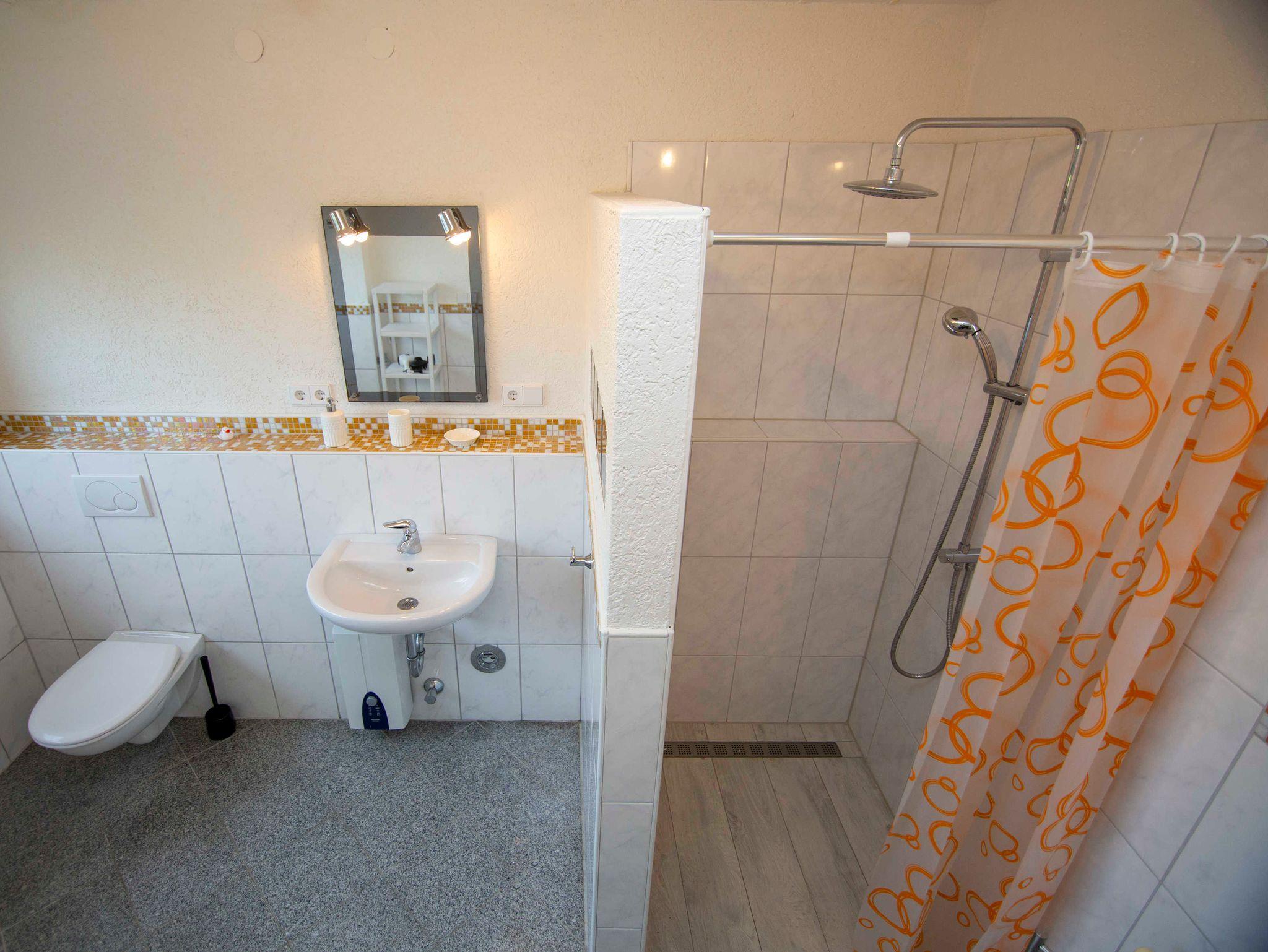 Neben der modernen und sehr behaglichen Einrichtung befindet sich im Keller eine moderne Waschküche mit Waschmaschine und Trockner. Unser Apartment Rosa liegt auf dem Grundstück einer ehemaligen Spedition. Dem Gast steht reichlich Parkraum zur Verfügung.
