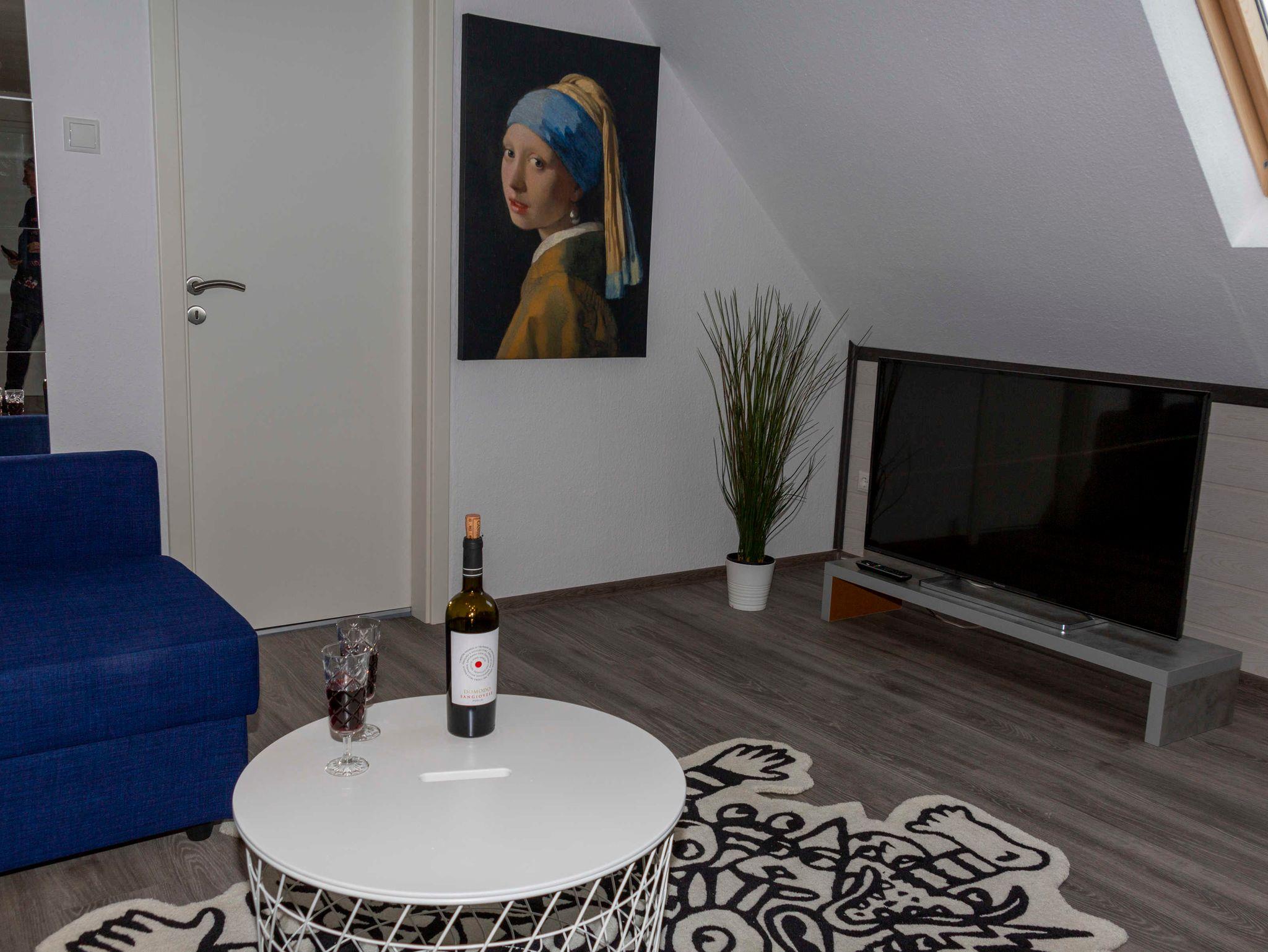Im Schafzimmer bietet ein Doppelbett mit durchgehender Matratze (1,80x2m) sowie ein Fernseher, welcher im Schrank integriert ist, viel Komfort. Die Schlafcouch im Wohnzimmer lässt sich in eine bequeme Liegefläche von 1,40 x 2m verwandeln. WLAN, sowie ein großes Smart-TV Gerät mit installiertem Netflix bietet Ihnen alles, was das Medienherz begehrt. Die Küche ist voll ausgestattet mit einem modernen E-Herd mit Ceranfeld und Backofen, Geschirrspüler, Toaster, Kaffemaschine, Mikrowelle, Wasserkocher sowie einem Kühlschrank mit Eisfach.