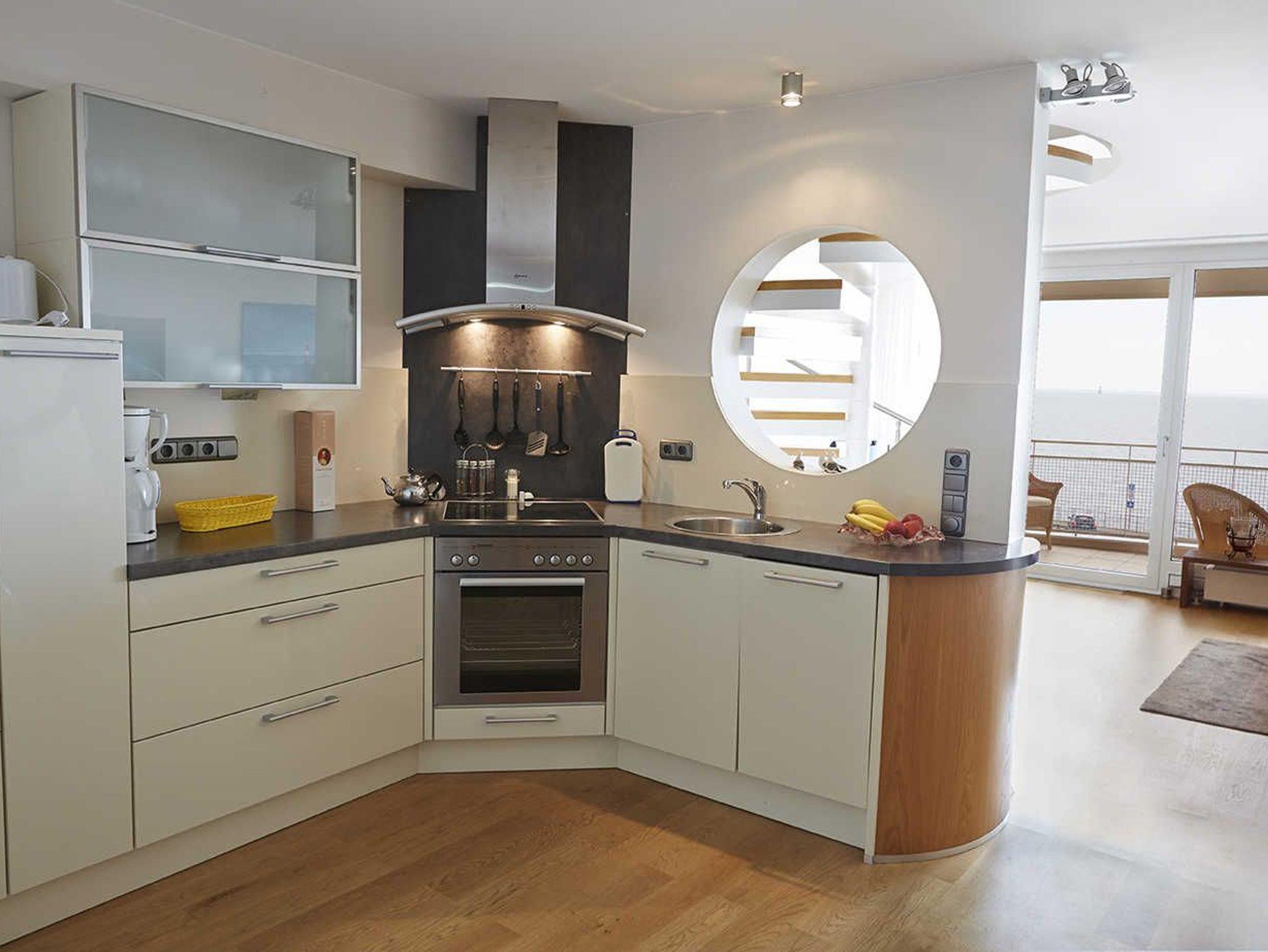 Nach dem Betreten der Wohnung gelangt man durch einen kleinen Flur vorbei am Gäste-WC in den großzügigen Wohn-und Essbereich. Diesem ist der Südbalkon vorgelagert und ermöglicht Ihnen somit einen einzigartigen Meeresblick. Vom offenen Wohn-, Essbereich aus gelangt man über eine Wendeltreppe nach oben in die Schlafgemächer und in das moderne Bad mit Dusche. Die verschiedenen Ebenen dieser Maisonette-Wohnung geben der Wohnung das besondere Etwas. Eine moderne Waschküche im Keller kann bei Bedarf benutzt werden. Wäschmünzen müssen beim Hausmeister gegen Entgeld erworben werden.