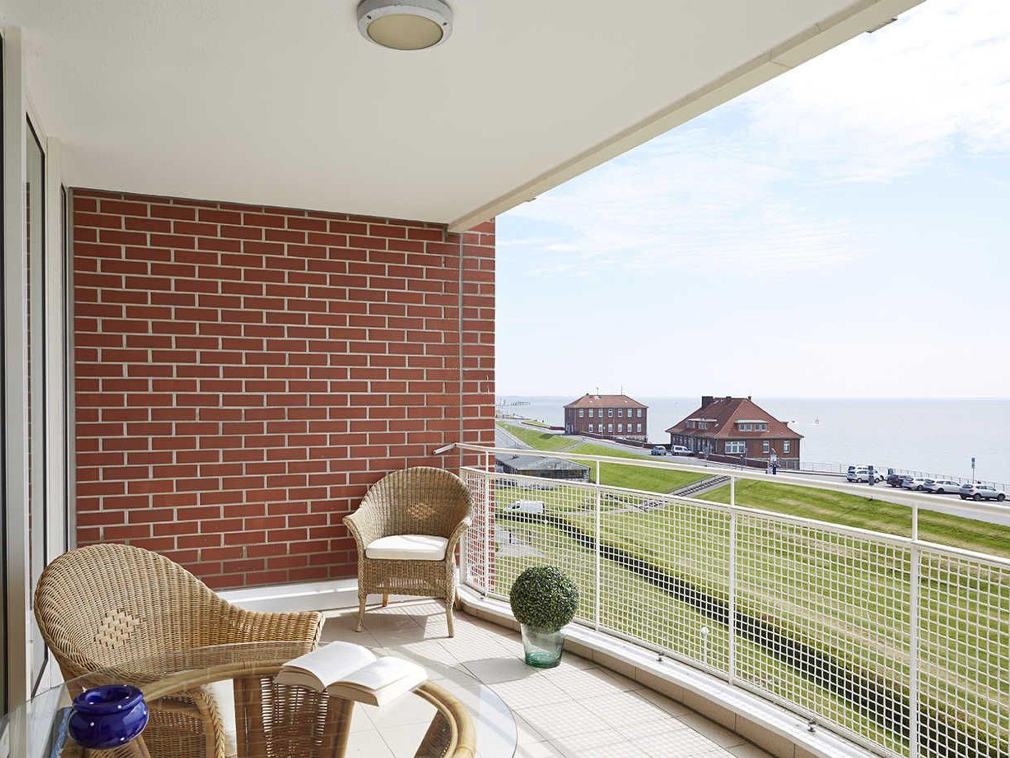 Vom Wohnzimmer sowie vom Balkon aus schauen Sie auf die weite Nordsee. Erleben Sie das Wechselspiel der Gezeiten mit seiner Farbenpracht und dem einzigartigen Weltnaturerbe niedersächsisches Wattenmeer hautnah.