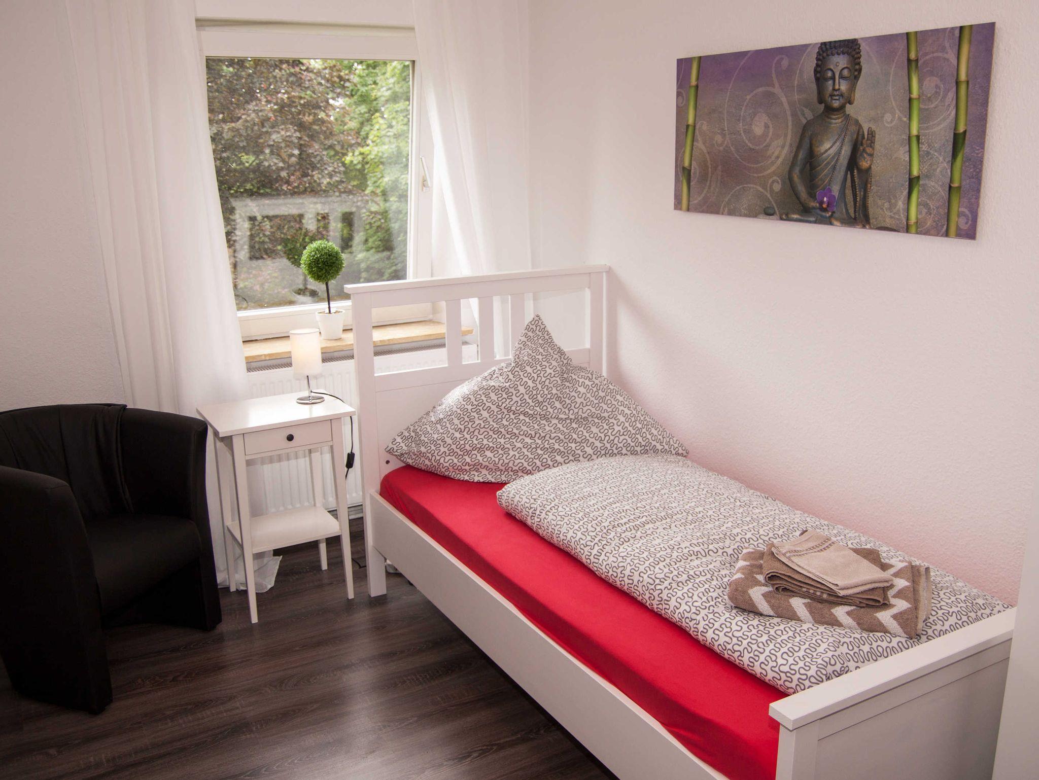 Ein gemütliches Schlafzimmer mit einem Doppelbett sowie zwei weitere Schlafzimmer mit je einem weiteren Bett, gewähren genügend Raum für die Traumwelten. In allen Zimmern stehen Kleiderschränke für Ihr Reisegepäck bereit. Die Wohnung ist ausgelegt für maximal vier Personen mit einem Kleinkind bis 3 Jahren. Kinderbetten werden vom Vermieter nicht zur Verfügung gestellt.