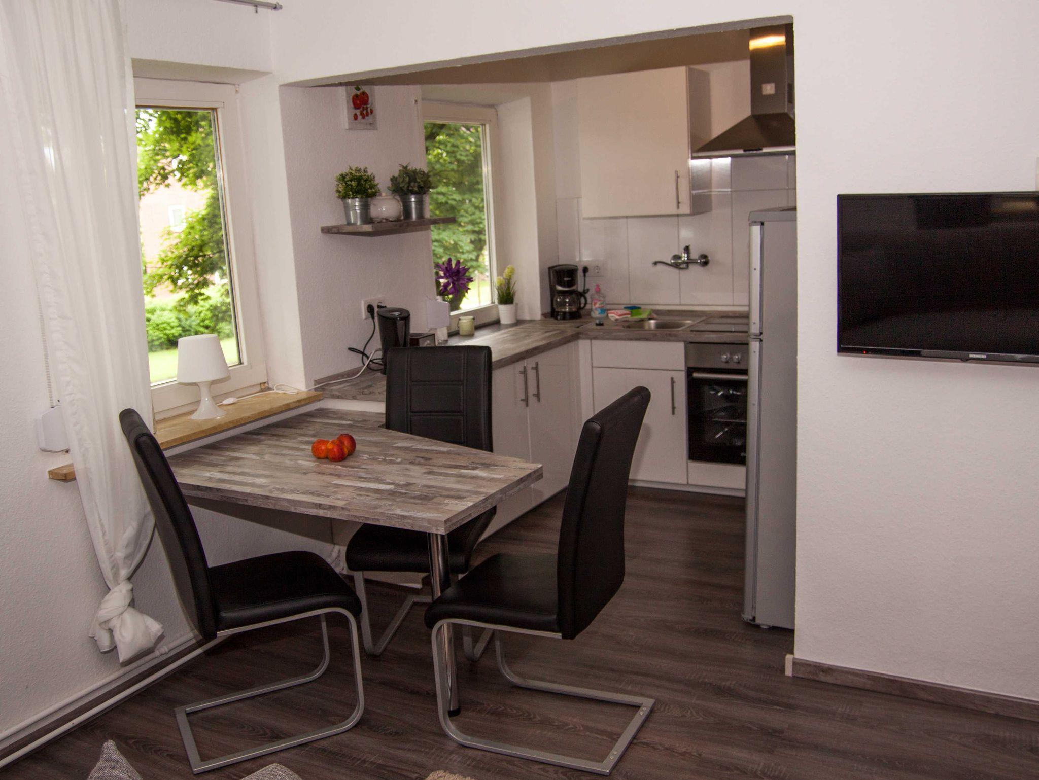 Die Küche ist komplett ausgestattet mit Kaffeemaschine, Wasserkocher, Kühl-Gefrierkombination, Ceranfeldherd . Ein Esstisch mit sehr bequemen Stühlen laden zum Speisen ein.