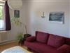 Das helle Wohnzimmer hat eine Schlafcouch mit einer Liegefläche von 1,40 m x 2,00 m, auf der zwei Personen übernachten können. Ein Fernseher mit Satellitenempfang und eine Musikanlage sind vorhanden.
