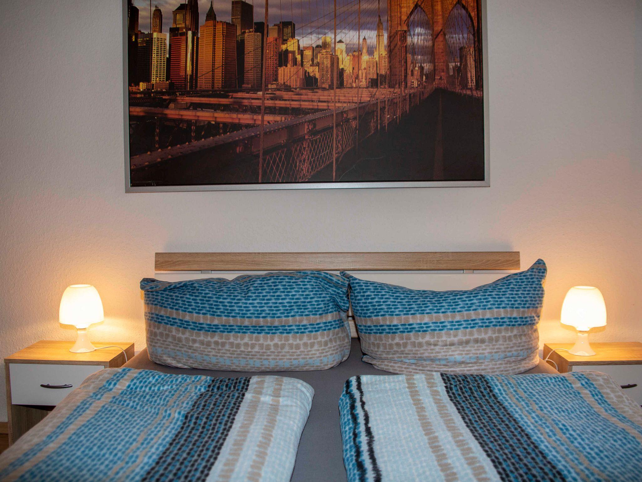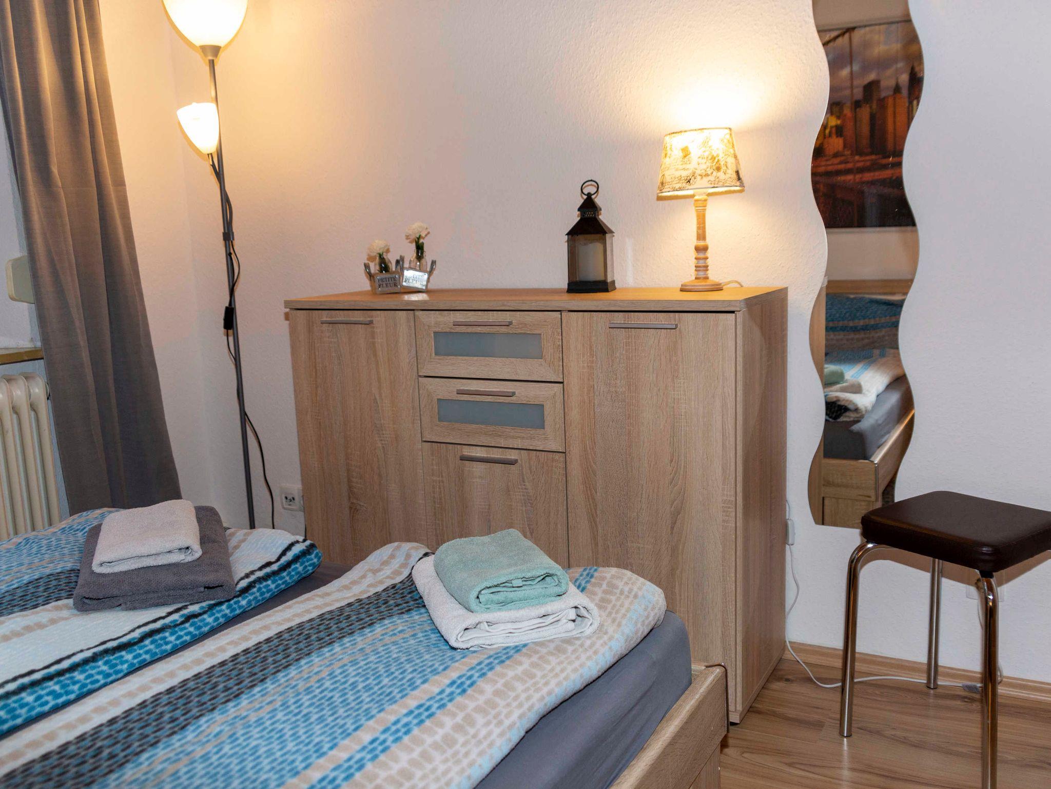 Das Schlafzimmer bietet Ihnen ein Bett mit den Maßen 1,40 x 2 m. Im Wohnzimmer lässt sich die Schlafcouch schnell in ein Bett verwandeln. Bei Bedarf stellen wir Ihnen gerne ein Zustellbett zur Verfügung. Mitgebrachte Fahrräder können auf Rücksprache mit dem Vermieter untergestellt werden. Und all das erhalten Sie zu einem Preis ohne Extragebühren! Hunde dürfen gerne mitreisen, bedürfen aber der Rücksprache! Es wird pro Hund und Nacht eine Gebühr in Höhe von 10 Euro fällig.