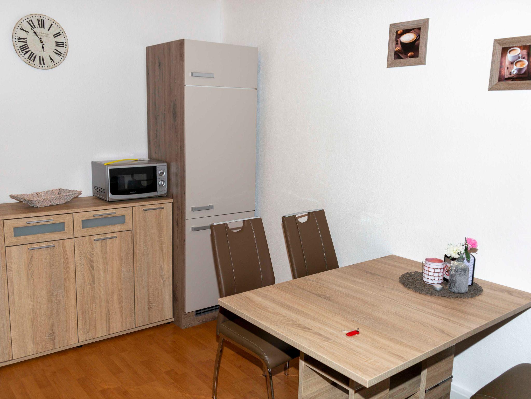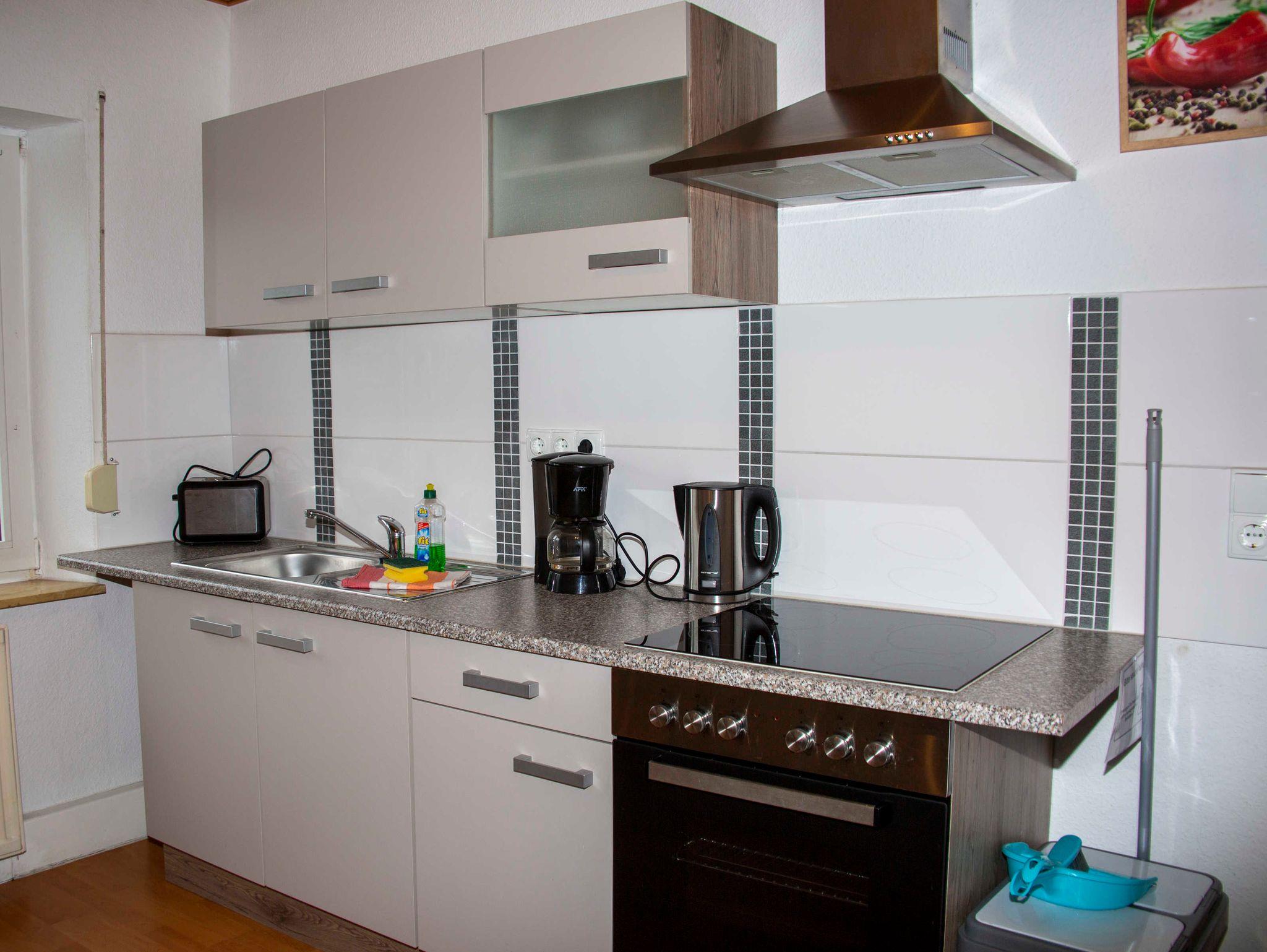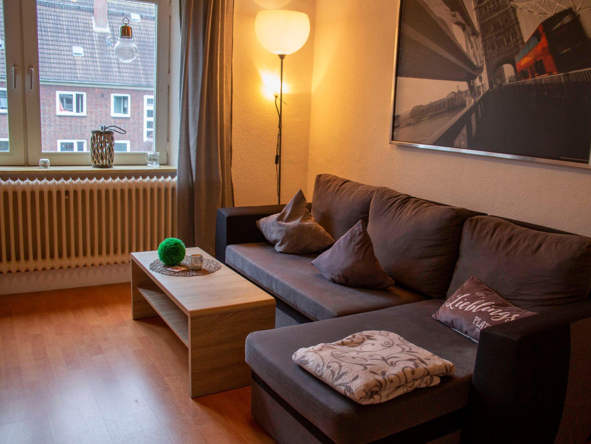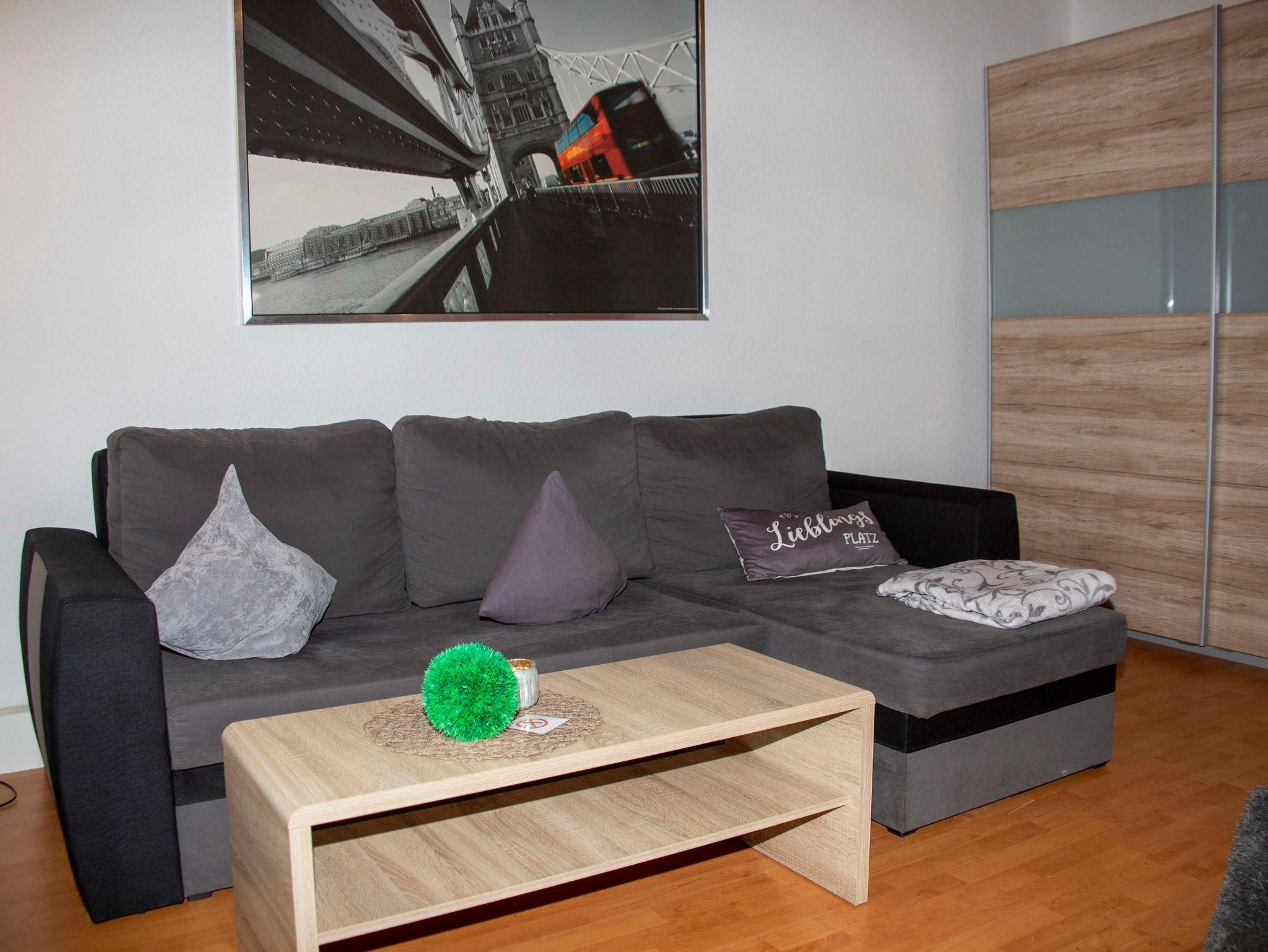 Komplett und modern ausgestattete 50qm große Ferienwohnung mit Küche und Wohnzimmer im jungen Wohnstil.