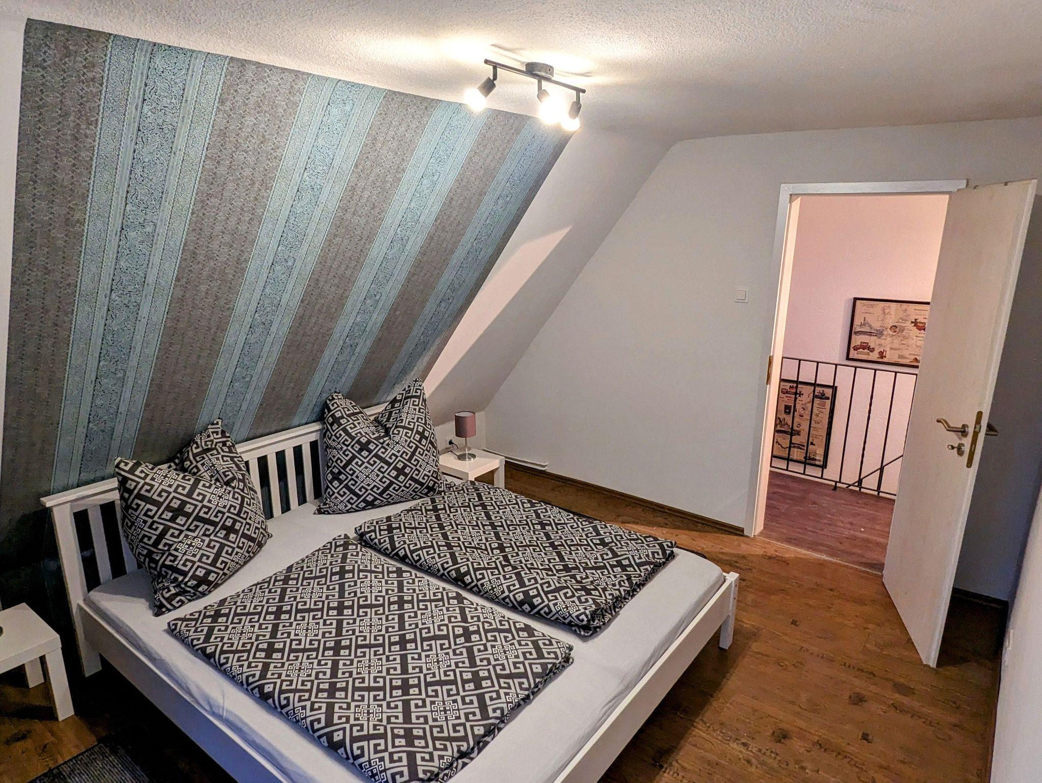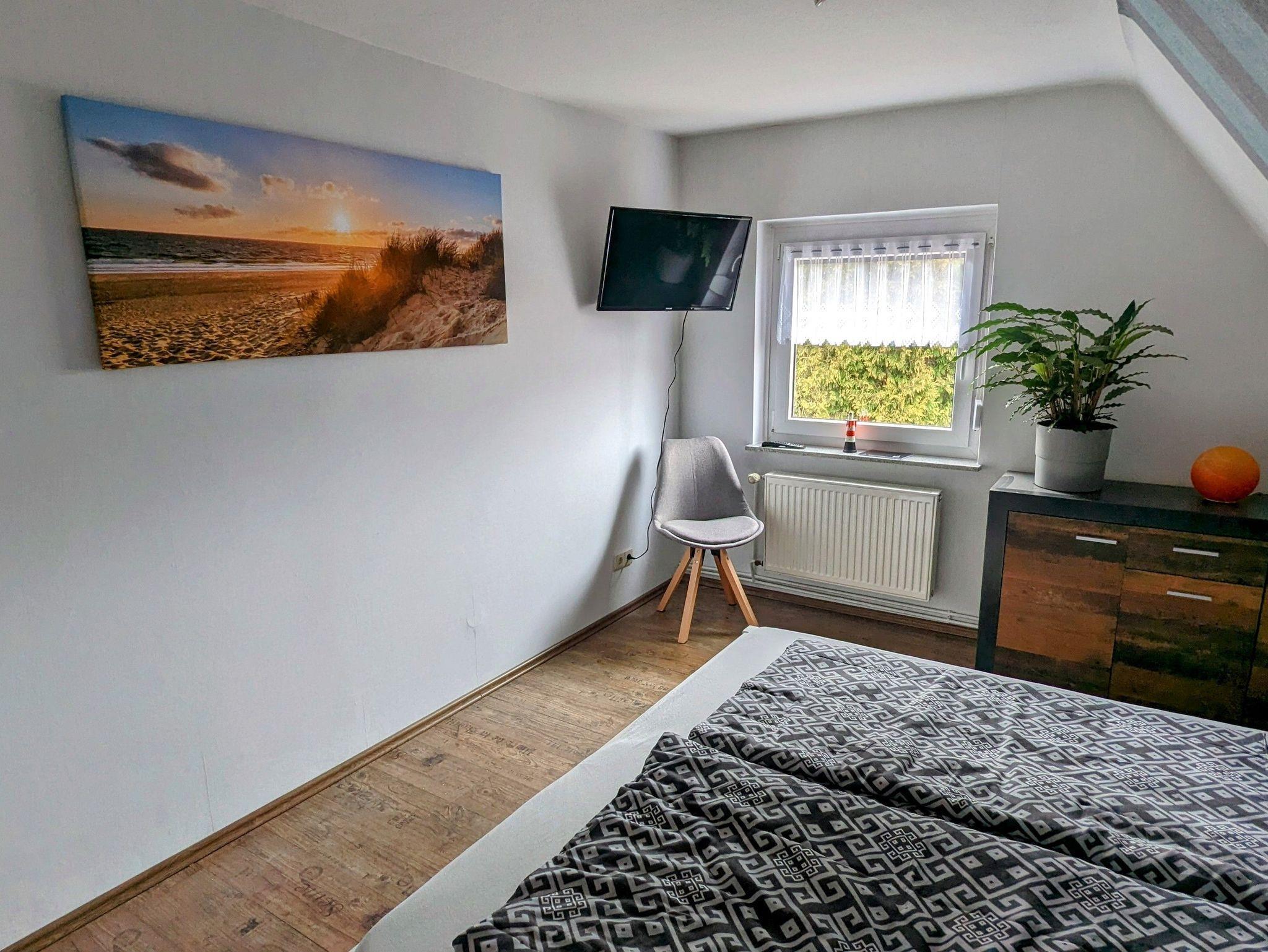 Im Obergeschoss befinden sich die beiden weiteren Schlafzimmer, eines mit einem gemütlichen 1,80m x 2,0m Bett einer Kommode und Flachbild TV.