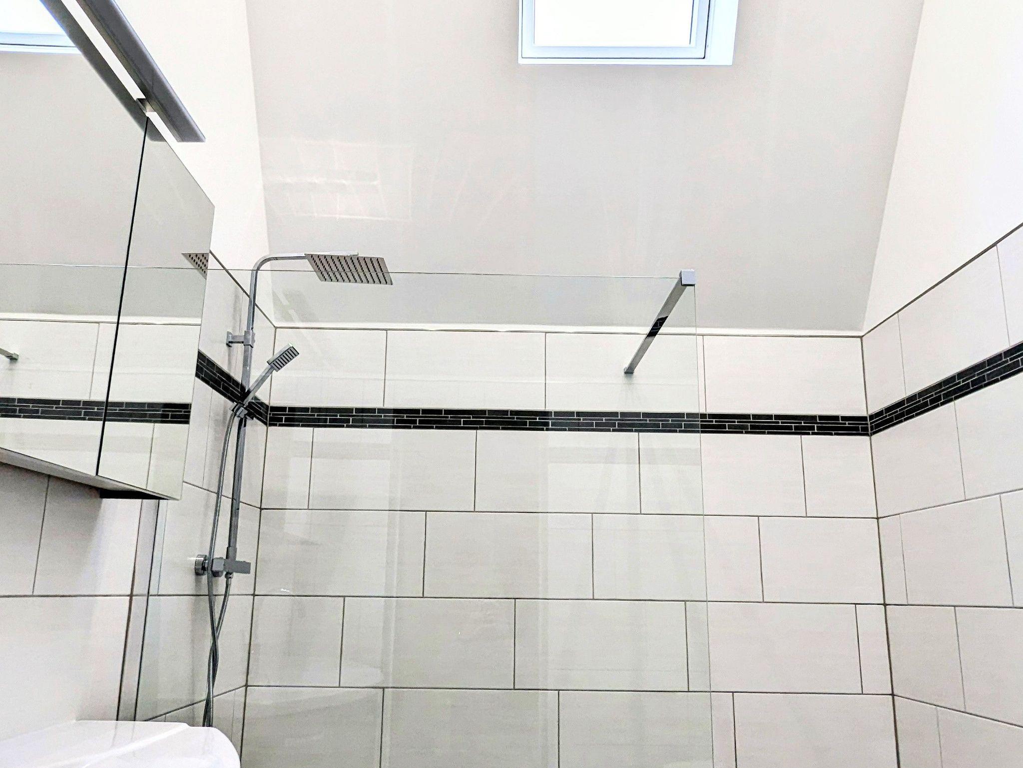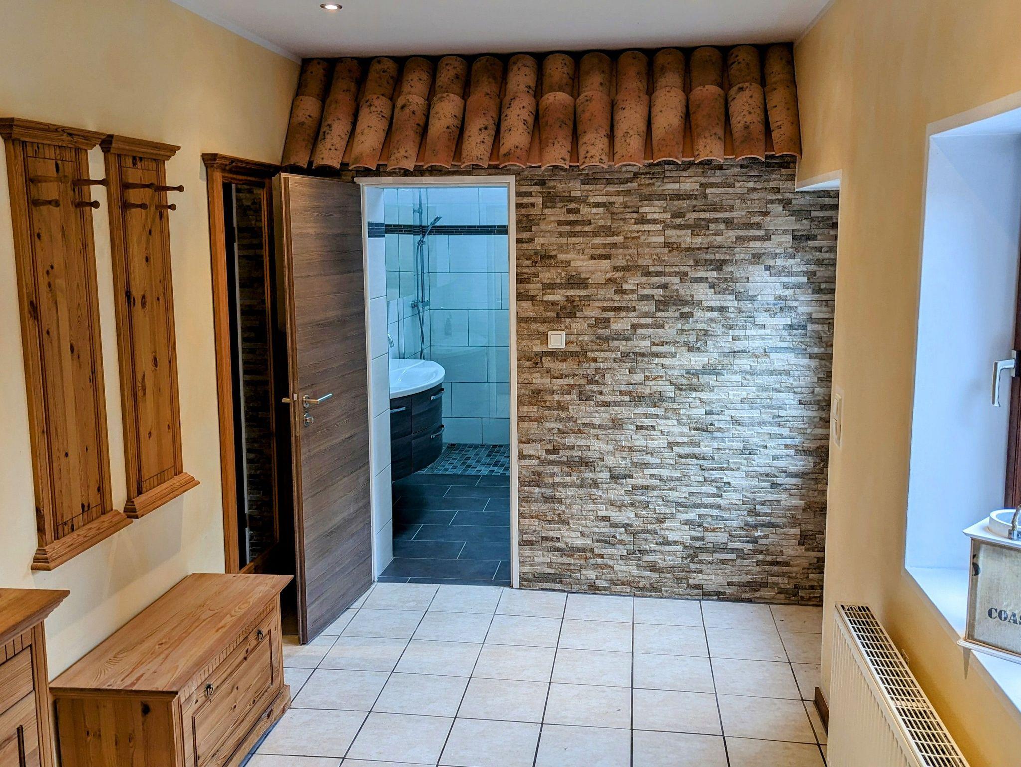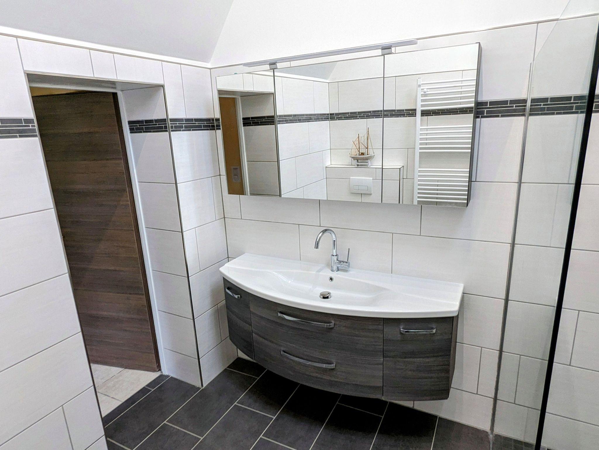 Des Weiteren liegt im Erdgeschoss das helle, neu gestaltete Bad mit WC und begehbarer Dusche.