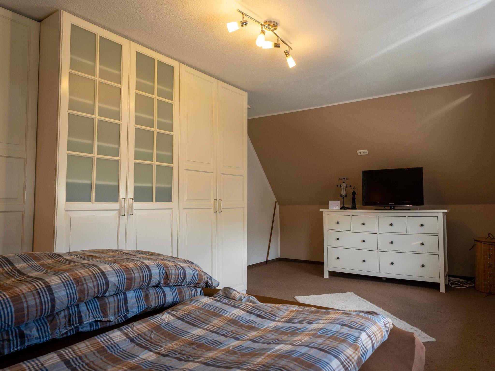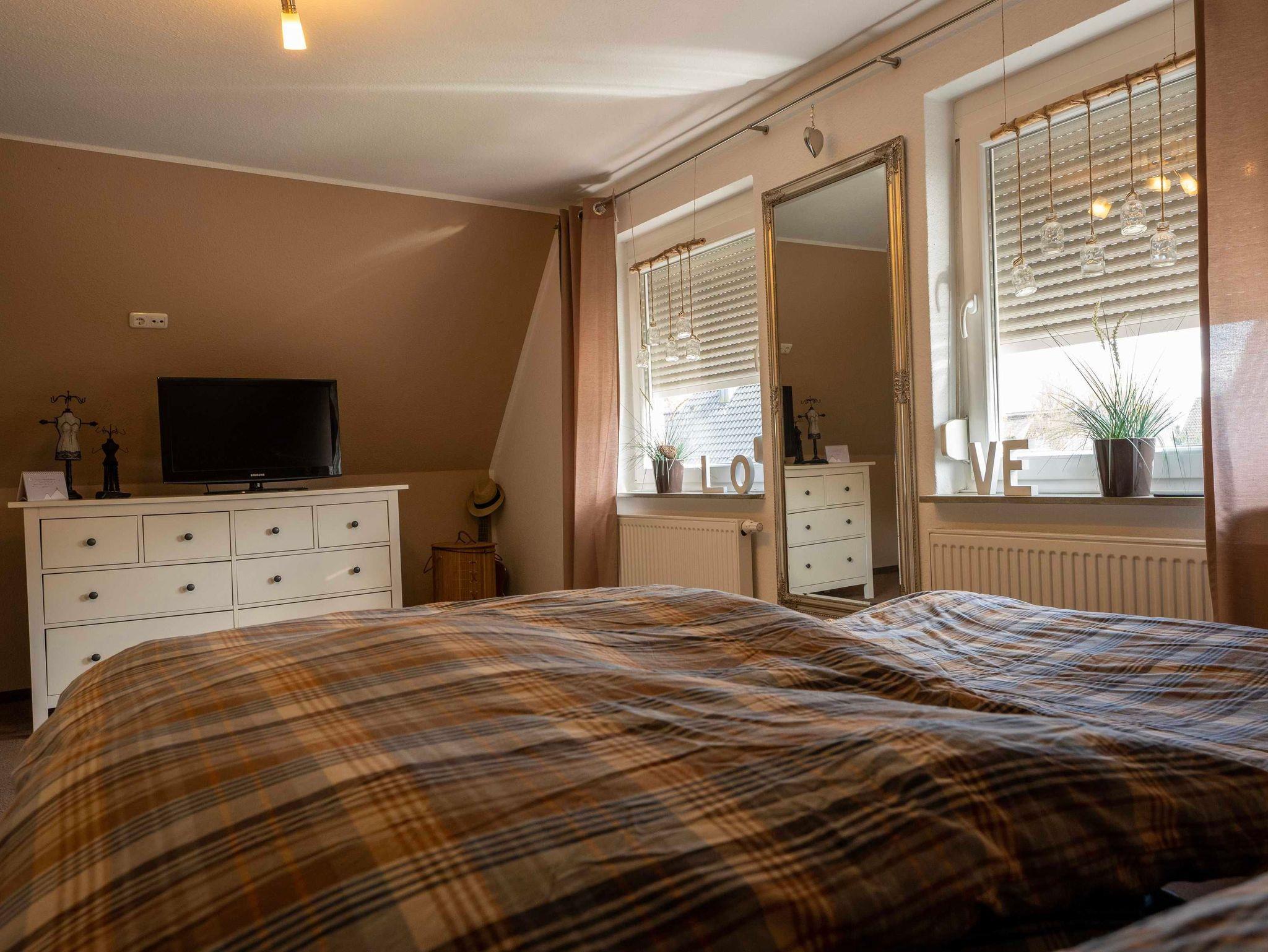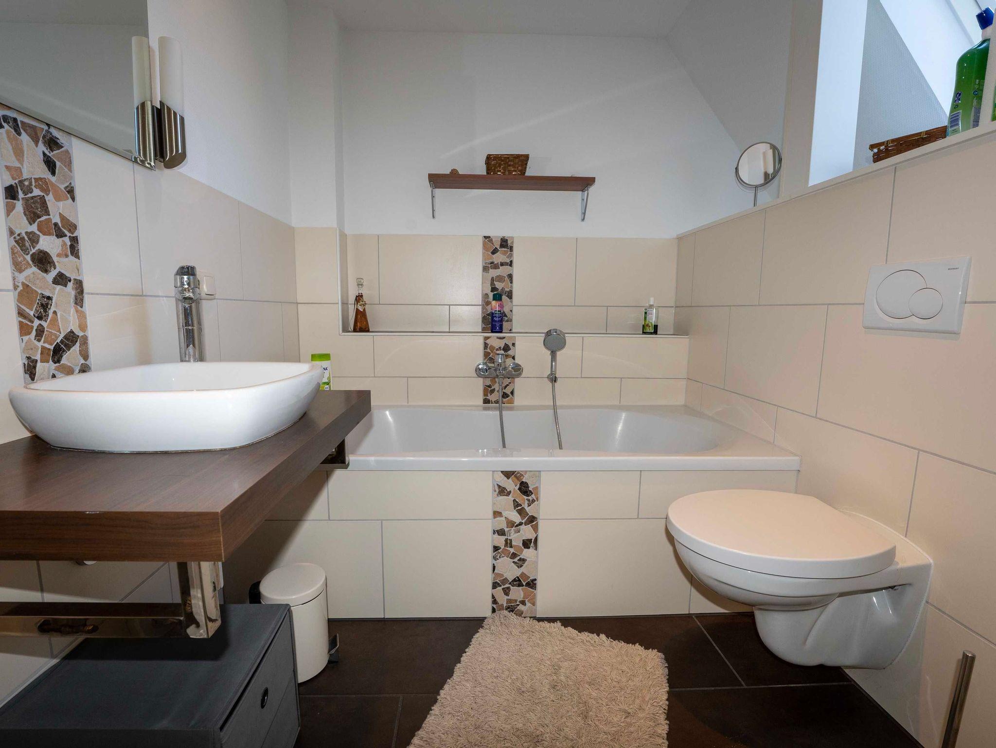 Die Küche ist mit Spülmaschine, Backofen,Toaster, Mikrowelle ausgestattet. Geschirr und dergleichen ist in ausreichenden Mengen vorhanden.Ausserdem befindet sich 1 Schlafzimmer mit einem Boxspringbett (140x200) mit einemzusätzlichen Fernseher sowie eine Gäste-WC im Ergeschoss.Im Obergeschoss finden Sie ein sehr geräumiges, gemütliches Schlafzimmer mit einem hochwertigen Boxspringbett (180x200)und einem extra Raum mit einem Bett von (160x200). Dieser Raum verfügt ist offen mit dem oberen Flur verbunden. Das Badezimmer ist mit Badewanne, einer Dusche und eingebautem Radio ausgestattet.