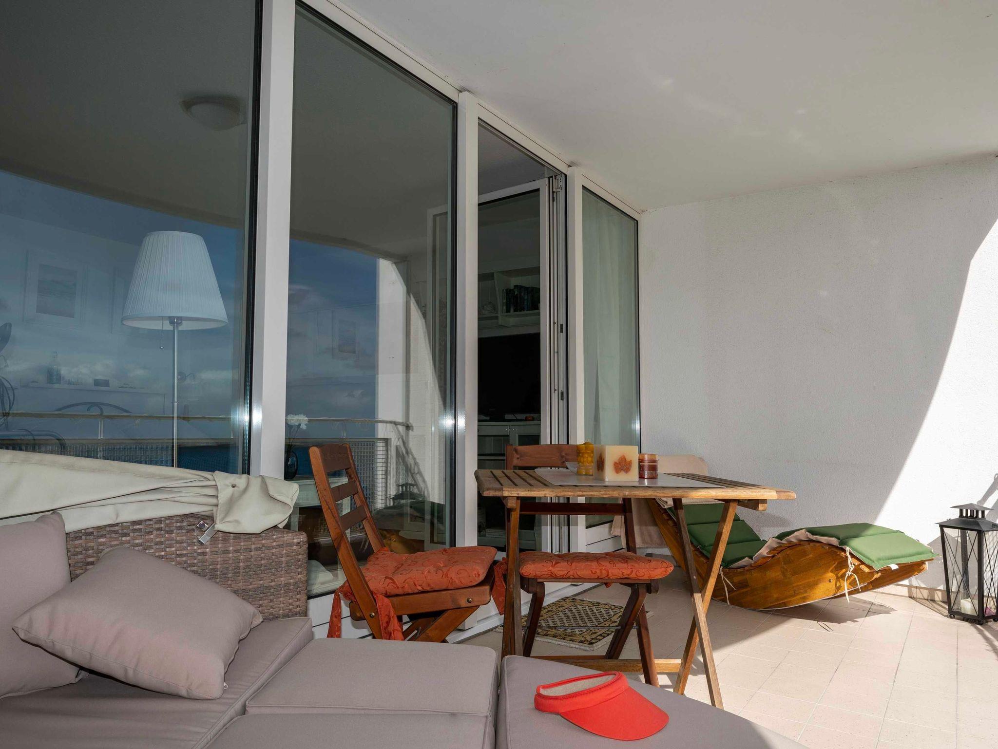 Genießen Sie den Meerblick beim Frühstück im Freien oder lassen Sie Ihre Seele baumeln und nutzen Sie die Balkonmöbel zum Entspannen.