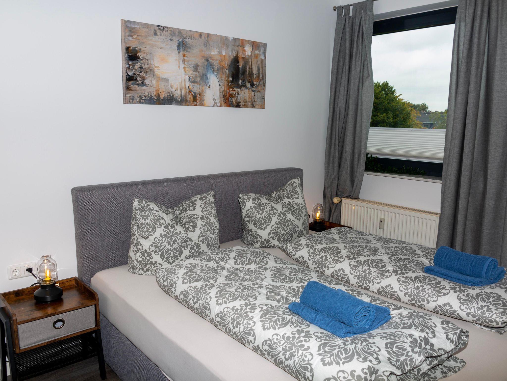 Zwei Schlafzimmer mit komfortablen Betten ( 1,80 x 2,00m) mit TV, ein Schlafzimmer mit französischem Bett, eine voll ausgestattete Küche mit Wasserkochter, Toaster, Mikrowelle, Kühl/ Gefrier-Kombi, Ceranfeld-Herd, Backofen, Geschirrspüler sowie zwei Badezimmer mit Dusche, sowie ein großes Wohnzimmer mit Essplatz und viel Blick ins Grüne warten auf Sie!