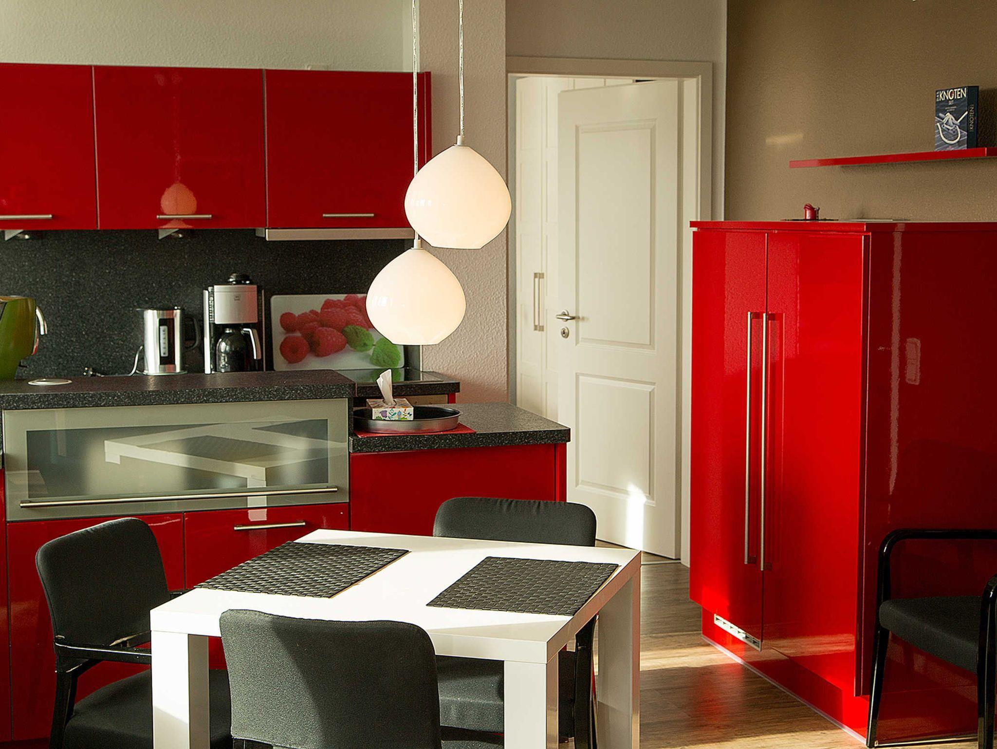 Die gut ausgestattete Küche lässt keine Wünsche offen. Vier Kochfelder, ein Backofen, ein Geschirrspüler, eine Kaffeemaschine und eine Cafissimo-Maschine, Wasserkocher, Toaster und ein Kühlschrank mit Gefrierfach bieten die Möglichkeiten kulinarisch zu zaubern.
