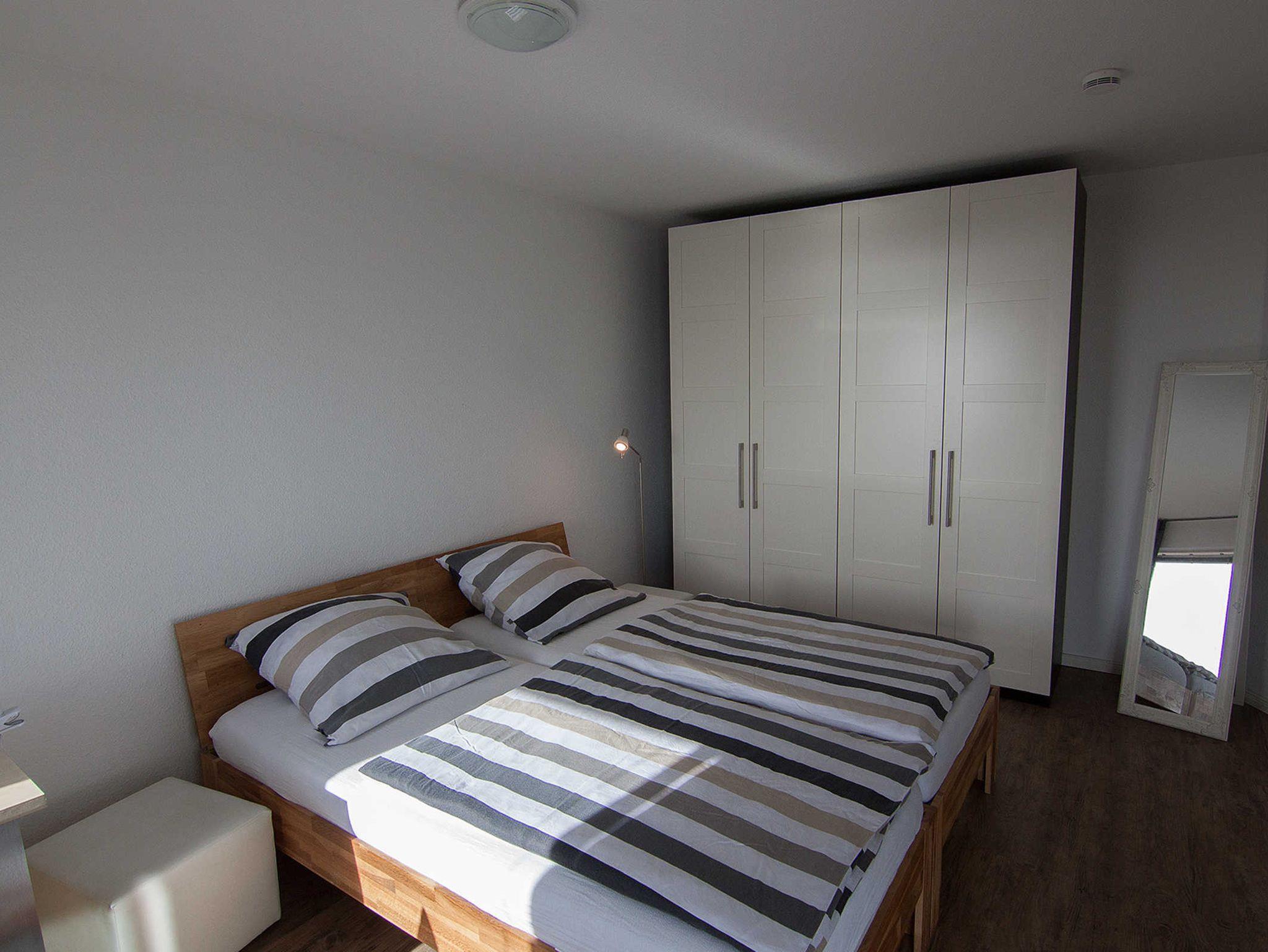 Im Schlafzimmer ein Doppelbett mit 1,8m x 2,0m