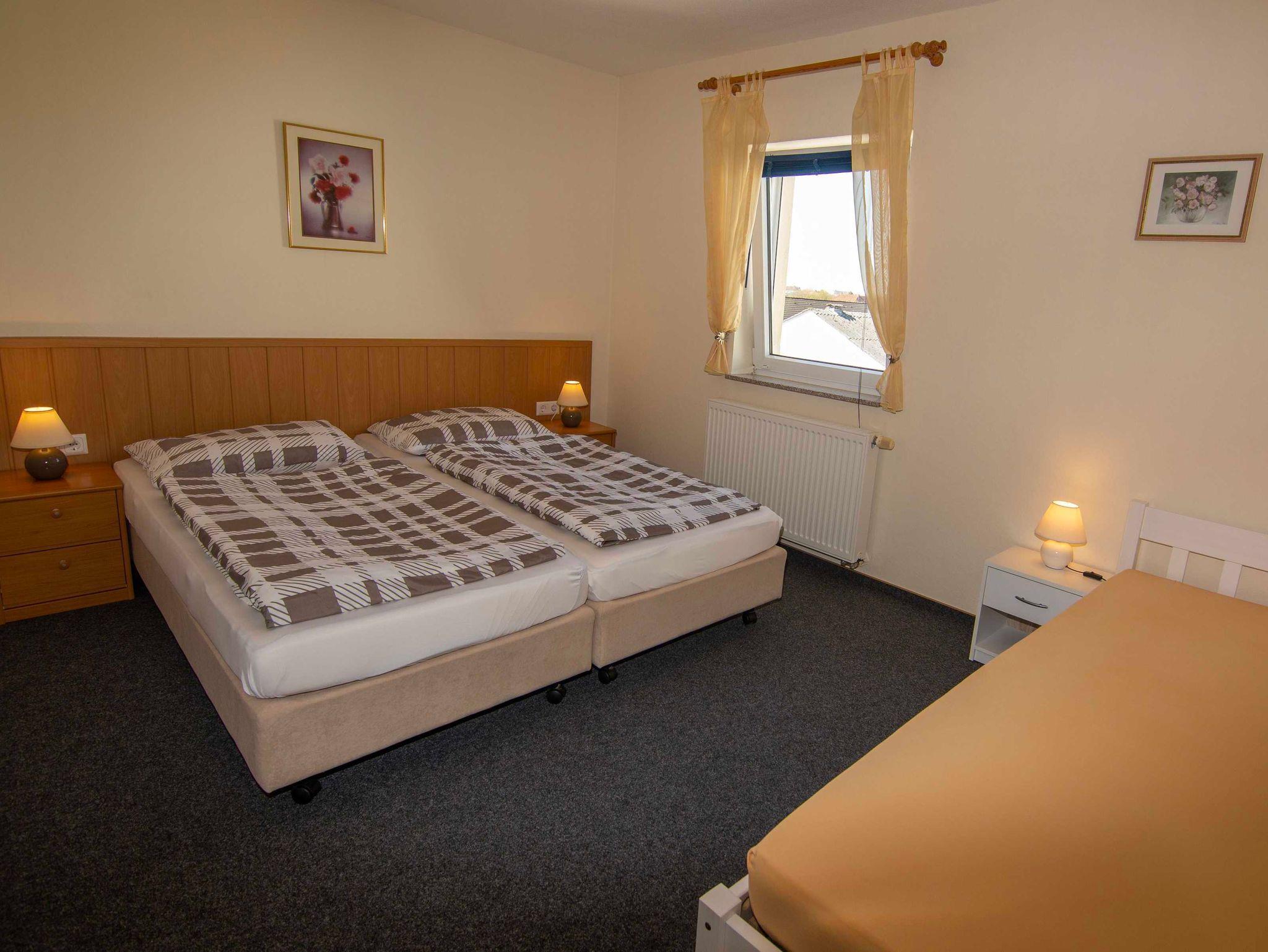 Die Wohnung verfügt über ein Schlafzimmer mit Doppelbett (2 getrennte Betten) und einem Einzelbett.