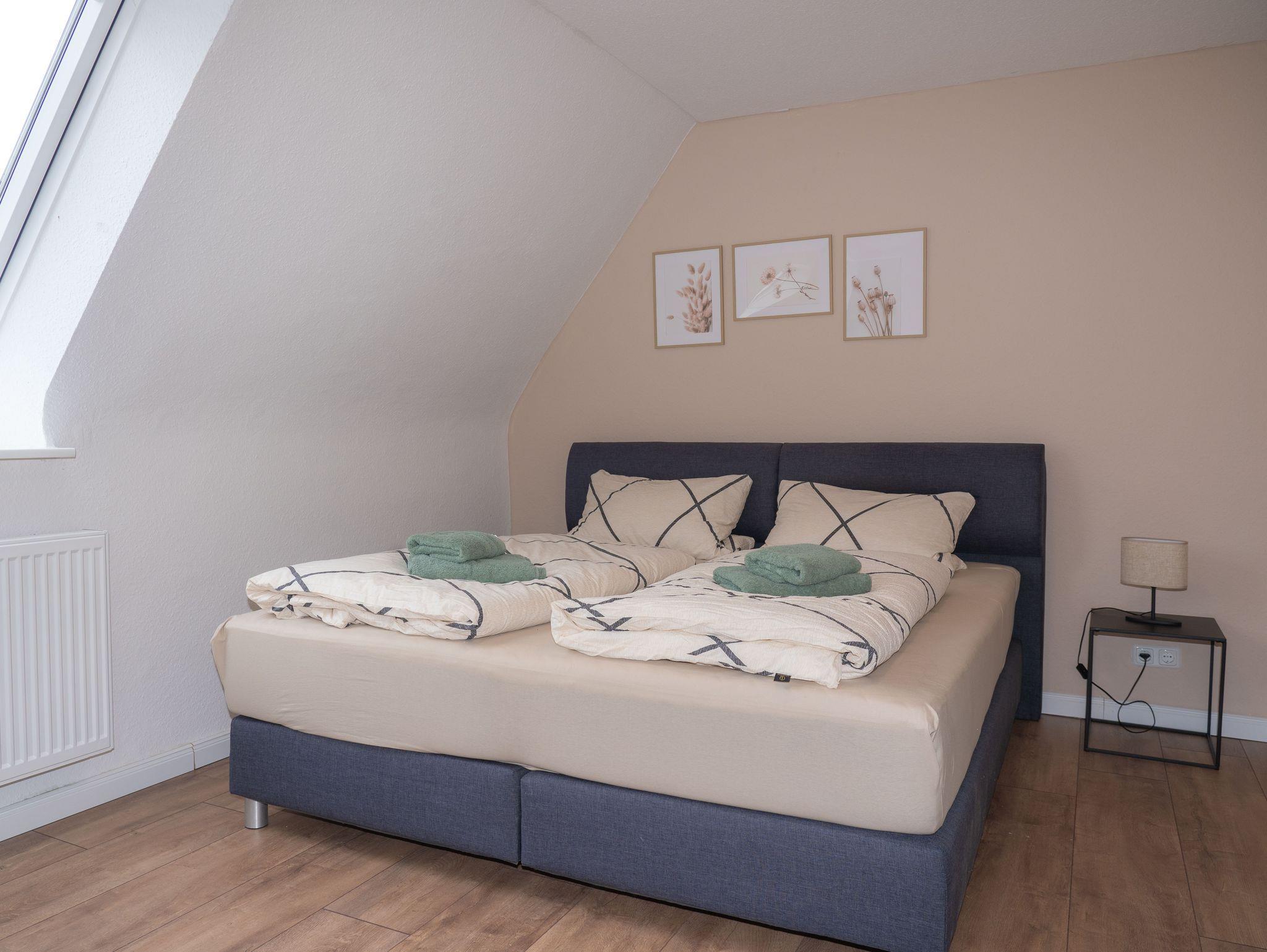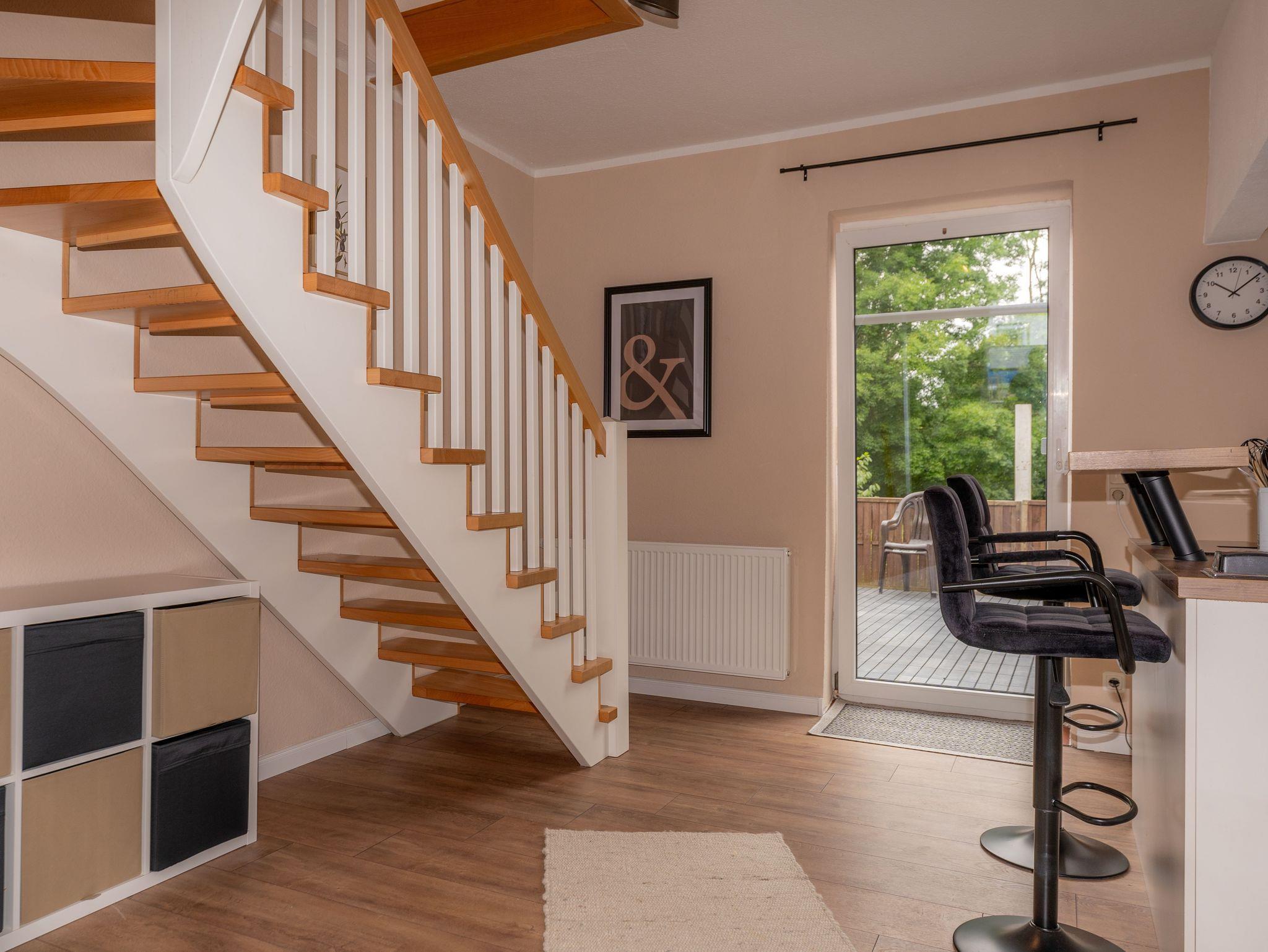 Eine Siedlungshaushälfte für die ganze Familie mit viel Platz zum Entfalten! Zu der Unterkunft, die 2022 komplett saniert wurde, gehört ein gemütliches Wohnzimmer mit Essplatz für 4 Personen, eine offene Küche mit Tresen und zwei Sitzplätzen und ein Eingangsflur mit angrenzendem Gäste WC. In der 1. Etage befindet sich ein Schlafzimmer mit Doppelbett 1.80 m x 2.00m und ein kleines Zimmer mit einem komfortablen Bettsofa mit einer Liegefläche von 1.40m x 2.00m. Ein Topper liegt auch hier bereit.