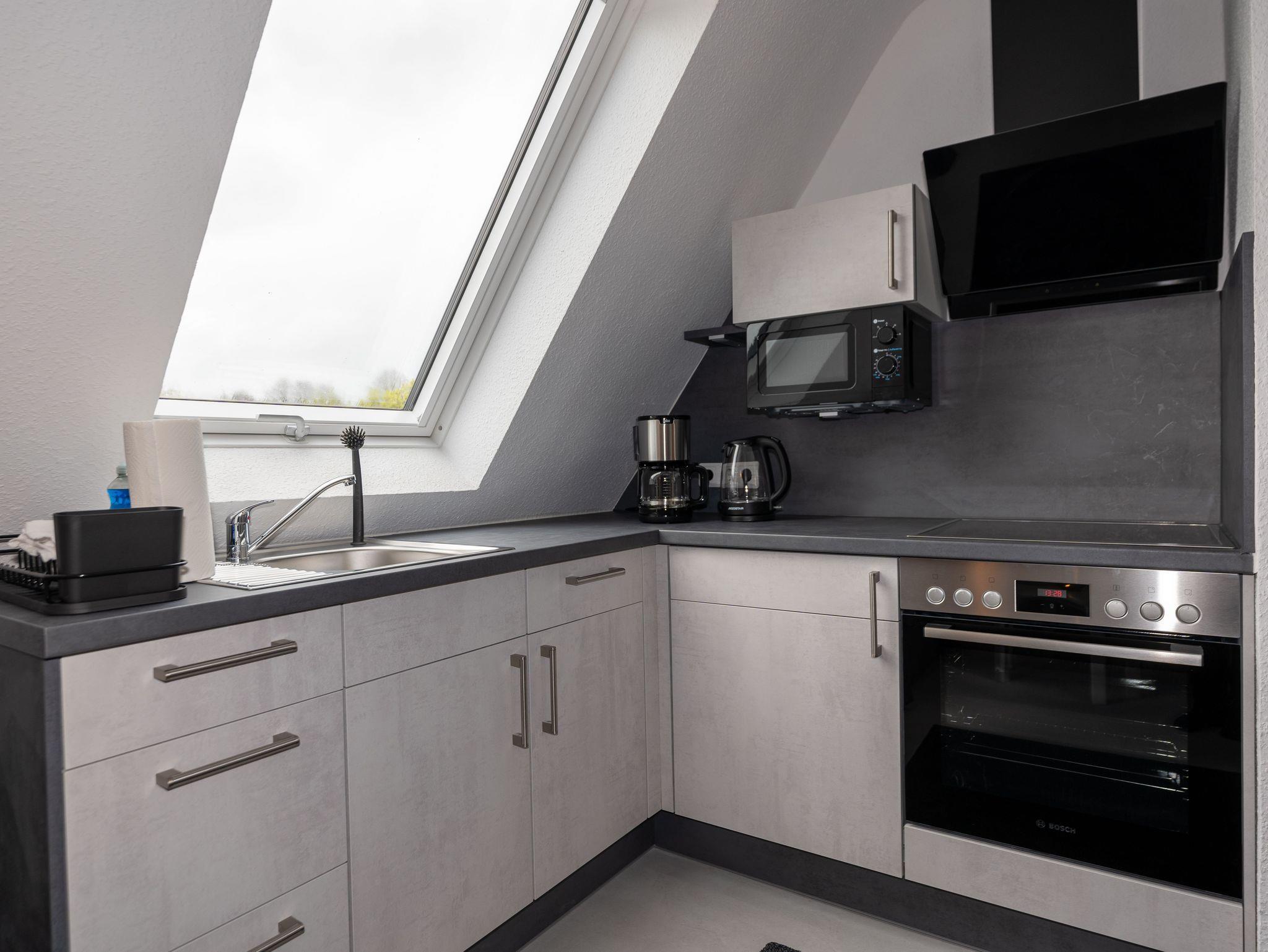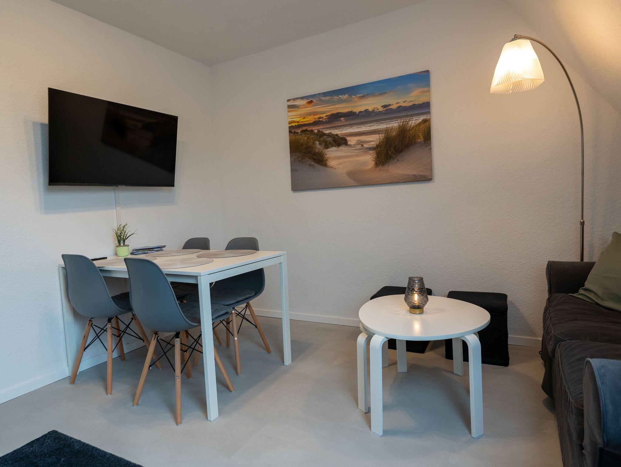 In der Ferienwohnung Nordlicht finden Sie alles, was Sie für einen schönen Aufenthalt benötigen. Zwei Schlafzimmer mit einem 1,80 x 2,0 m großen sowie einem 1,60 x 2,0 m großen Doppelbett, einer gemütlichen Wohnküche mit einer Sofaecke, einem Essplatz für 4 Personen und einer voll ausgestattete Küchezeile mit Ceranfeld, Backofen, Toaster, Mikrowelle, Kaffemaschine und Wasserkocher, Kühlschrank mit Gefrierfach sowie ein Tageslichtbadezimmer mit Dusche bieten Platz für bis zu 4 Personen. Die Wohnküche sowie die Schlafzimmer sind mit Kabel-TV ausgestattet. Alle Zimmer verfügen über Echo-Dots (smarte Lautsprecher). Beide Schlafzimmer sind mit Schränken ausgestattet.