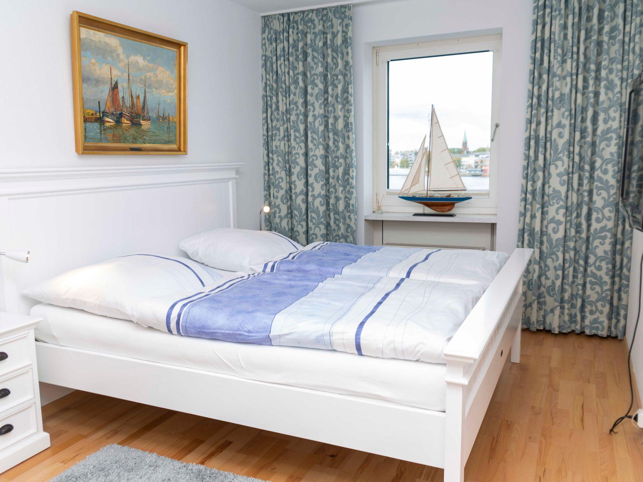 Das schön ausgestattete Schlafzimmer mit Blick auf den Innenhafen, das zweite Schlafzimmer mit eine funktionellen und gemütlichen Schlafcouch, sowie das Bad mit Dusche und einer Waschmaschine lassen den Aufenthalt zum Urlaubserlebnis werden.