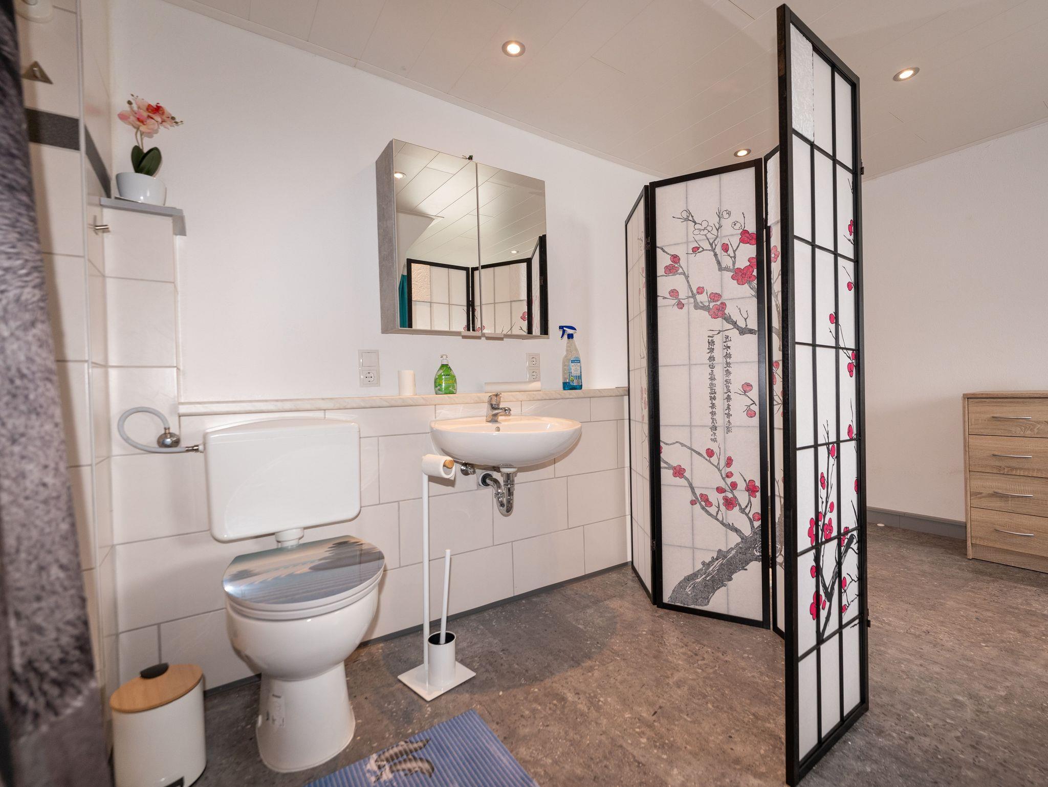 Das großzügige Tagelichtbad mit Dusche, WC und Waschbecken lässt keine Wünsche im Nassparadies offen.