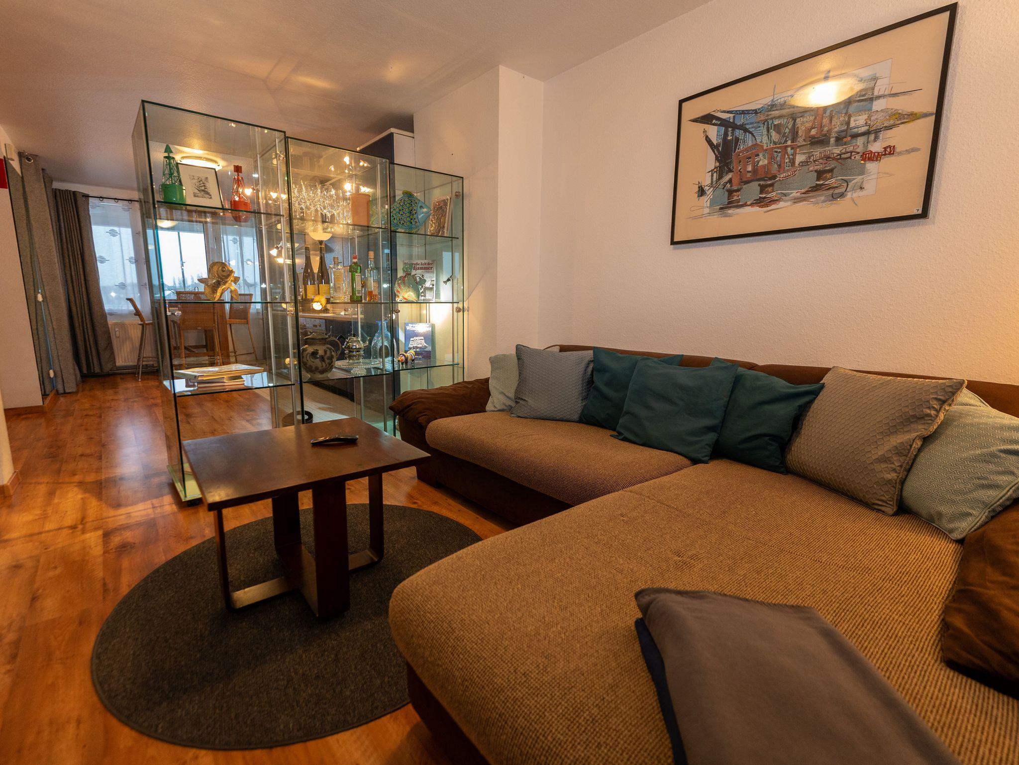 Entspannen Sie sich in dieser modern eingerichteten Ferienwohnung, welche sich über die 1. und 2. Etage des Helgolandhauses erstreckt. Vom Essplatz aus schauen Sie auf den großen Hafen. Dieser Hafenblick begleitet Sie ebenfalls in der offenen Küche und in den Schlafzimmern. Wohnen am Deich mit maritimen Ambiente.