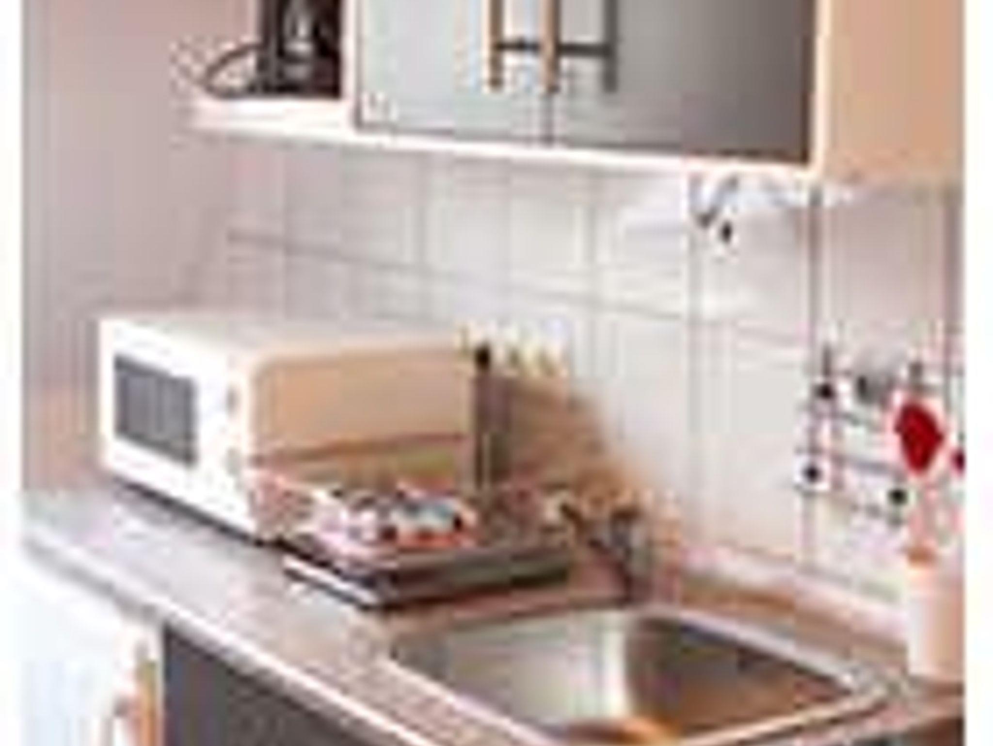 Die Küche ist voll ausgestattet mit Ceranfeld, Backofen, Mikrowelle, Kühlschrank mit Gefrierfach, Kaffeemaschine, Toaster, Wasserkocher.