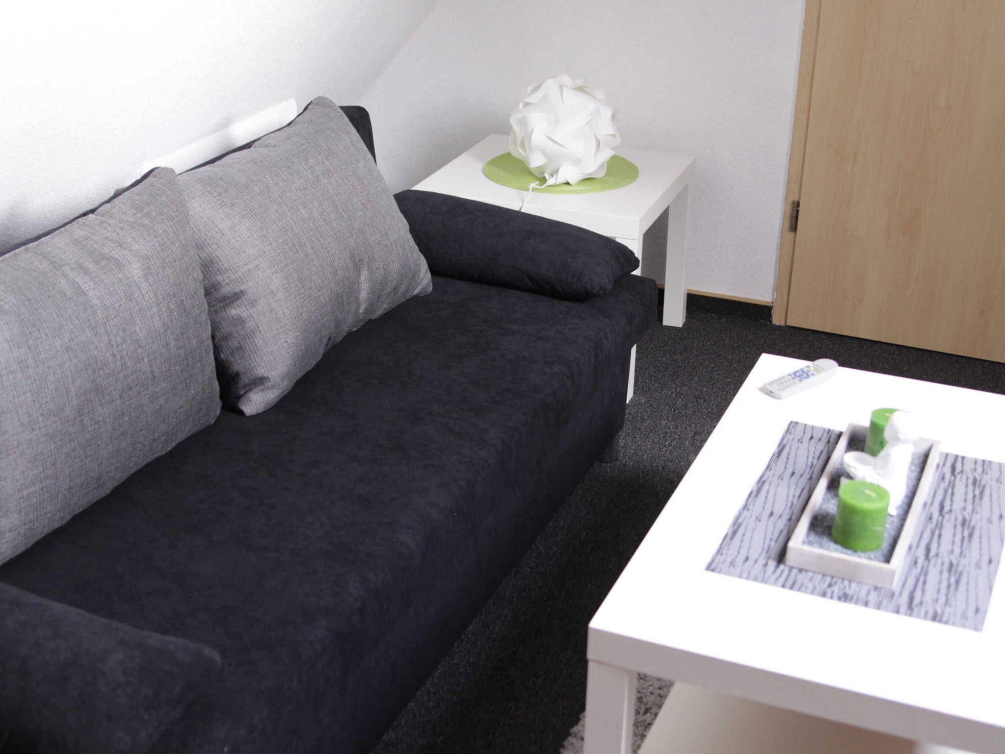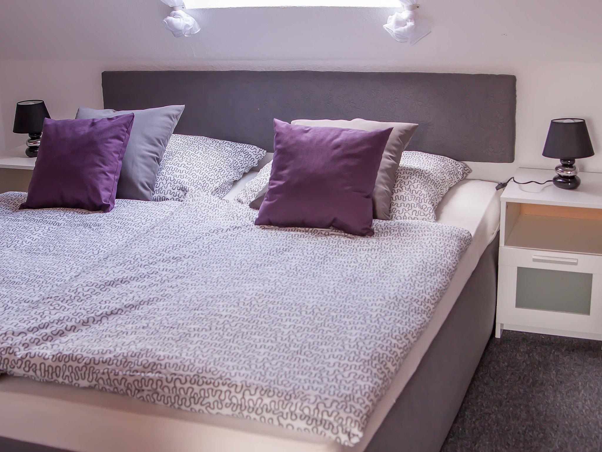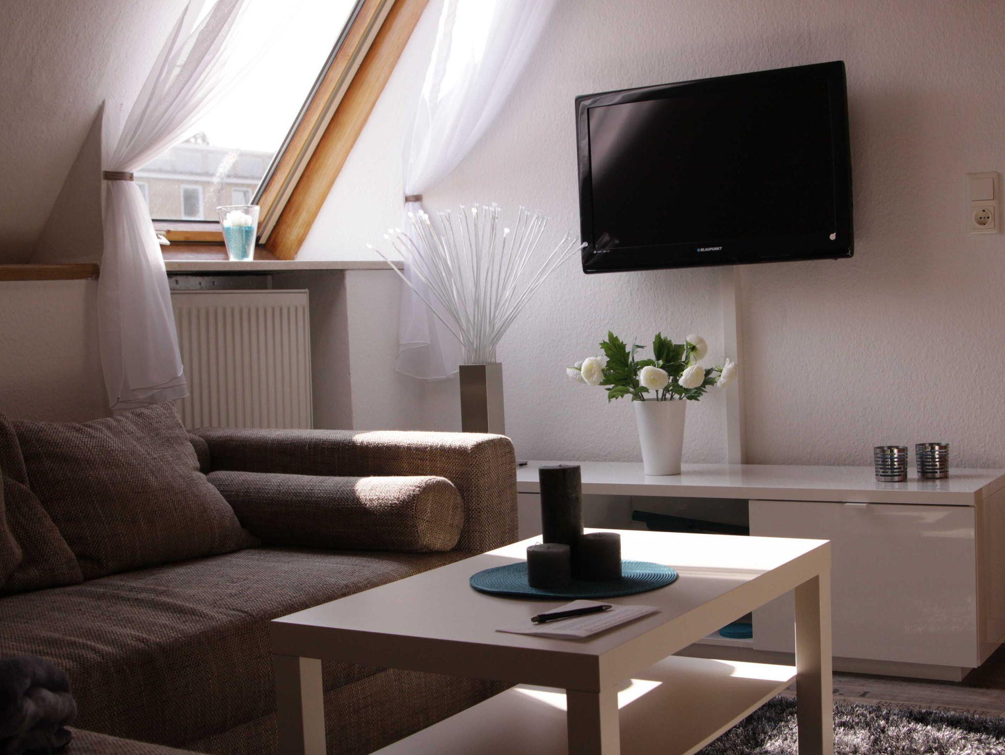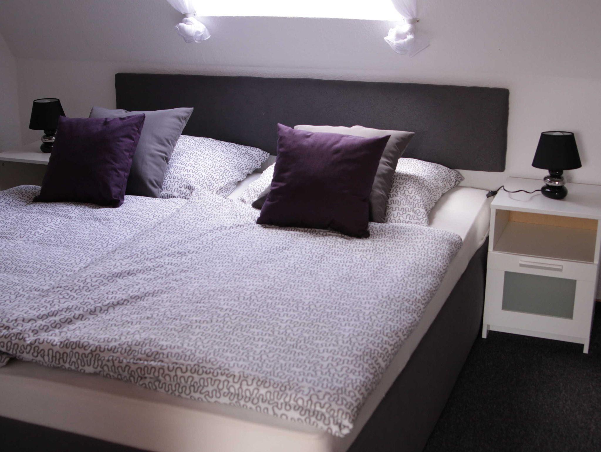 Eine moderne und gemütliche Ferienwohnung mit zwei Schlafzimmern mit Doppelbett sowie einem gemütlichen Wohnraum, Küche und Bad bietet den Gästen alles, was zum erholsamen Urlaub benötigt wird. Im Wohnraum ist eine gemütliche Sitzecke untergebracht, die bei Bedarf in ein Doppelbett umfunktioniert werden kann. WLAN und Kabel TV ist verfügbar. Im Spitzboden befindet sich ein großer begehbarer Kleiderscrank sowie ein weiteres Schlafsofa mit Tisch. Somit hat die Wohnung einen weiteren kleinen Rückzugsort erhalten.