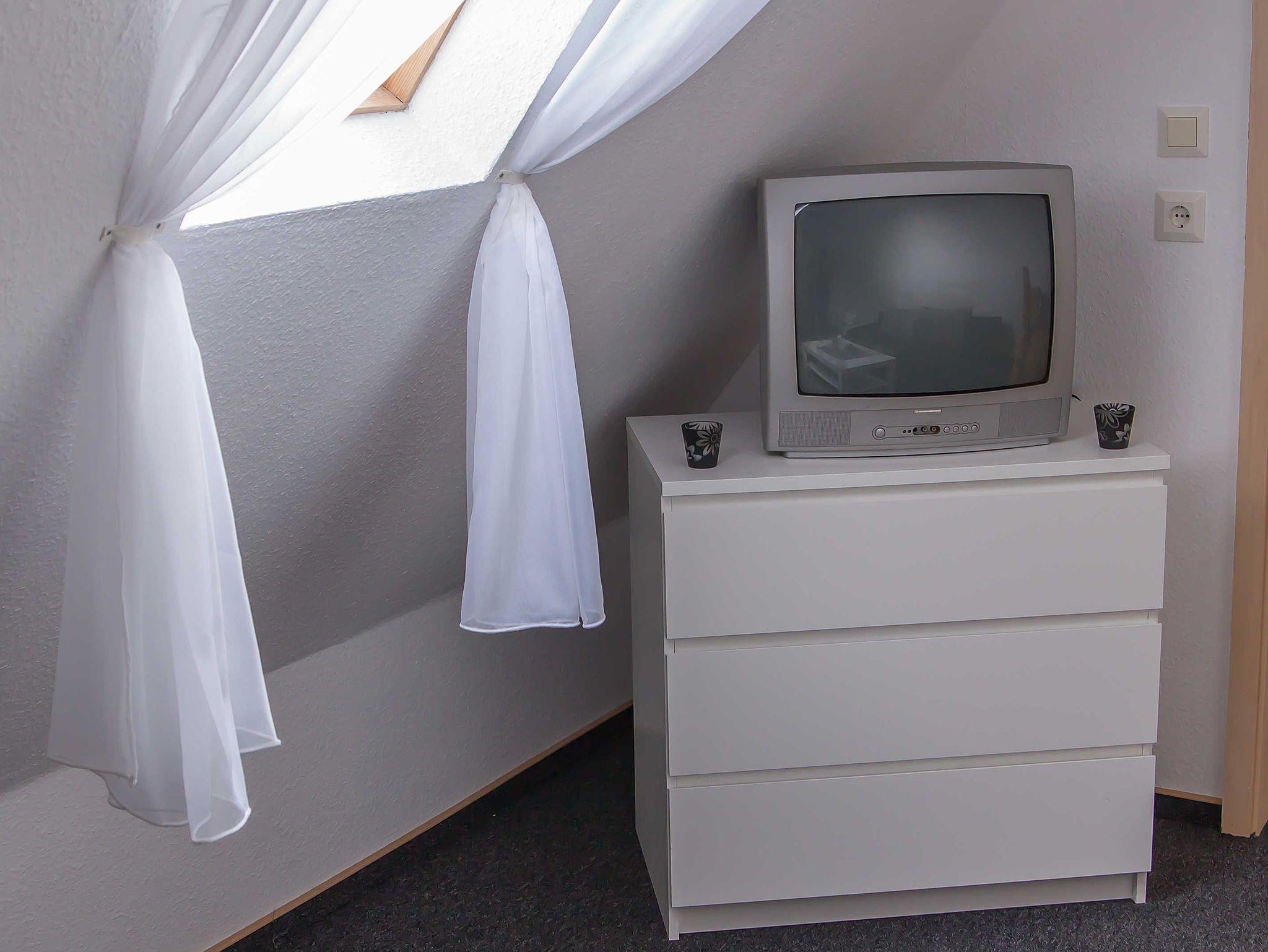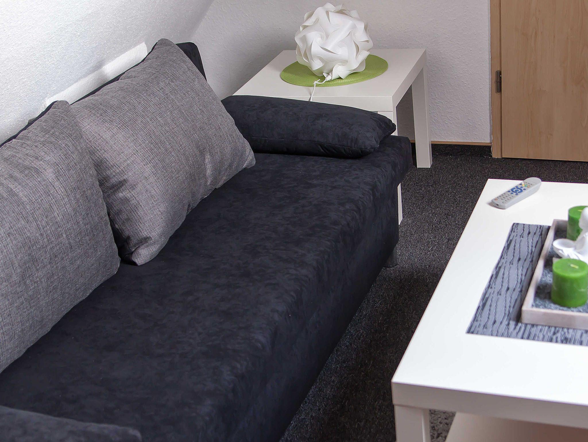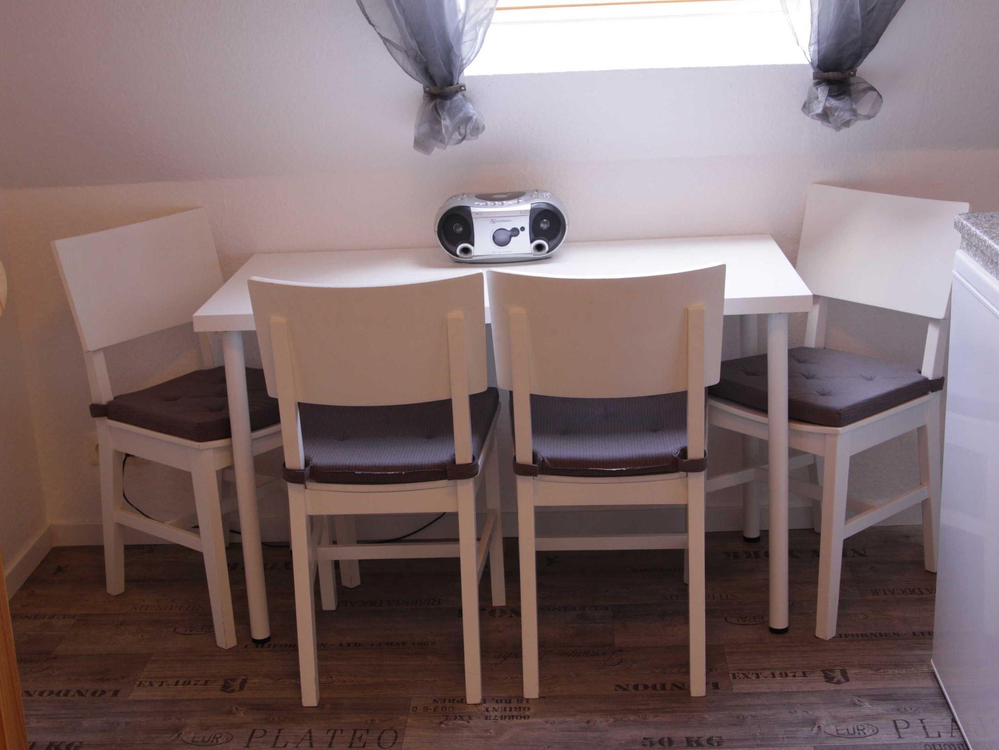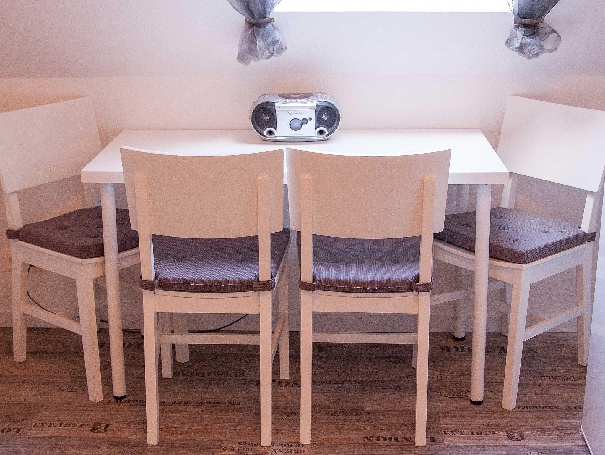 Eine moderne und gemütliche Ferienwohnung mit zwei Schlafzimmern mit Doppelbett sowie einem gemütlichen Wohnraum, Küche und Bad bietet den Gästen alles, was zum erholsamen Urlaub benötigt wird. Im Wohnraum ist eine gemütliche Sitzecke untergebracht, die bei Bedarf in ein Doppelbett umfunktioniert werden kann. WLAN und Kabel TV ist verfügbar. Im Spitzboden befindet sich ein großer begehbarer Kleiderscrank sowie ein weiteres Schlafsofa mit Tisch. Somit hat die Wohnung einen weiteren kleinen Rückzugsort erhalten.