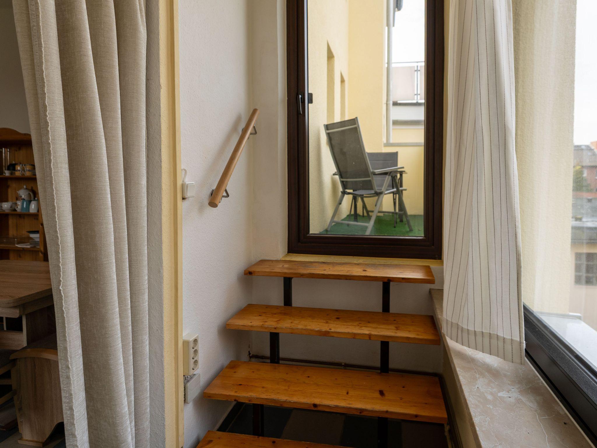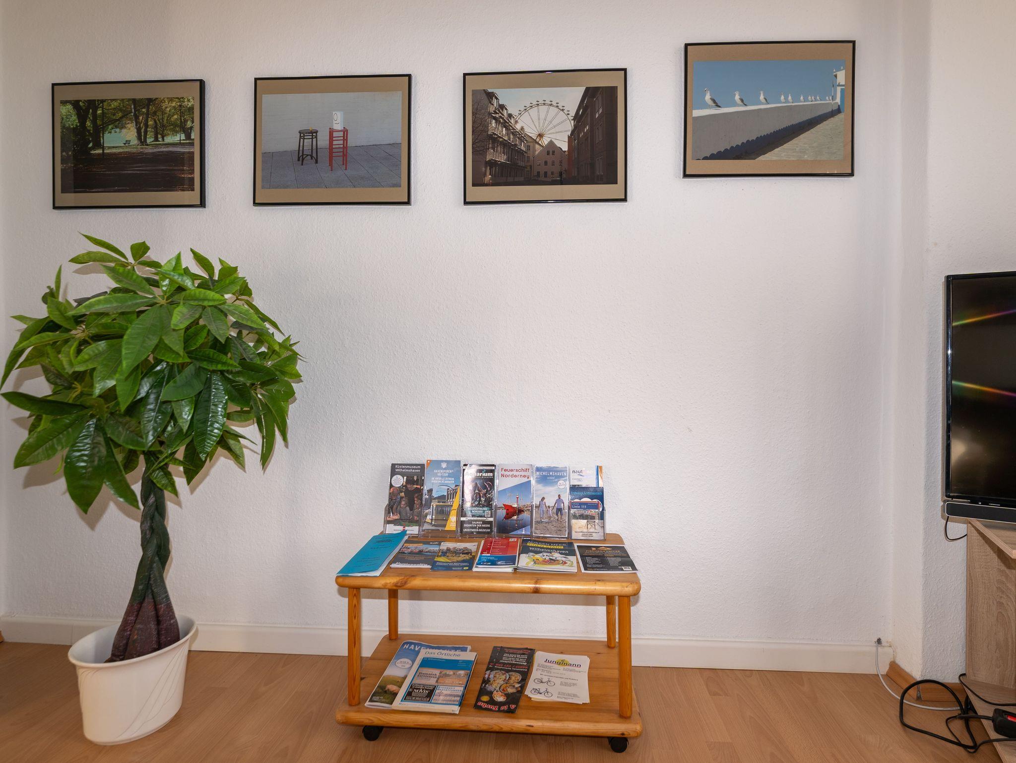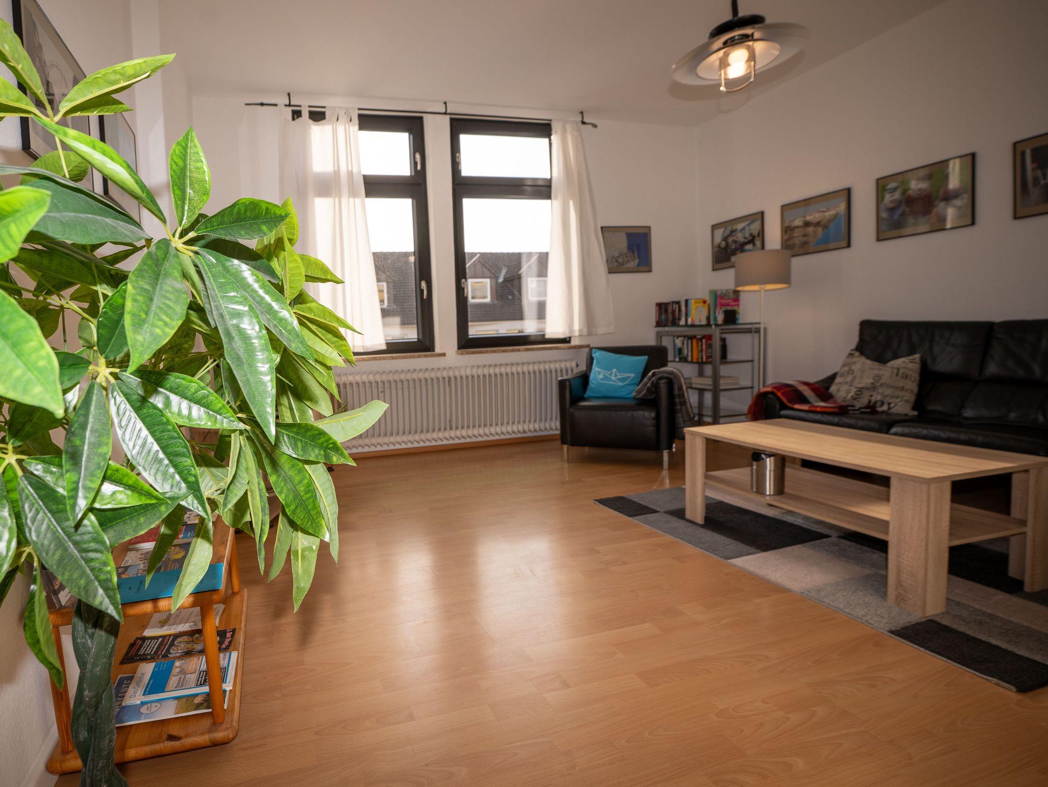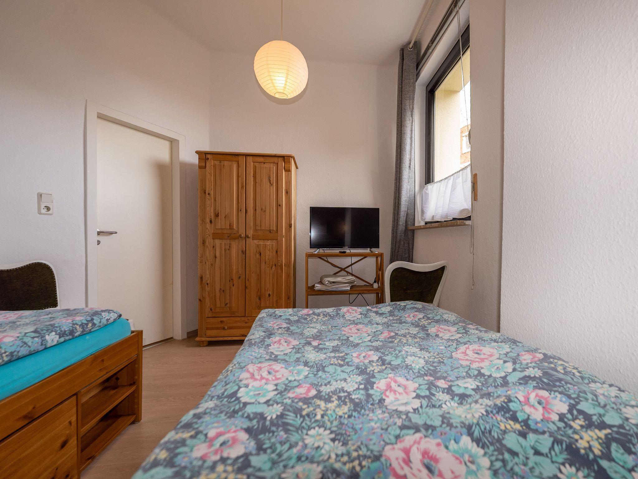 Diese lichtdurchflutete Altbauwohnung bietet 4 Personen in 2 getrennten Schlafräumen, einer vollständig ausgestatteten Küche, einem Tageslichtbad mit Dusche (Fön ist vorhanden), einem großen Wohnraum mit modernster TV-Technik, CD- und DVD-Spieler sowie einem überdachten kleinen Balkon ausreichend Platz an. Beide Schlafzimmer verfügen über einen Fernseher. WLAN ist eine Selbstverständlichkeit für diese Wohnung. Auch ist eine Waschmaschine vorhanden, die bei längeren Aufenthalten von vielen Gästen geschätzt wird. Ein Kinderbett kann bei Bedarf über die Hausverwalterin bereitgestellt werden.