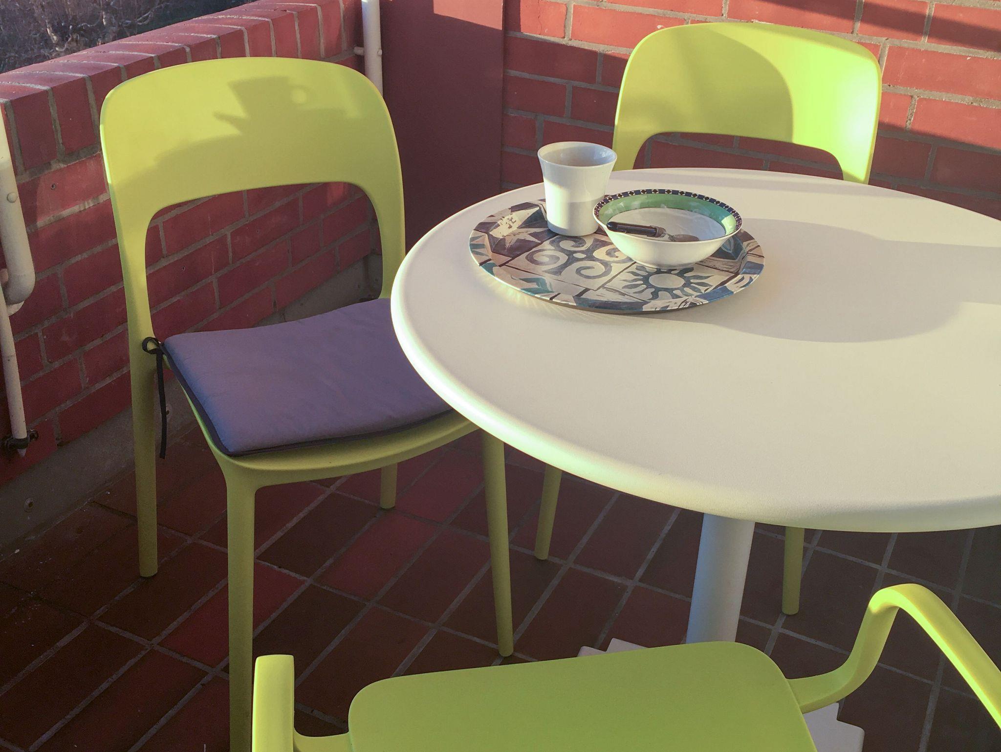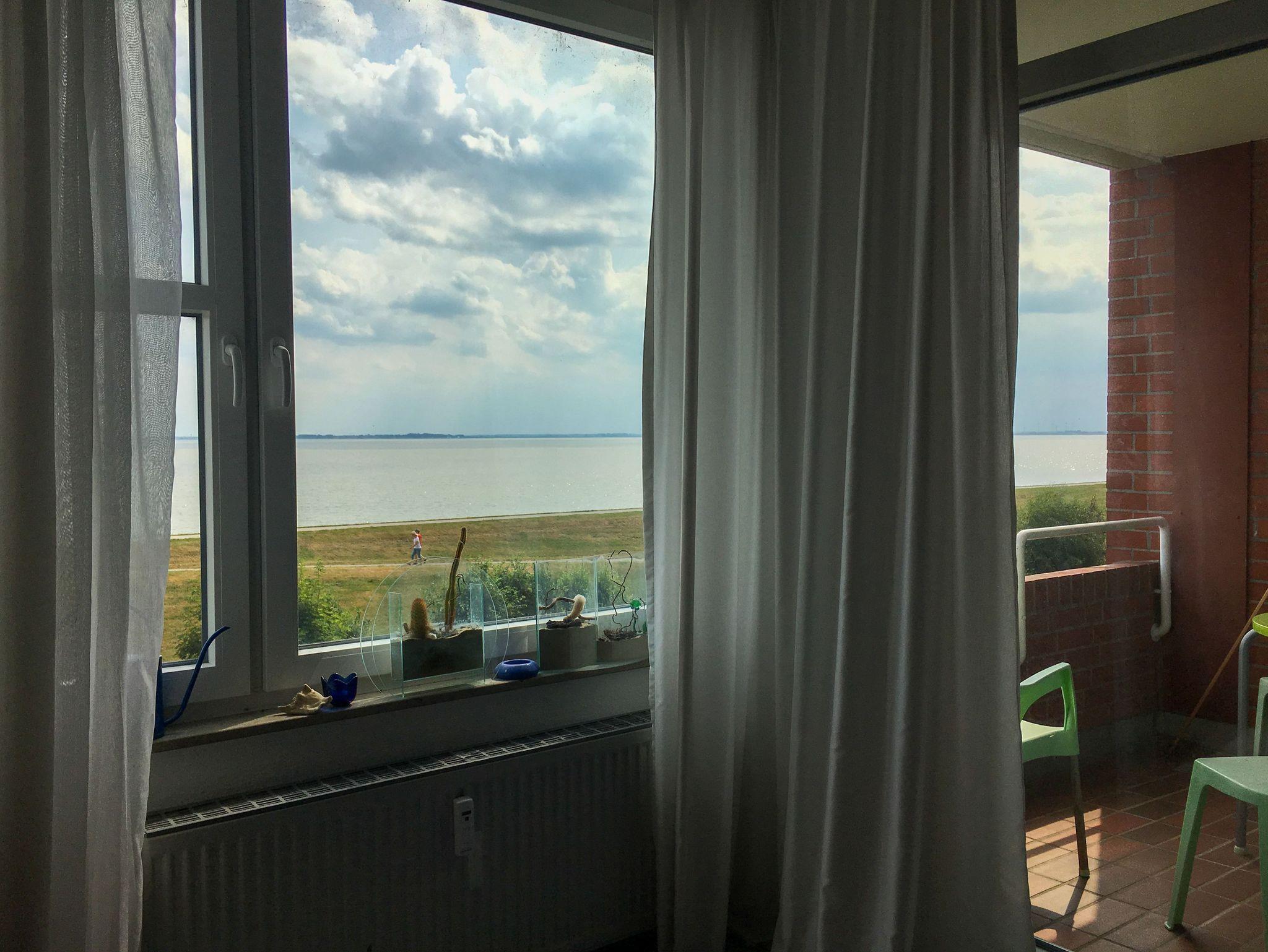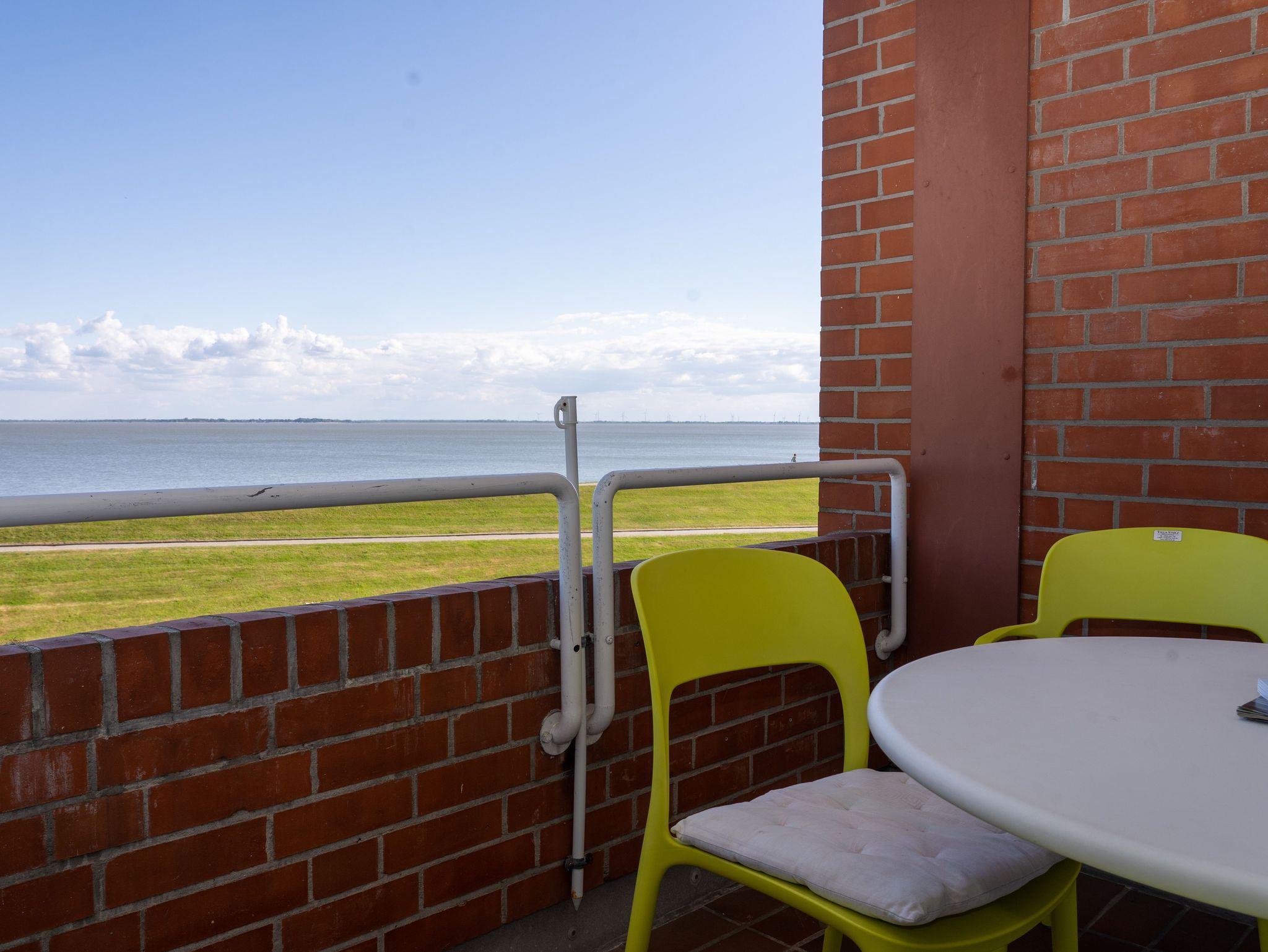 Der überdachte Balkon ist mit Tisch und Stühlen ausgestattet und ca 4 qm groß. Von hier aus kann man das Wechsel der Gezeiten mit seinem Lichterspiel perfekt erleben.
