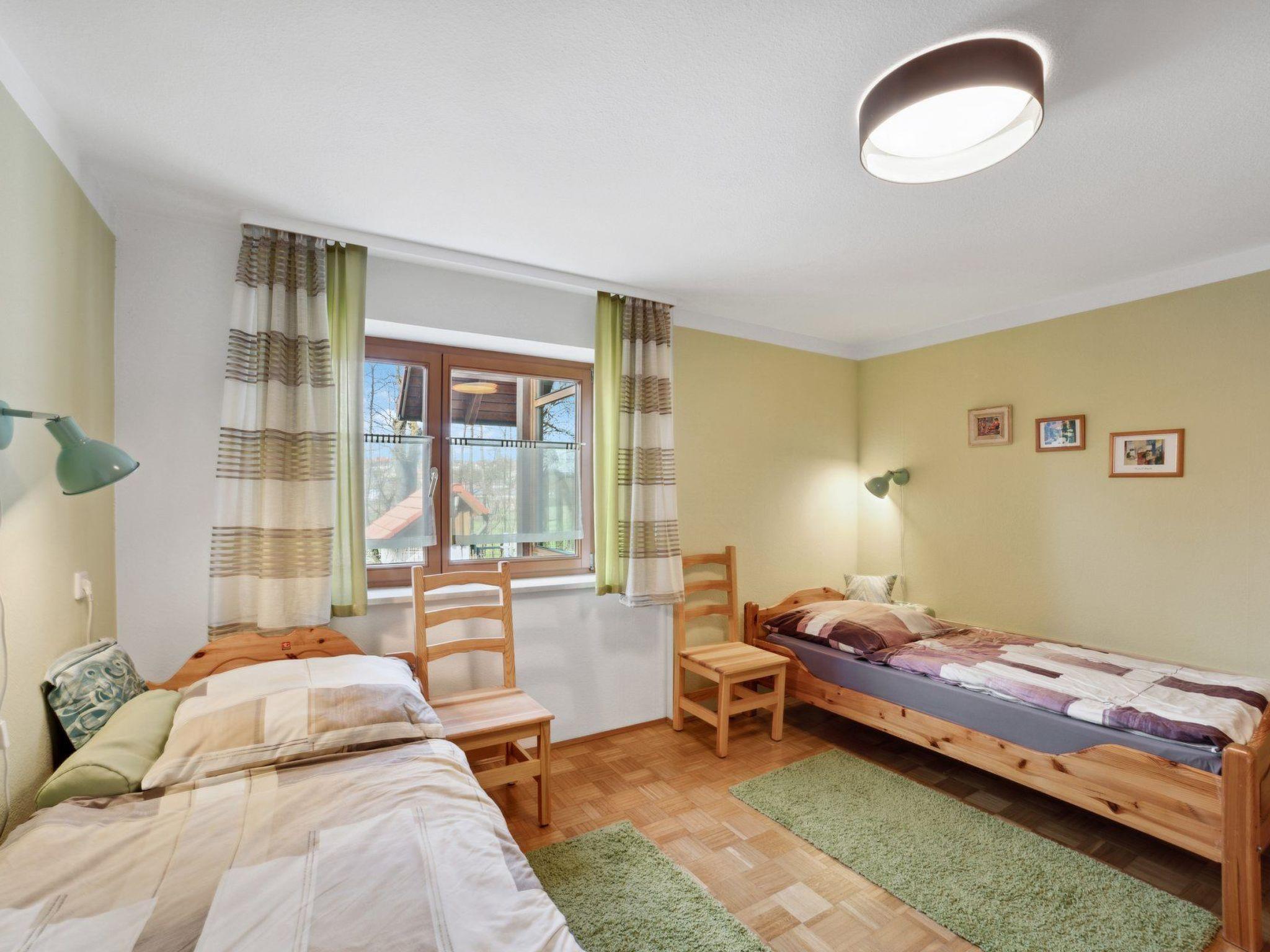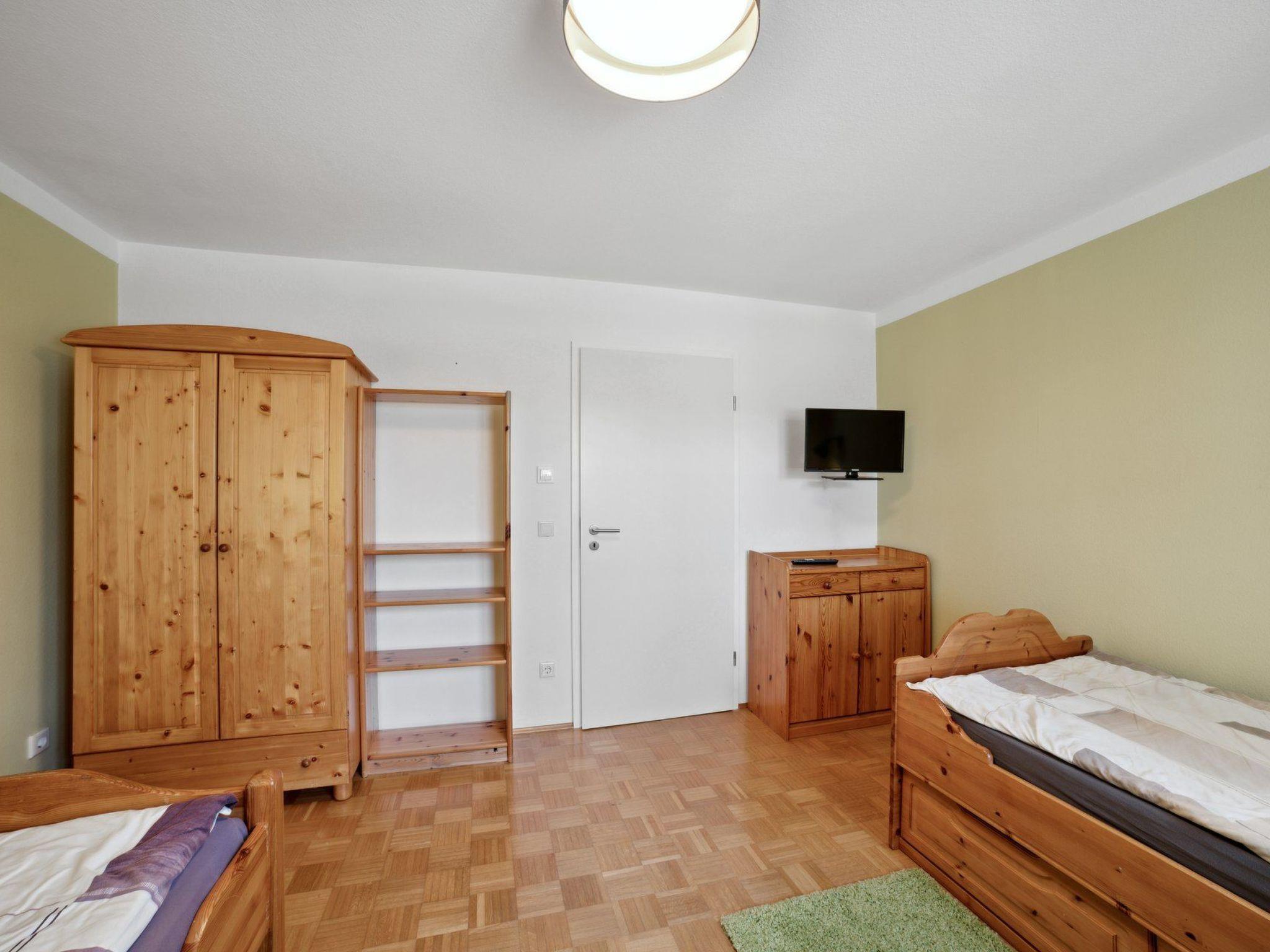 Two sturdy single beds (0.90 × 2.00 m and 1.00 × 2.00 m), wardrobe, children's toys, TV with remote control.
