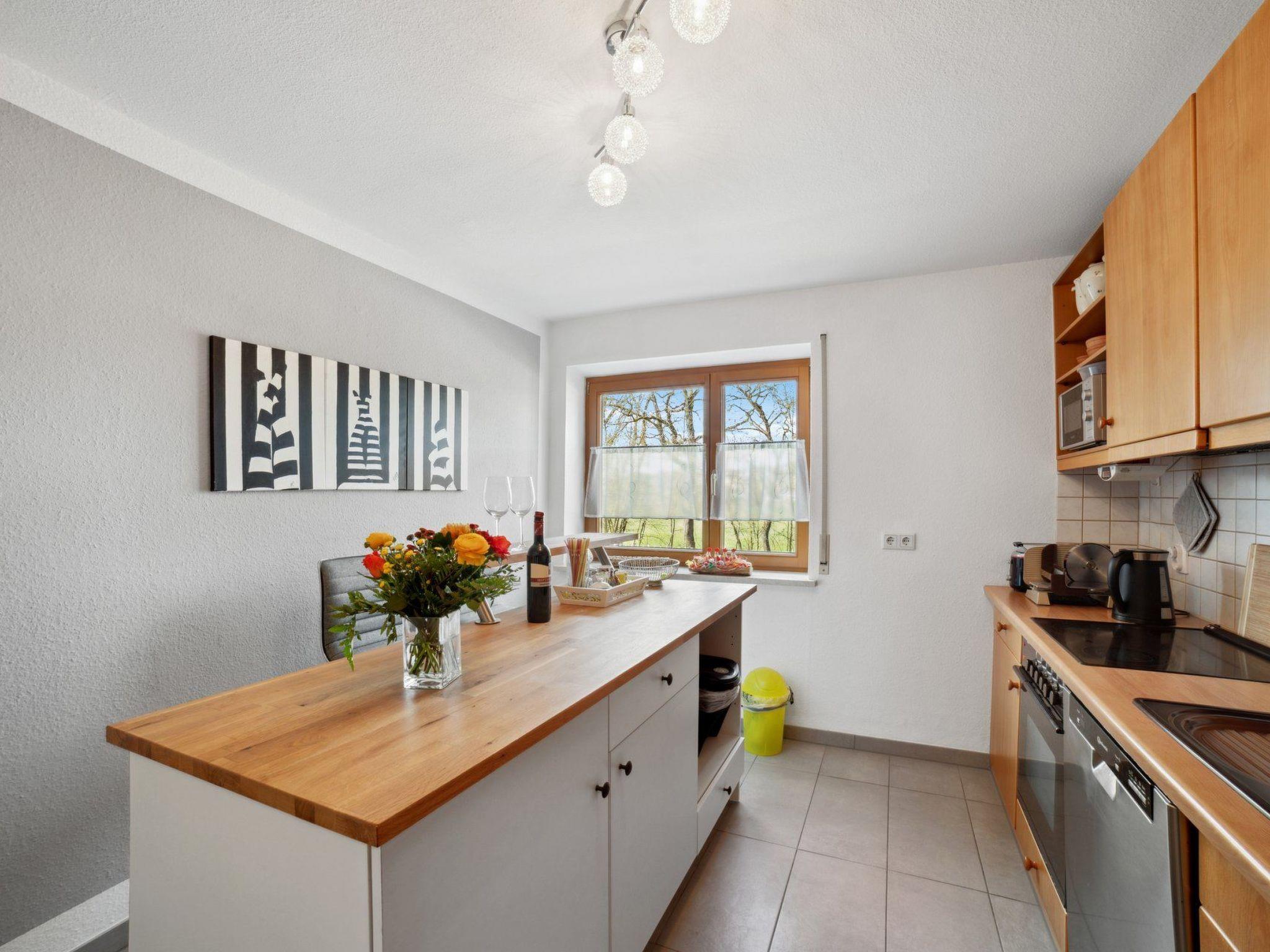 In the modern, fully equipped kitchen with breakfast bar, cooking together is a pleasure. Ceramic hob, oven, dishwasher, coffee machine, egg cooker, food processor and equipment for 6 people.