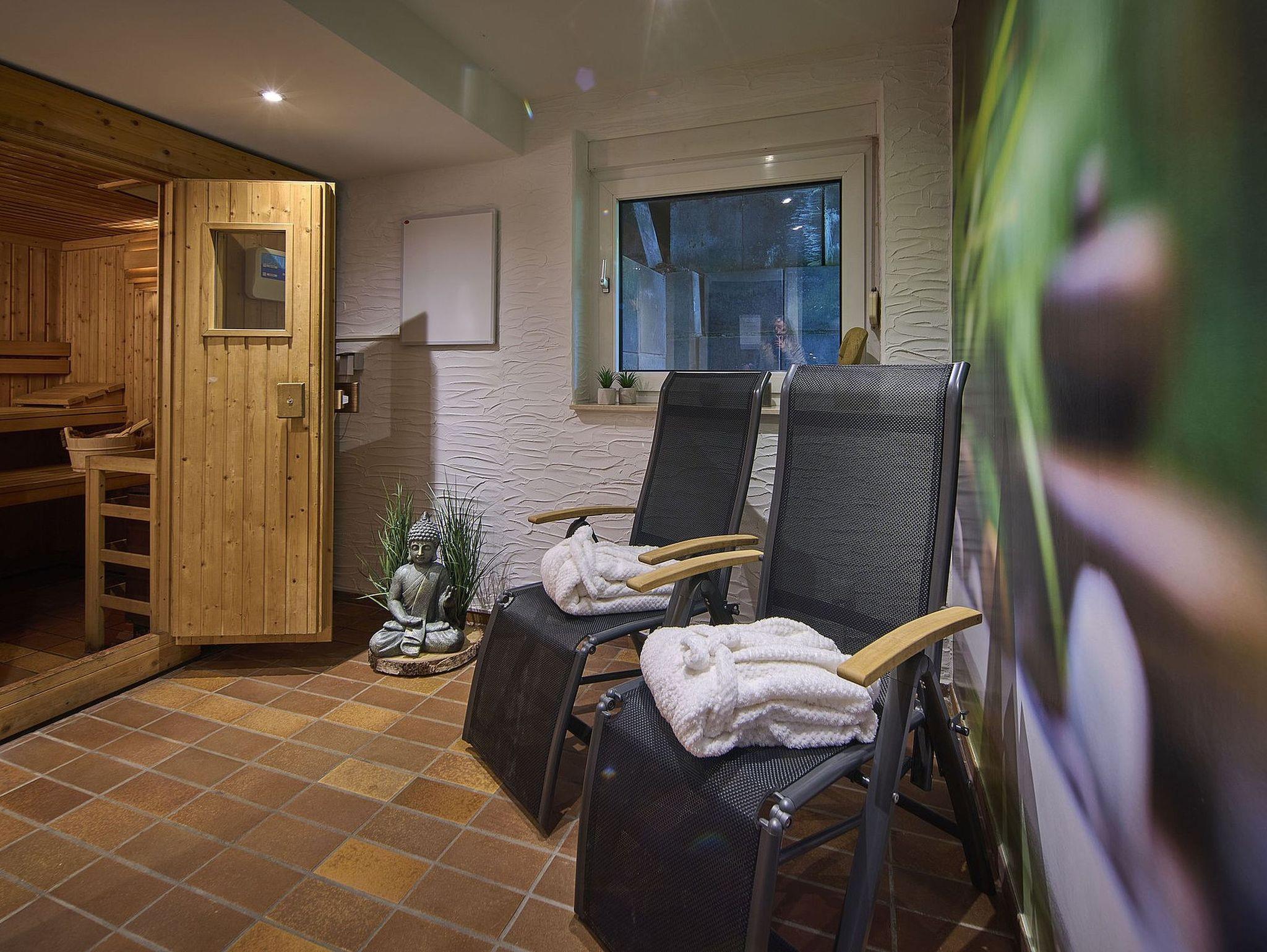 Die Sauna befindet sich im Untergeschoss des Hauses (Kosten werden per Automat abgerechnet).