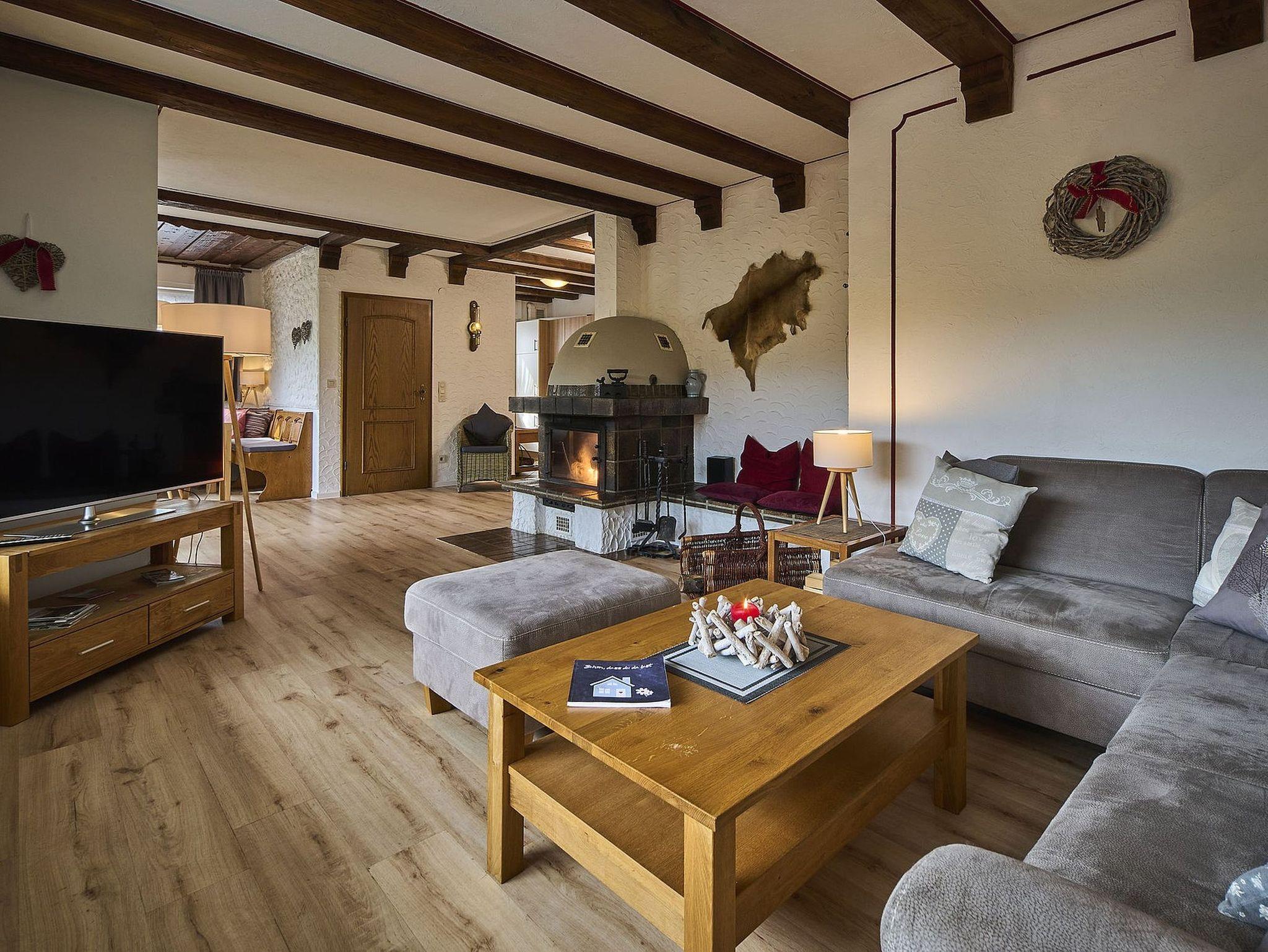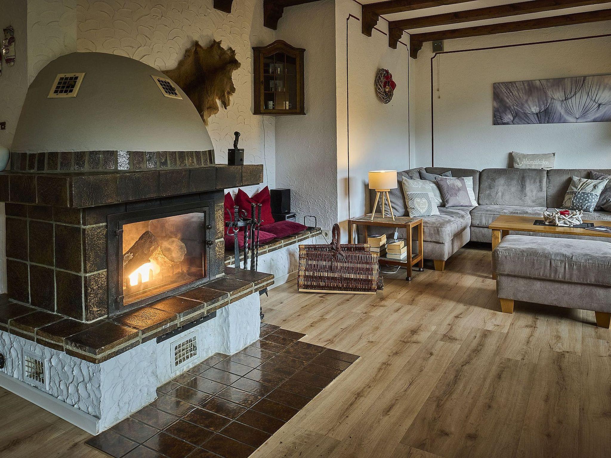 Das Wohnzimmer mit Kamin verfügt über eine Doppelbettcouch, Smart-TV, Stereoanlage mit CD-Player und einer gemütlichen Essecke mit Blick in die Landschaft. Der komplett eingerichtete Küchenbereich ist ausgestattet mit Spülmaschine, Herd mit Cerankochfeld und Backofen, Kühlschrank mit Gefrierfach, Kaffeemaschine, Toaster, Mikrowelle, Wasserkocher, Brotschneidemaschine, etc. und ausreichend Geschirr für 7 Personen.