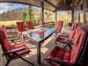 Das Wohnzimmer mit offenem Kamin verfügt über einen Smart-TV, Stereoanlage mit CD-Player und einer gemütlichen Essecke mit Blick in die Landschaft. Der komplett eingerichtete Küchenbereich ist ausgestattet mit Spülmaschine, Herd mit Backofen, Kühlschrank mit Gefrierfach, Kaffeemaschine, Toaster, Mikrowelle, Wasserkocher etc. und ausreichend Geschirr für 5 Personen.