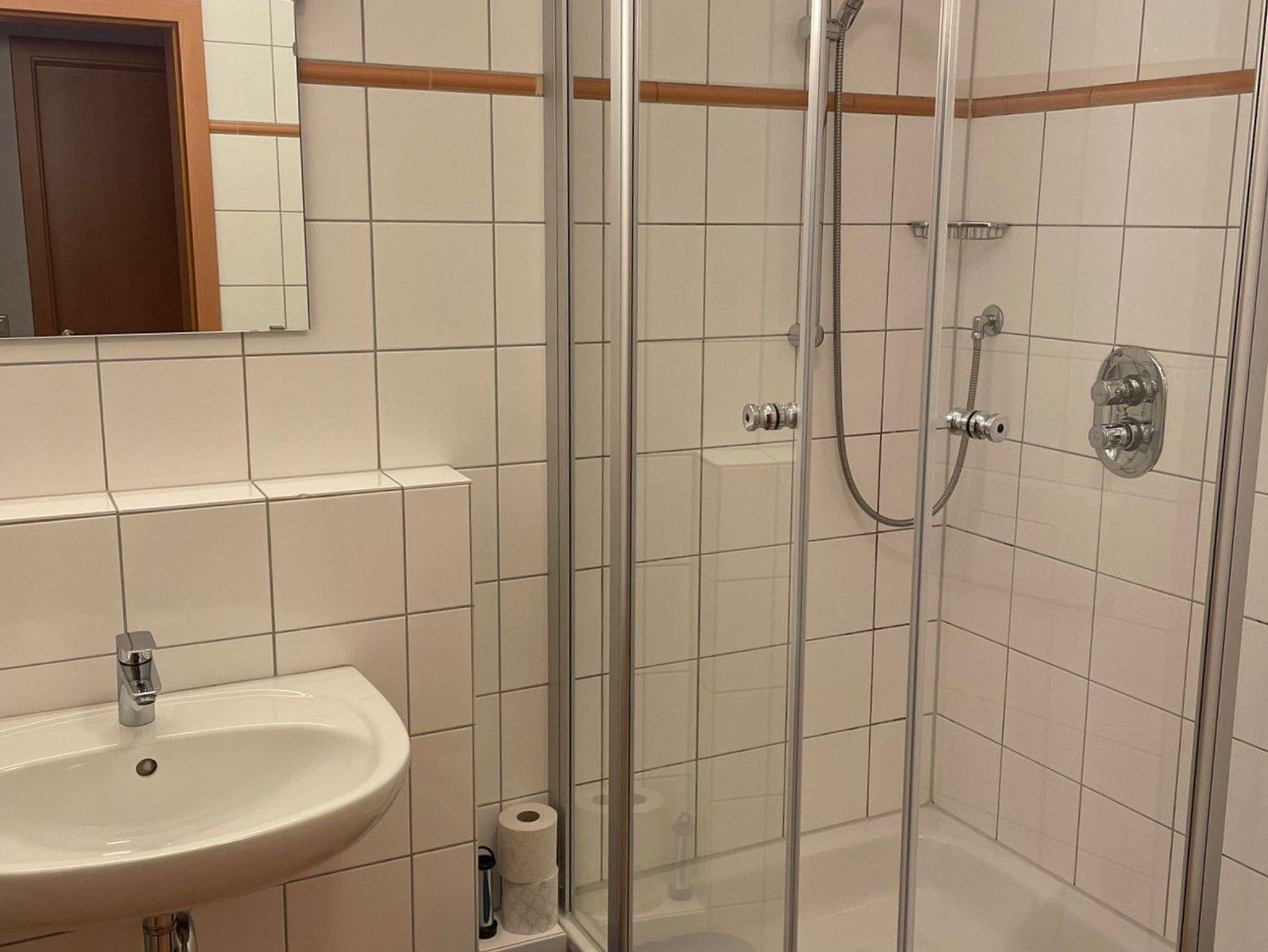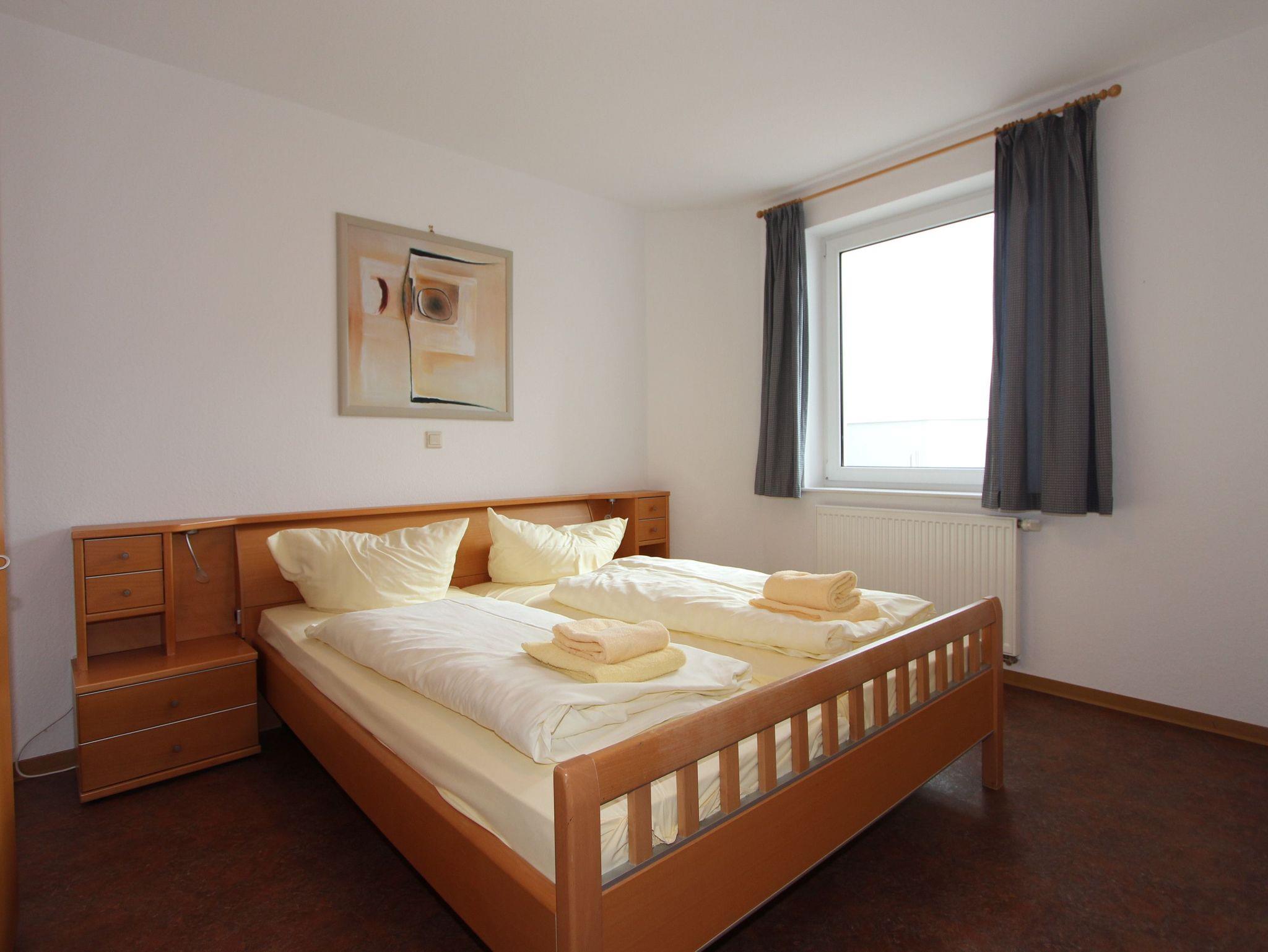 3-Zimmer-Appartement für bis zu 5 Personen, ein Schlafzimmer mit Doppelbett, ein Schlafzimmer mit einem Einzelbett, Wohnraum mit bequemerSchlafcouch für bis zu 2 Personen, separater Essplatz, voll ausgestatteter Küchenbereich (mit Geschirrspüler), Dusche/WC und Föhn, SAT-TV mit sky.