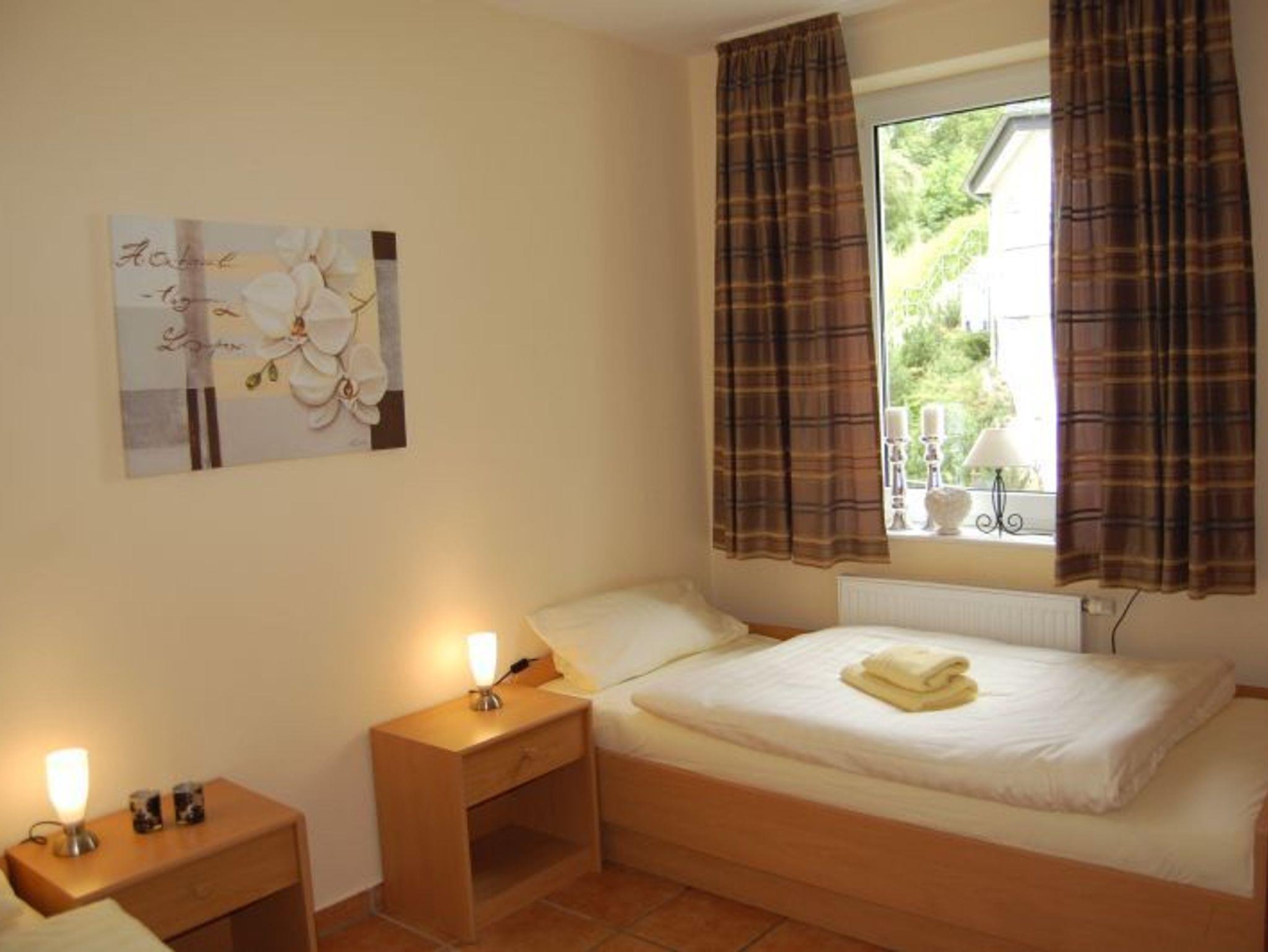 Sie wohnen in einem 3-Zimmer-Appartement für bis zu 6 Personen, ca. 59 m², ein Schlafzimmer mit Doppelbett, ein Schlafzimmer mit getrennten Betten, Wohn-/Schlafraum mit bequemer Doppelbettcouch, separater Essplatz, voll ausgestatteter Küchenbereich mit Geschirrspüler und Mikrowelle, Dusche/WC und Föhn, Balkon, SAT-Flachbild-TV.