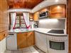 Das Wohnzimmer mit Kamin verfügt über einen Flachbild-Sat-TV, Stereoanlage mit CD-Player und einer gemütlichen Essecke mit Blick in die Landschaft. Der komplett eingerichtete Küchenbereich ist ausgestattet mit Spülmaschine, Herd mit Cerankochfeld und Backofen, Kühlschrank mit Gefrierfach, Kaffeemaschine, Toaster, Mikrowelle, Wasserkocher etc. und ausreichend Geschirr für 4 Personen.