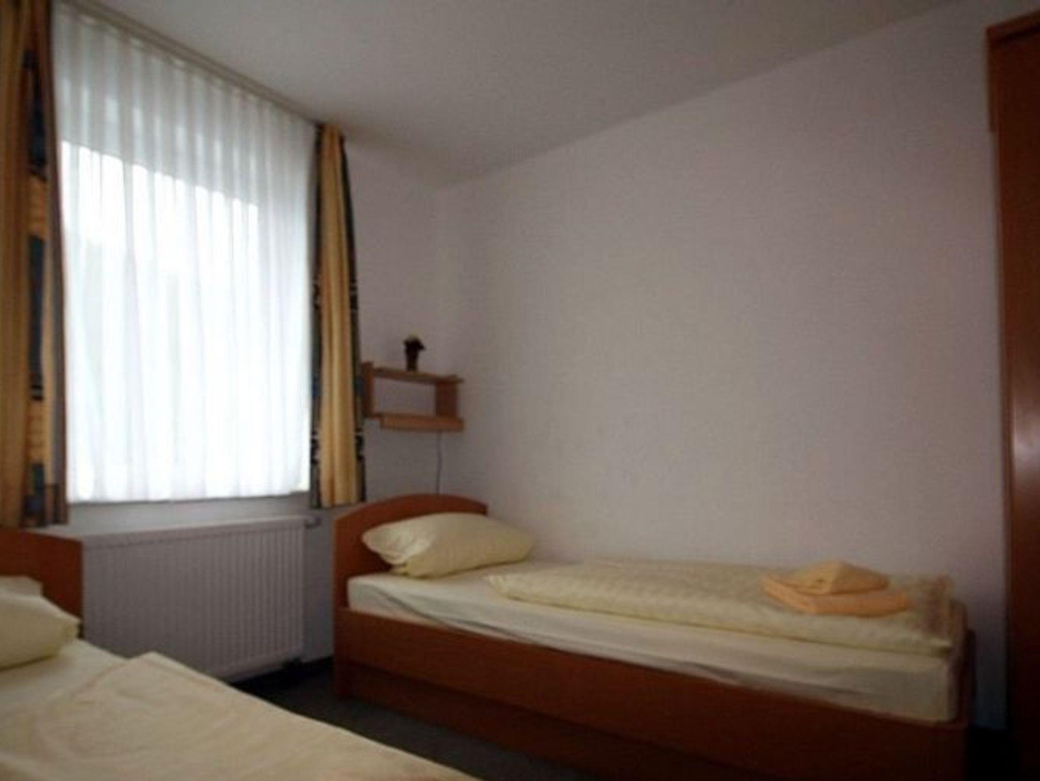 Die Wohnung ist aufgeteilt in ein Schlafzimmer mit Doppelbett, ein Schlafzimmer mit zwei Einzelbetten (Fernseher), Badezimmer, großzügigen Flur, Balkon und einem Küchen-/Wohnzimmer.