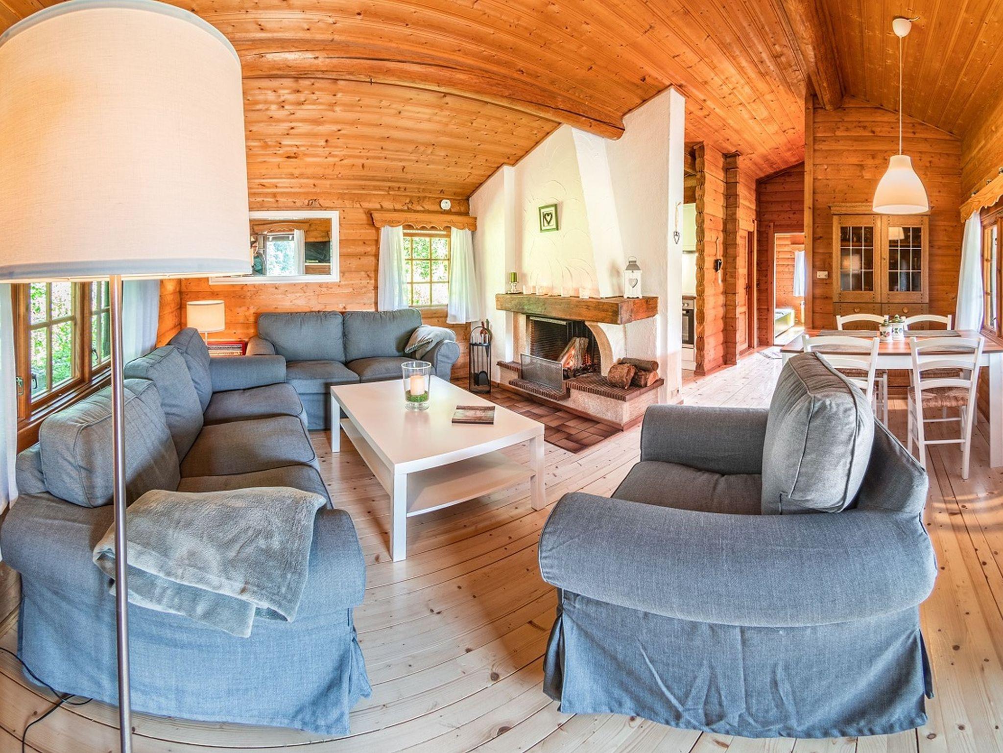 Das Chalet Bellevue, welches über Stufen erreichbar ist, ist für max. 6 Personen. Selbstverständlich bietet diese außergewöhnliche Blockhaus auf zwei Ebenen kostenloses WLAN, einen offenen Kamin und eine eigene Sauna (Kosten werden per Automat abgerechnet).