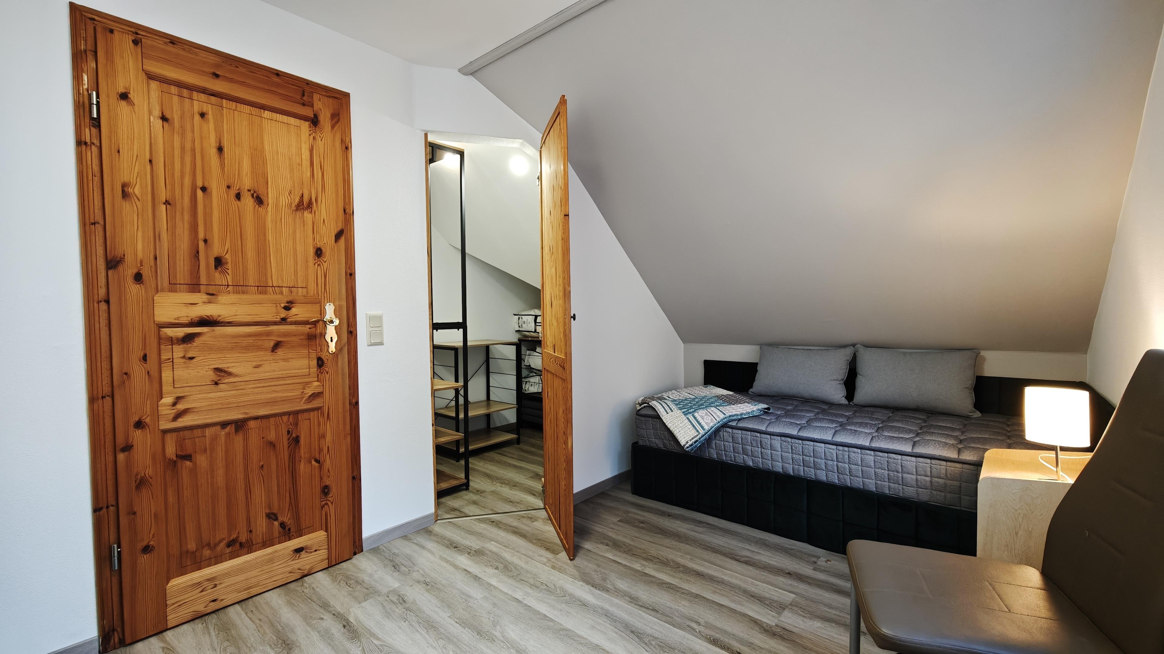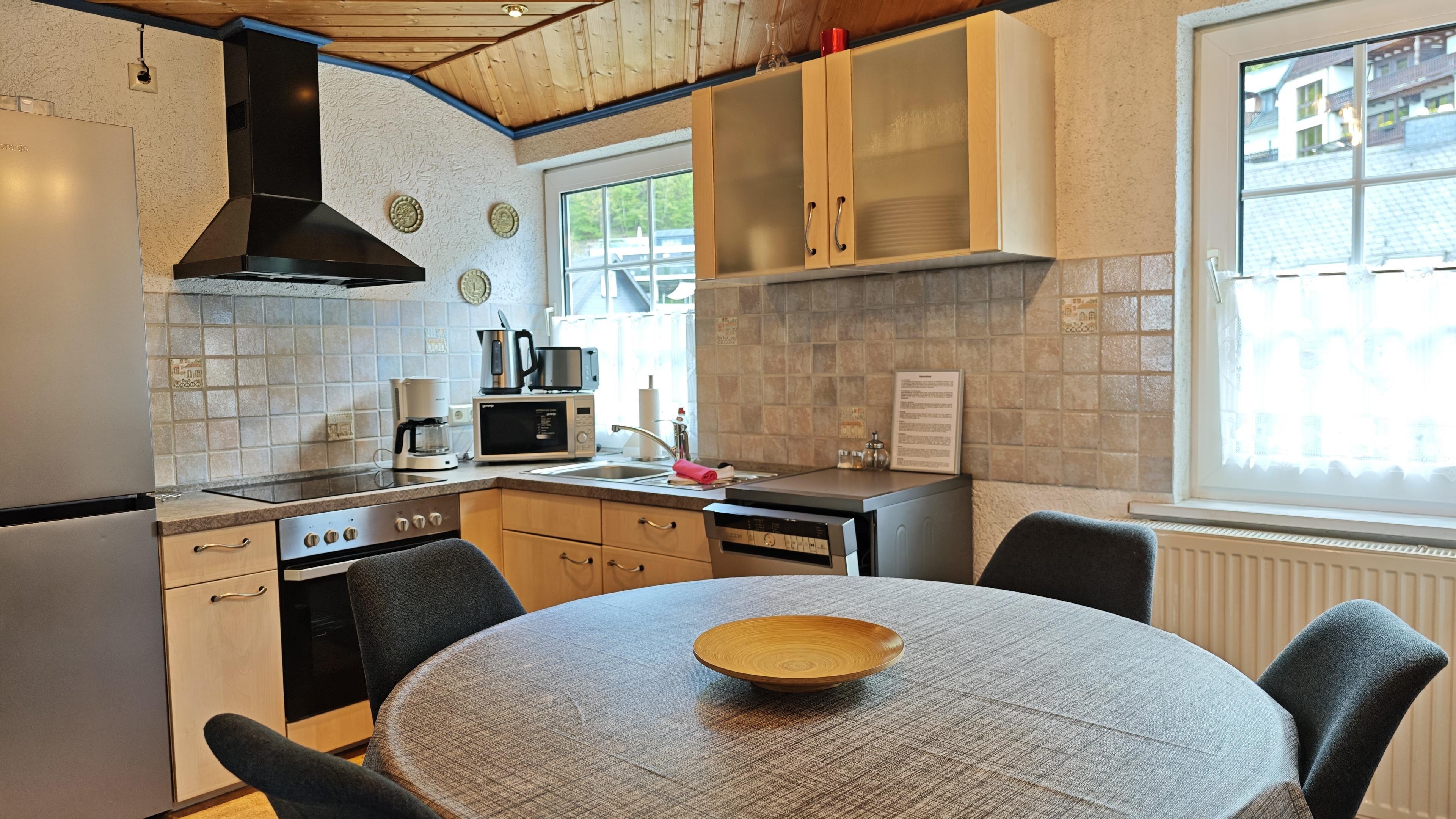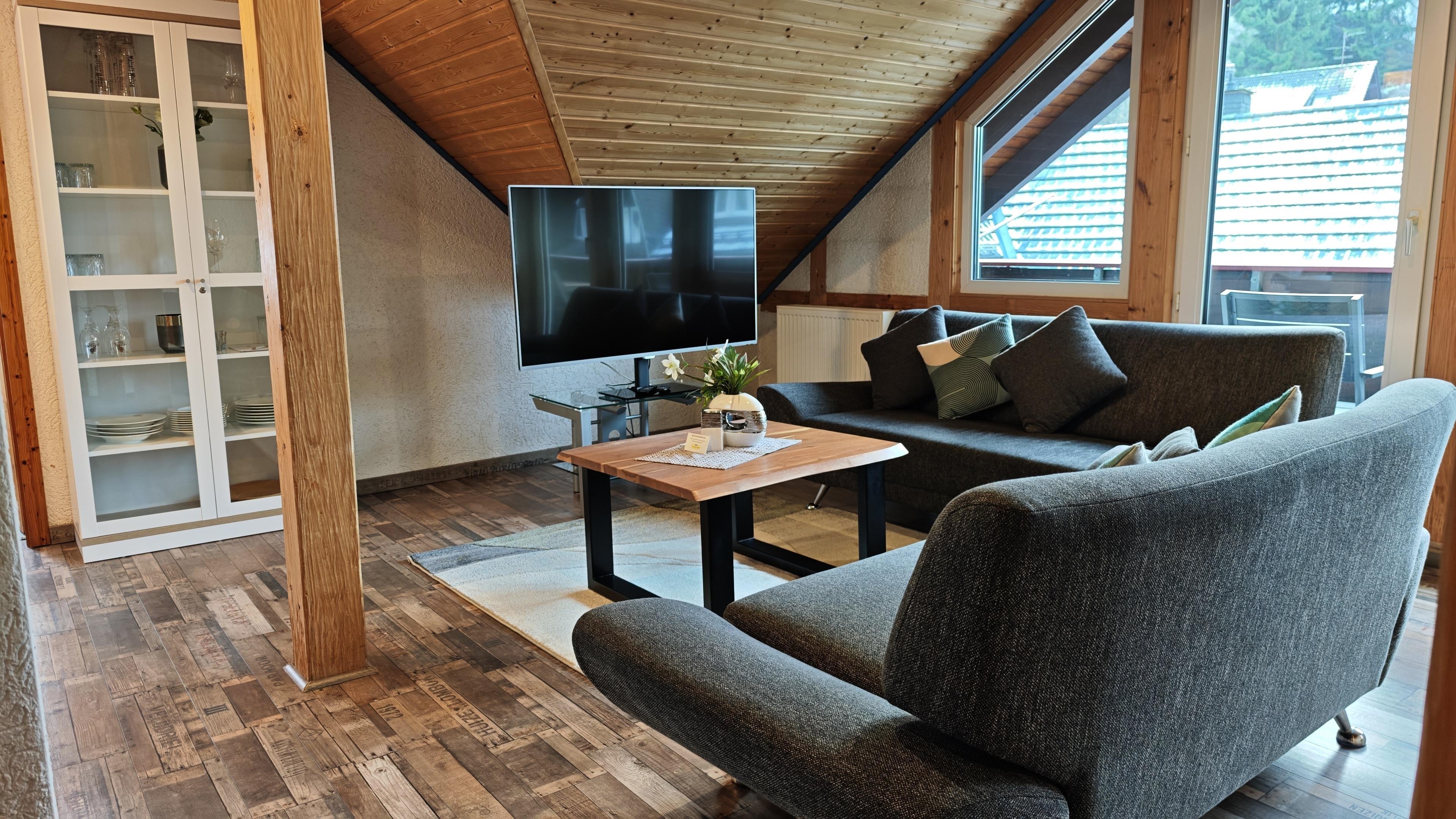 ie Ferienwohnung Sonnenschein ist 80m² groß und bietet einen kleinen Windfang im Obergeschoss, bevor Sie die eigentliche Wohnung im Daschgeschoss über eine Treppe betretten. Es stehen insgesamt zwei Schlafzimmer zur Verfügung welche beide mit einem gemütlichen Einzelbett sowie Doppelbett ausgestattet sind. Insgesamt finden hier 4 Erwachsene und 2 Kinder Platz. Das große Wohnzimmer mit Sitzecke, Sat-TV und Blu-Ray Player ist der Mittelpunkt der Wohnung. Hierrüber erreichen Sie den Giebelbalkon, mit Aussicht auf das Willinger Viadukt, und es grenzt an die große Einbauküche mit separater Essecke an, in der Sie nichts vermissen werden. Das Badezimmer ist in diesem Apartment bewusst auf zwei Räume aufgeteilt, mit Dusche/Waschbecken und WC/Waschbecken, so das immer 2 Personen gleichzeitig das Bad benutzen können.