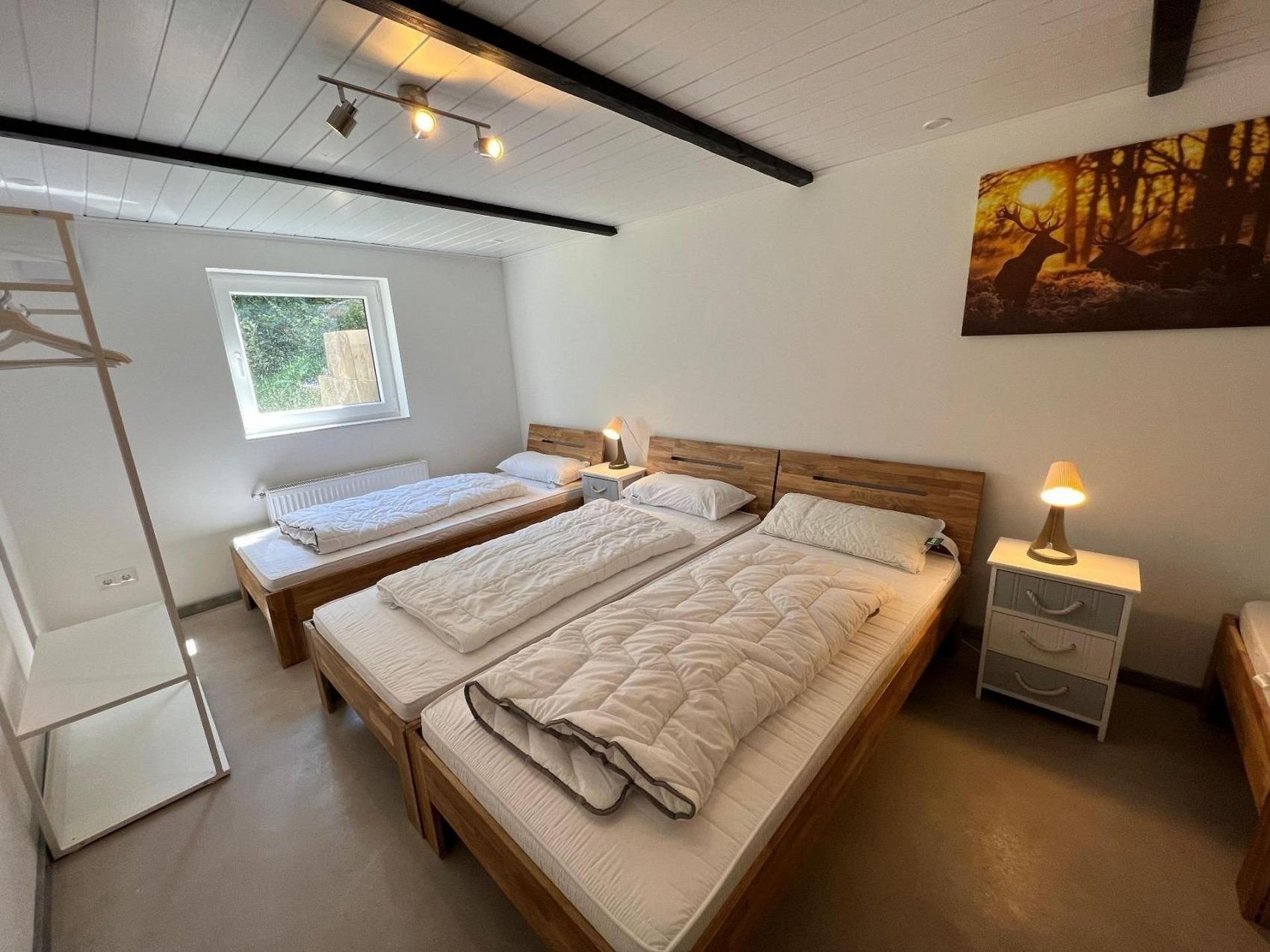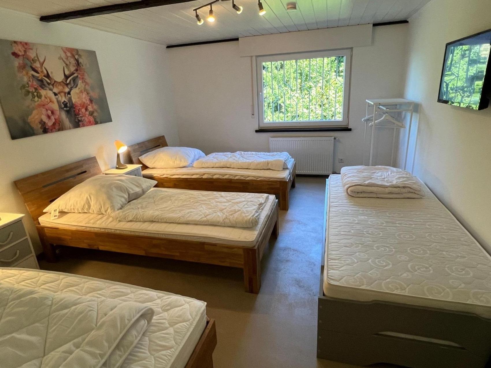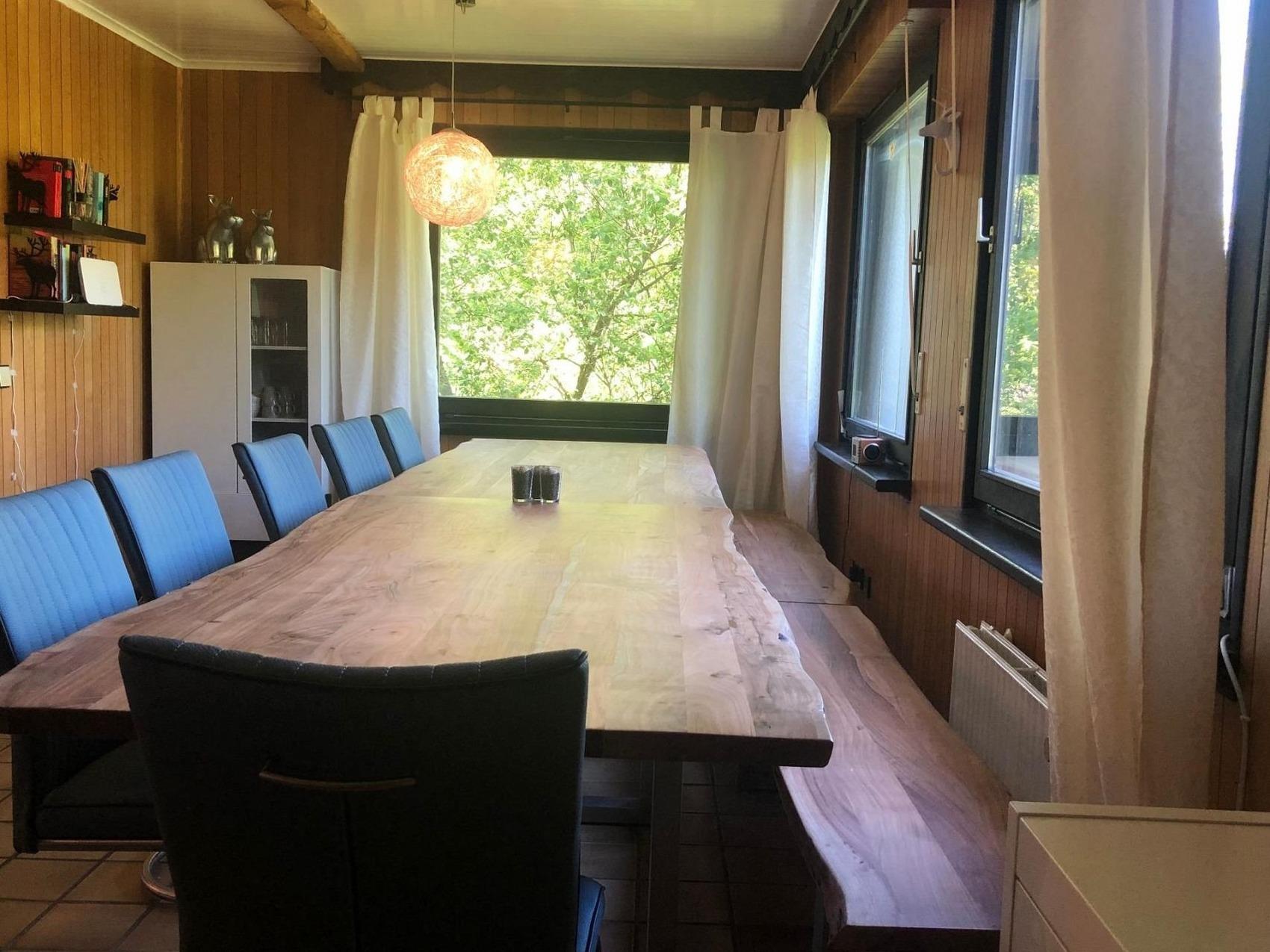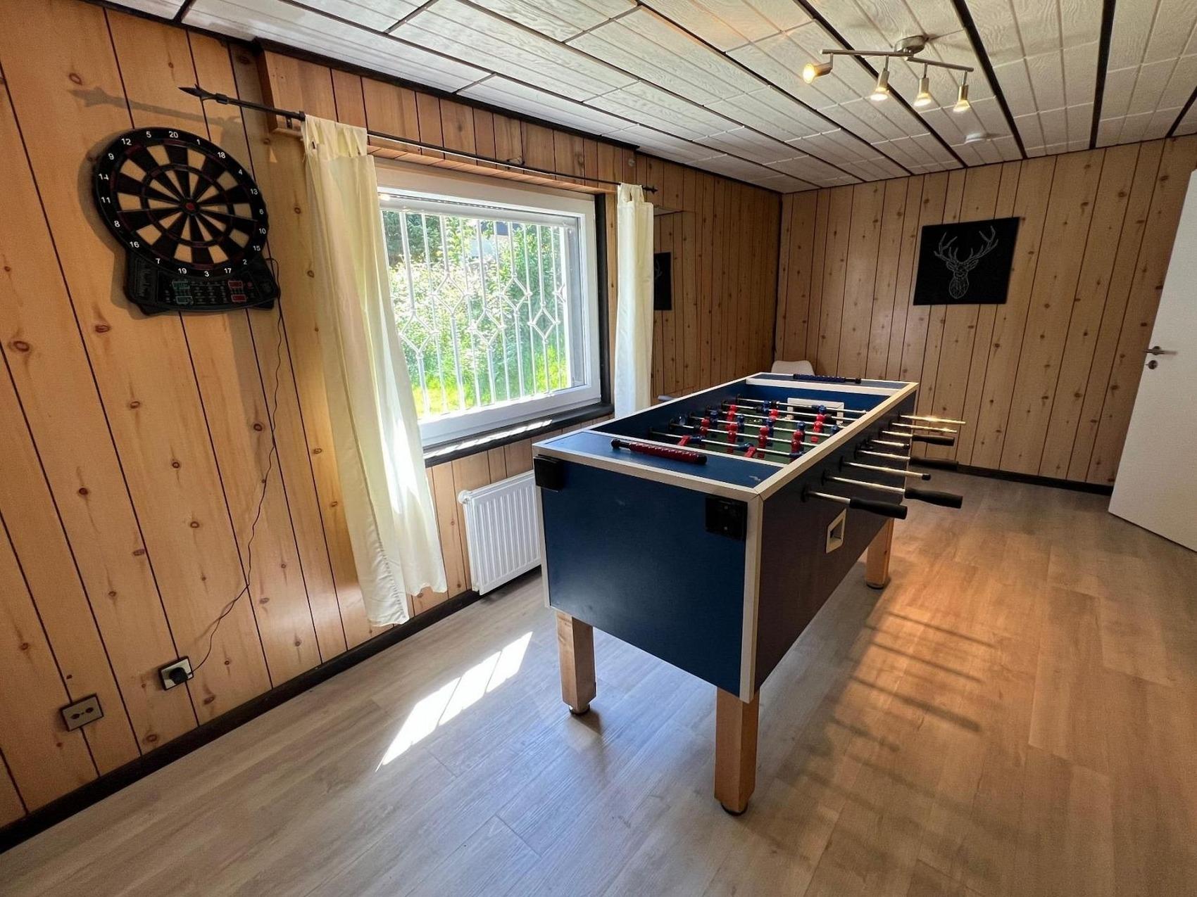 Herzlich Willkommen in unserem wunderschönen Ferienhaus - es ist ideal für mehrere Familien, Freundeskreise, Vereine, Teamevents oder ähnliches bis zu 19 Personen! Das Chalet BERGgrün bietet geräumige Zimmer, gemütliche Wohnbereiche und eine moderne Ausstattung. Genießen Sie schöne Abende mit Freunden oder Familie im großzügigen Garten mit überdachter Terrasse und Grill. Die Umgebung ist perfekt zum Wandern, Radfahren, Ski fahren oder einfach nur zum Genießen der Natur. Wir freuen uns darauf, Sie in unserem charmanten Ferienhaus willkommen zu heißen! Sie haben 4 Schlafzimmer. 1 Schlafzimmer für 4 Personen, 2S für 5P und im Dachgeschoss befindet sich das große gemütliche Schlafzimmer für 7 Personen. 3 Bäder sorgen für reibungslose Abläufe. Für einen erholsamen Urlaub mit gemeinsamem Kochen & Spieleabenden ist das Chalet BERGgrün Willingen eine gute Basis. Verbringen Sie die schönsten Tage im Jahr mit Ihrer (Groß-) Familie, Ihrem Team oder mit Freunden unter einem gemeinsamen Dach. Ein langer rustikaler Holztisch mit ausreichend modernen Stühlen für alle Urlauber ist perfekt für gemeinsame Mahlzeiten. Auf einer Gesamtwohnfläche von etwa 165m² sind Gemeinsamkeit in großer Runde oder individuelle Aktivitäten oder Mal das Rückziehen für jeden Einzelnen möglich. Für unterhaltsame Stunden stehen ein Kicker und eine Dartscheibe zur Verfügung. Das Ferienhaus ist modern und komfortabel eingerichtet, sodass Sie sich hier rundum wohlfühlen werden. Verbringen Sie unvergessliche Ferientage in diesem tollen Haus!WLAN ist im Haus verfügbar. Das Chalet BERGgrün Willingen befindet sich in der Nähe vom Skywalk Willingen, eine der weltweit längsten Hängebrücken der Welt und der Mühlenkopfschanze. Bis zur City sind es zu Fuß rund 20min und mit dem Auto 5 min. Anreise ab 16.30 Uhr, Abreise bis 10.30 Uhr. Bei Anfrage ggf. andere Zeiten möglich (evtl. können Mehrkosten entstehen).Die Stadt Willingen erhebt pro Gast und Nacht eine Kurtaxe von 2,50 EUR für jede Person ab 15 Jahre.