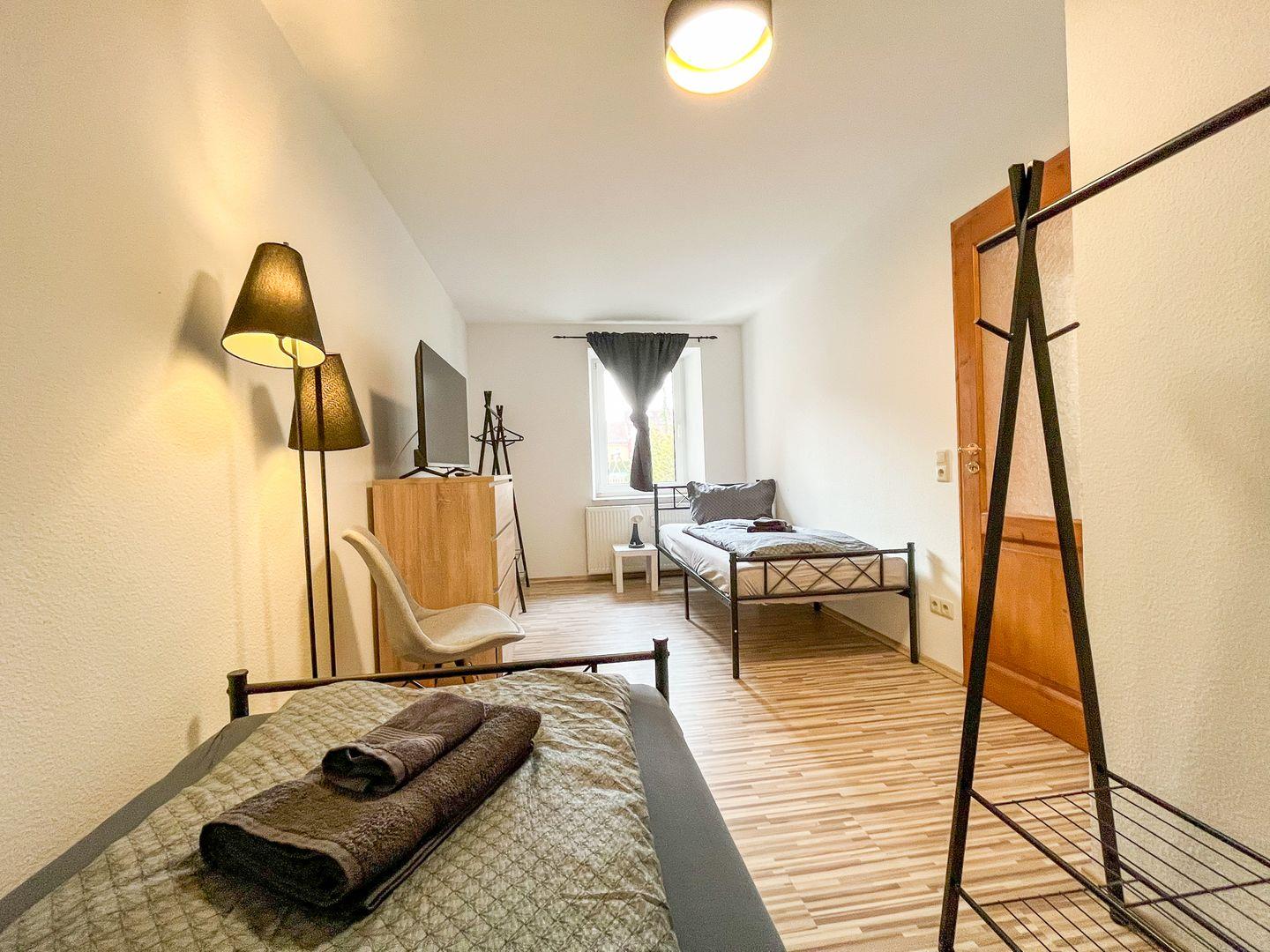 Entdecken Sie das komfortable Apartment in Wilsdruff – ideal für Monteure! Mit zwei Schlafzimmern bietet unsere Unterkunft Platz für bis zu vier Personen. Eine voll ausgestattete Küche, bequeme Betten und eine Waschmaschine machen die Wohnung ideal für längere Aufenthalte, WLAN und zwei Fernsehgeräte bieten weiteren Komfort.