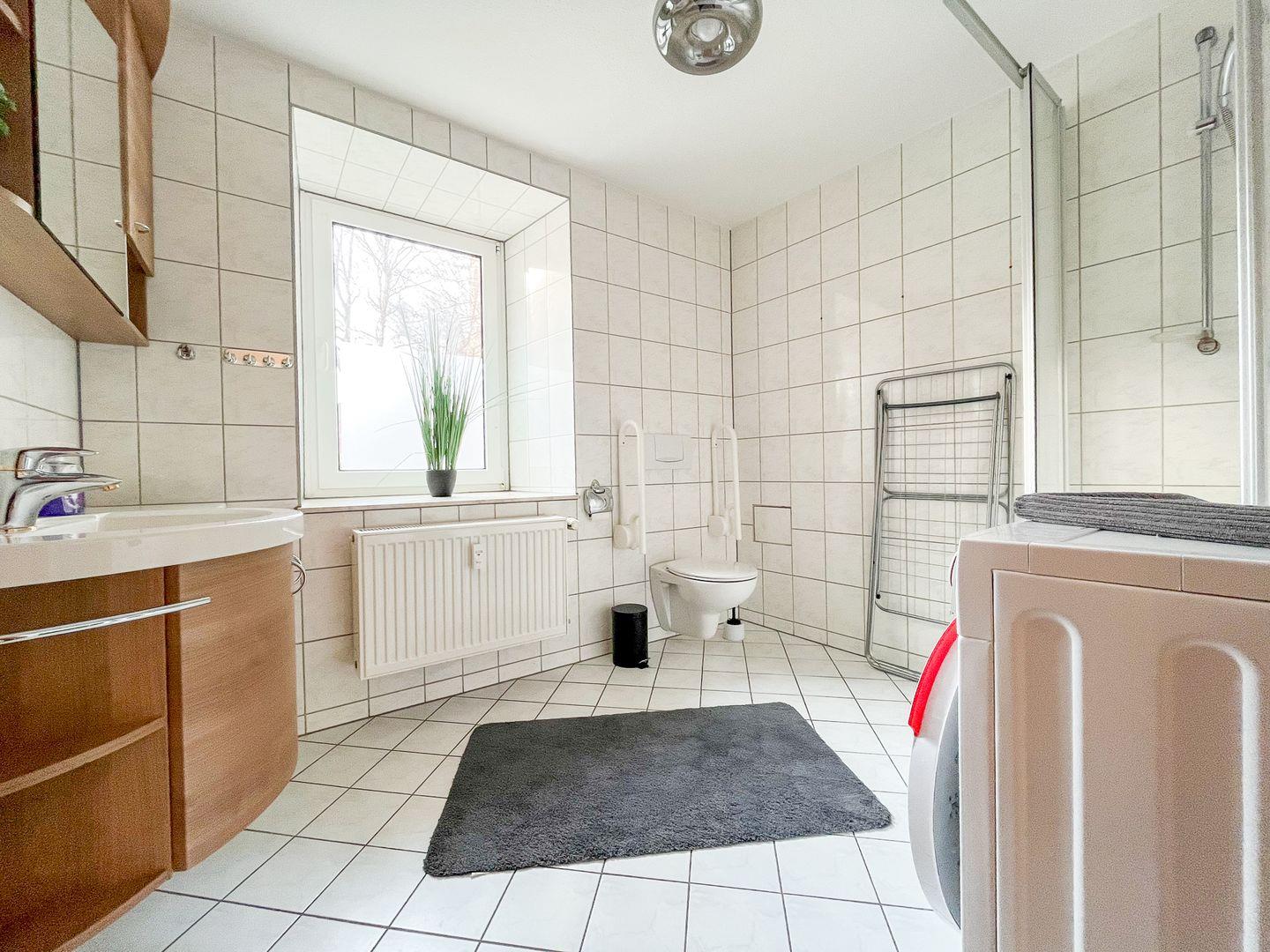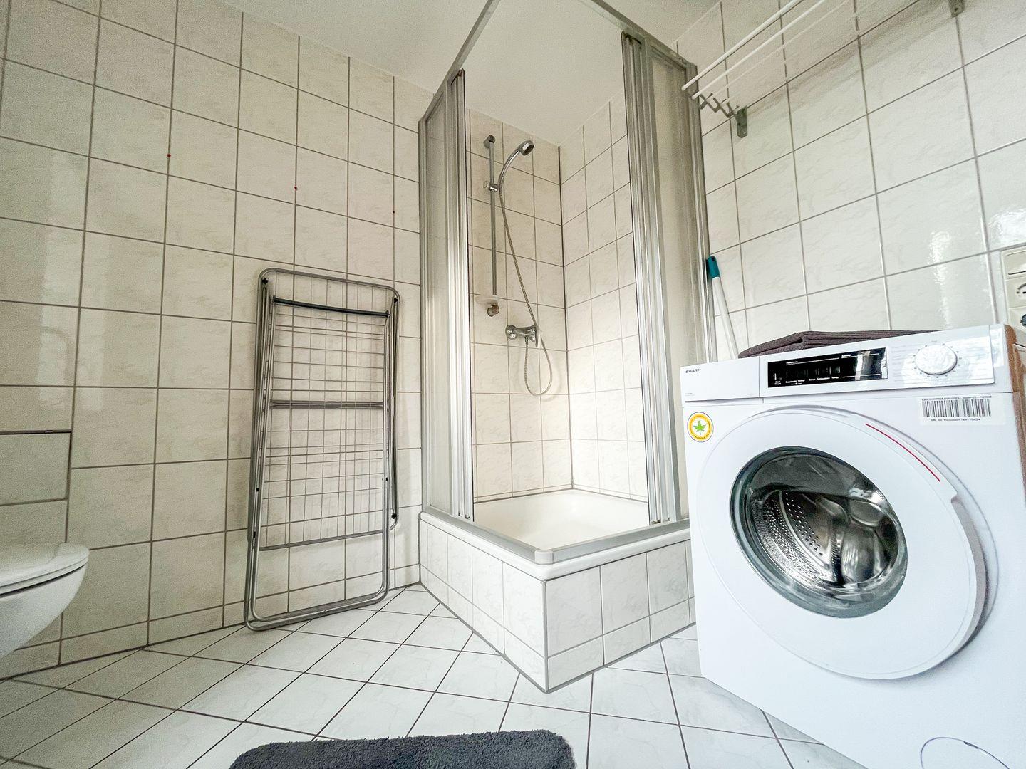 Waschmaschine: Eine Waschmaschine ist in der Wohnung vorhanden, um Ihre Wäsche bequem zu waschen.