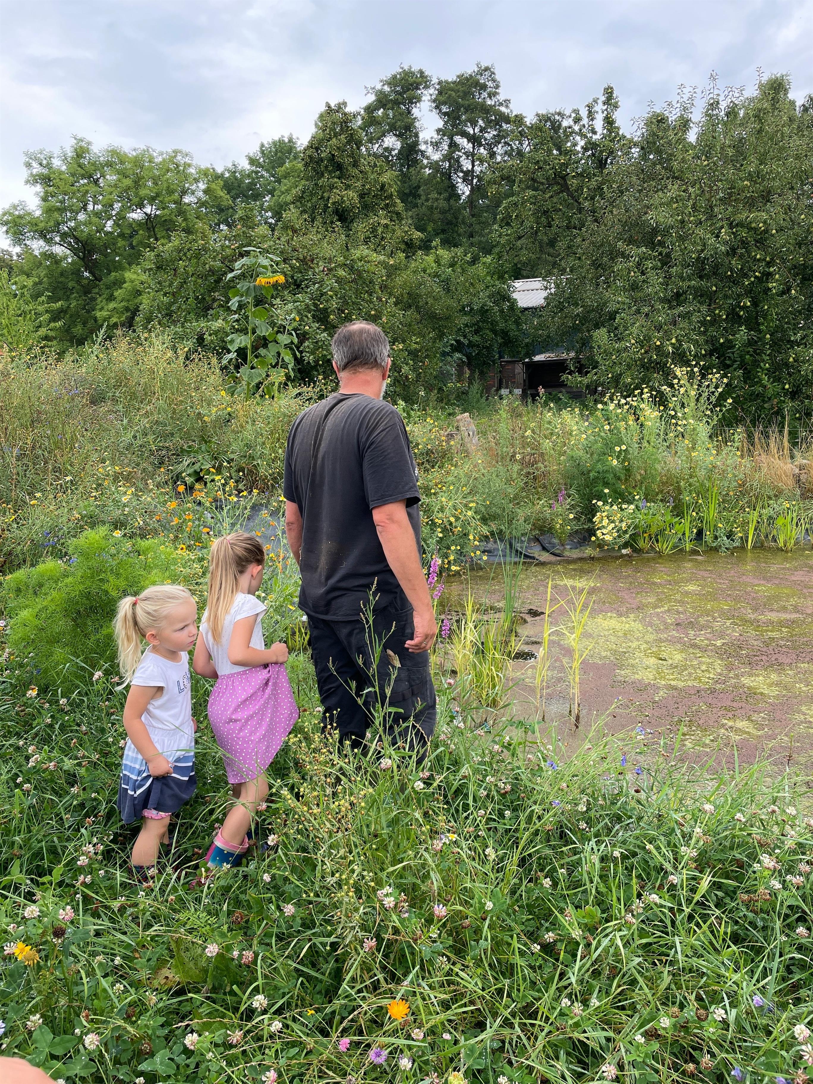Auch in unseren Teichen gibt es viel zu sehen. Wasserinsekten, Kleinstlebewesen und viele unterschiedliche Pflanzen und Bewohner, sowie Frösche und Libellen.