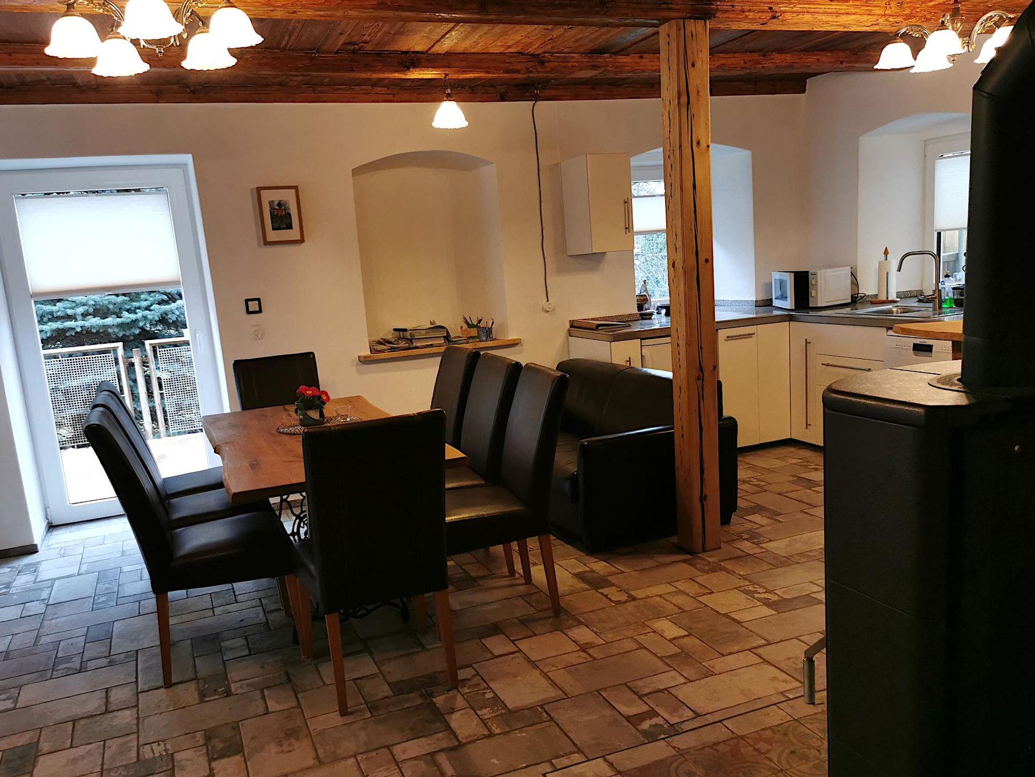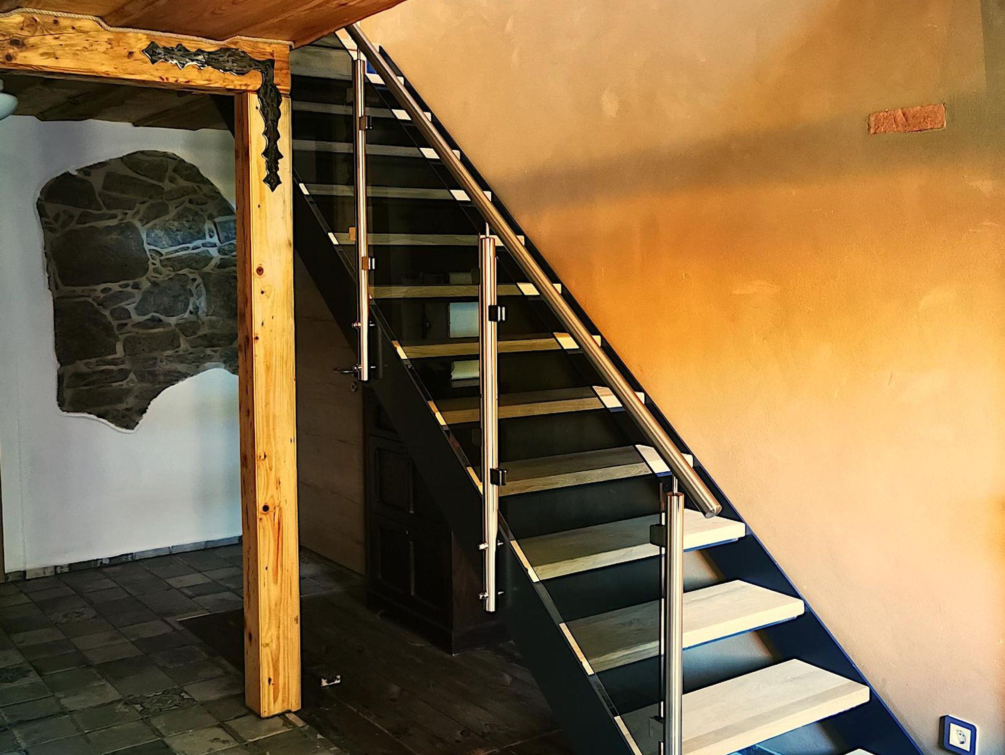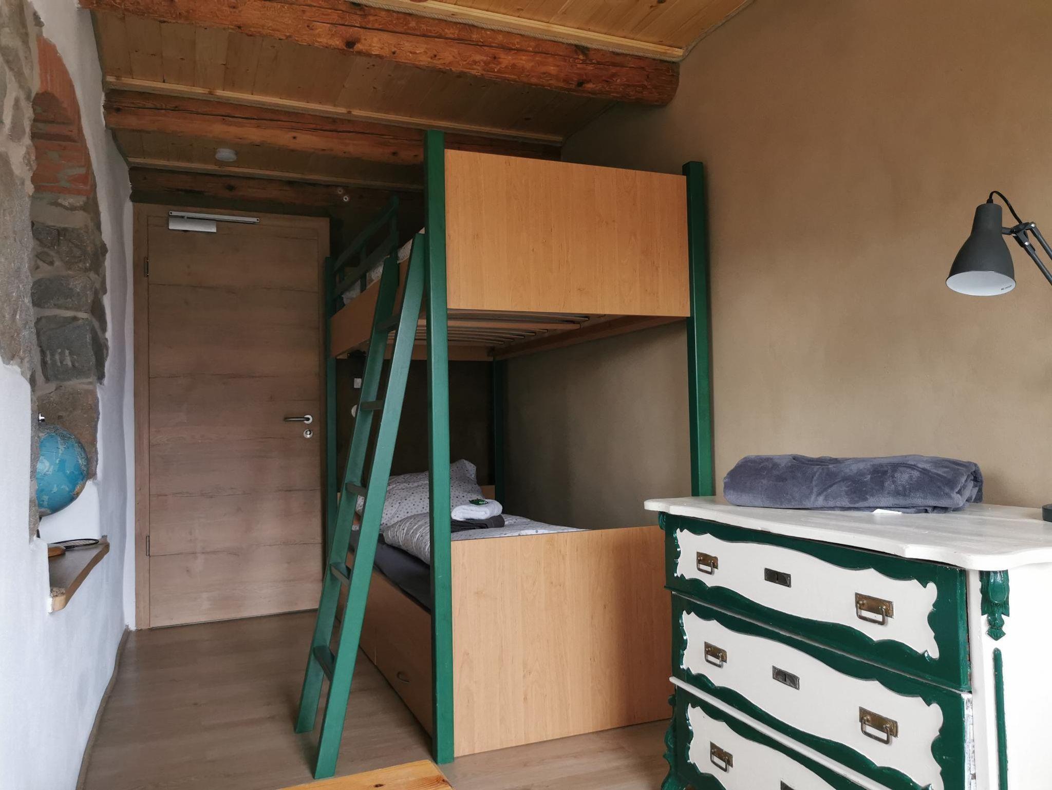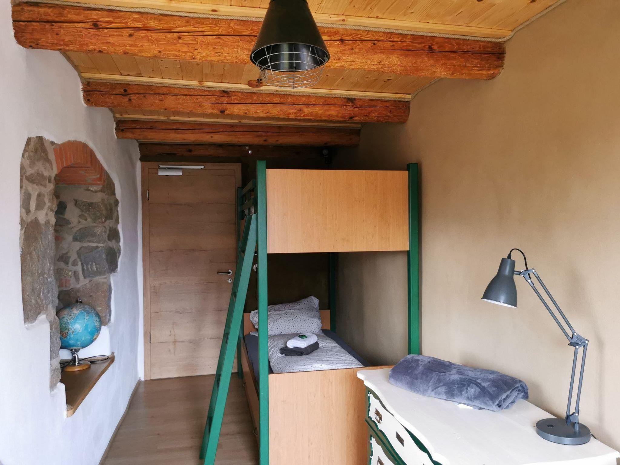 Tschaidana ist ein 11 qm großes, liebevoll saniertes und eingerichtetes Zwei-Bett-Zimmer im Obergeschoss. Das Zimmer verfügt über einen Laminatfußboden mit Fußbodenheizung sowie ein großes Fenster mit einem französischen Balkon. Tschaidana ist mit einem Doppelstockbett (90 cm x 200 cm), einer Kommode, einem Spiegel, einem kleinen Tisch und einer Sitzgelegenheit ausgestattet und kann als Kinderzimmer genutzt werden. Jeweils ein Bad mit WC und Dusche im Oberg- und Erdgeschoss sowie ein 30 qm großer Aufenthaltsraum mit einem gemütlichen Sofa und Flachbildfernseher mit Magenta TV und WLAN und einer voll ausgestatteten Wohnküche im Erdgeschoss sind zur gemeinschaftlichen Nutzung der Feriengäste vorgesehen. Ein eigener Kühlschrank für mitgebrachte Lebensmittel und Getränke steht für die Gäste von Tschaidana in der Wohnküche bereit. Die Dachterrasse nebenan lädt insbesondere an sonnigen Tagen zum Verweilen und Sonnetanken ein.