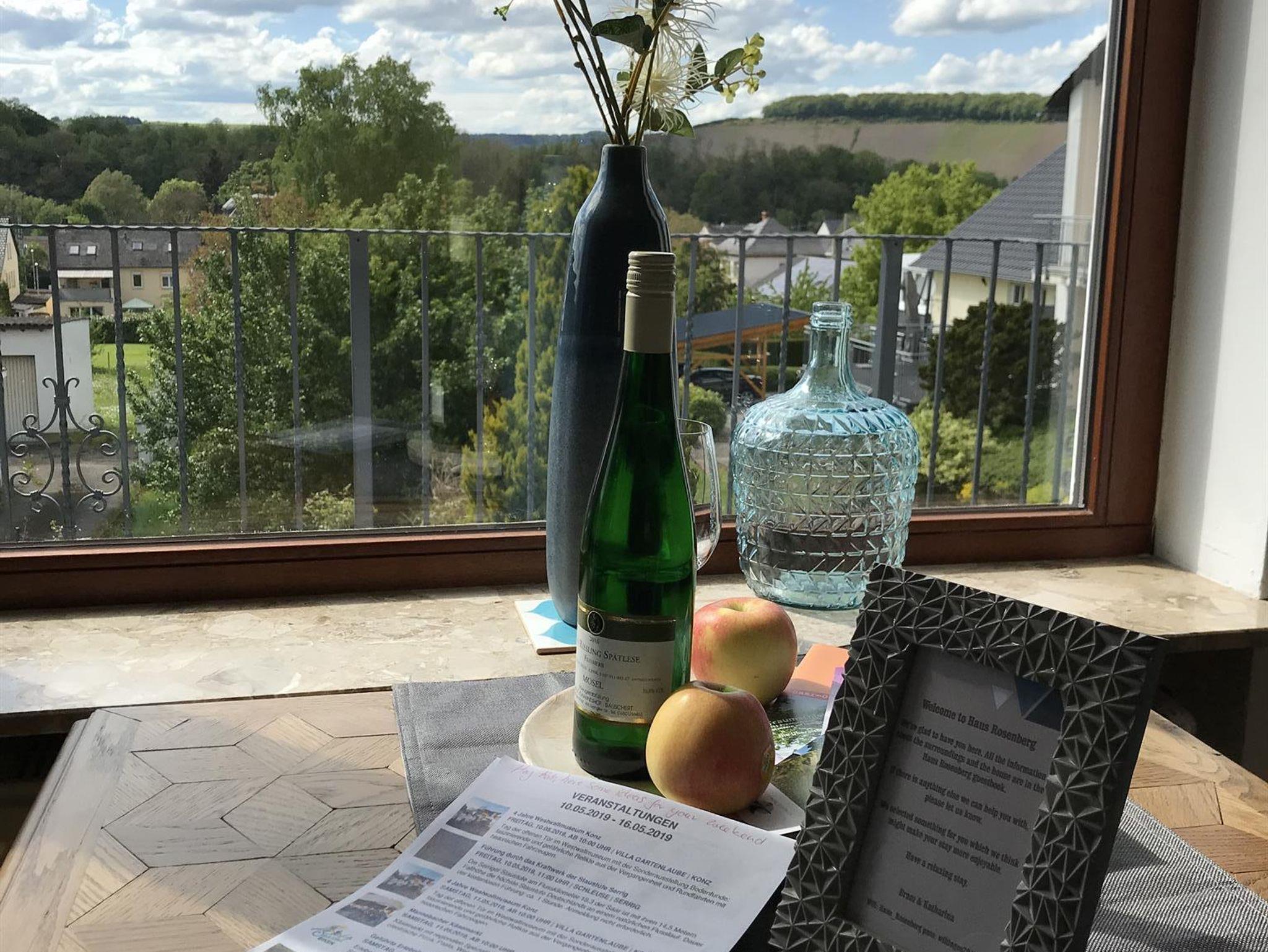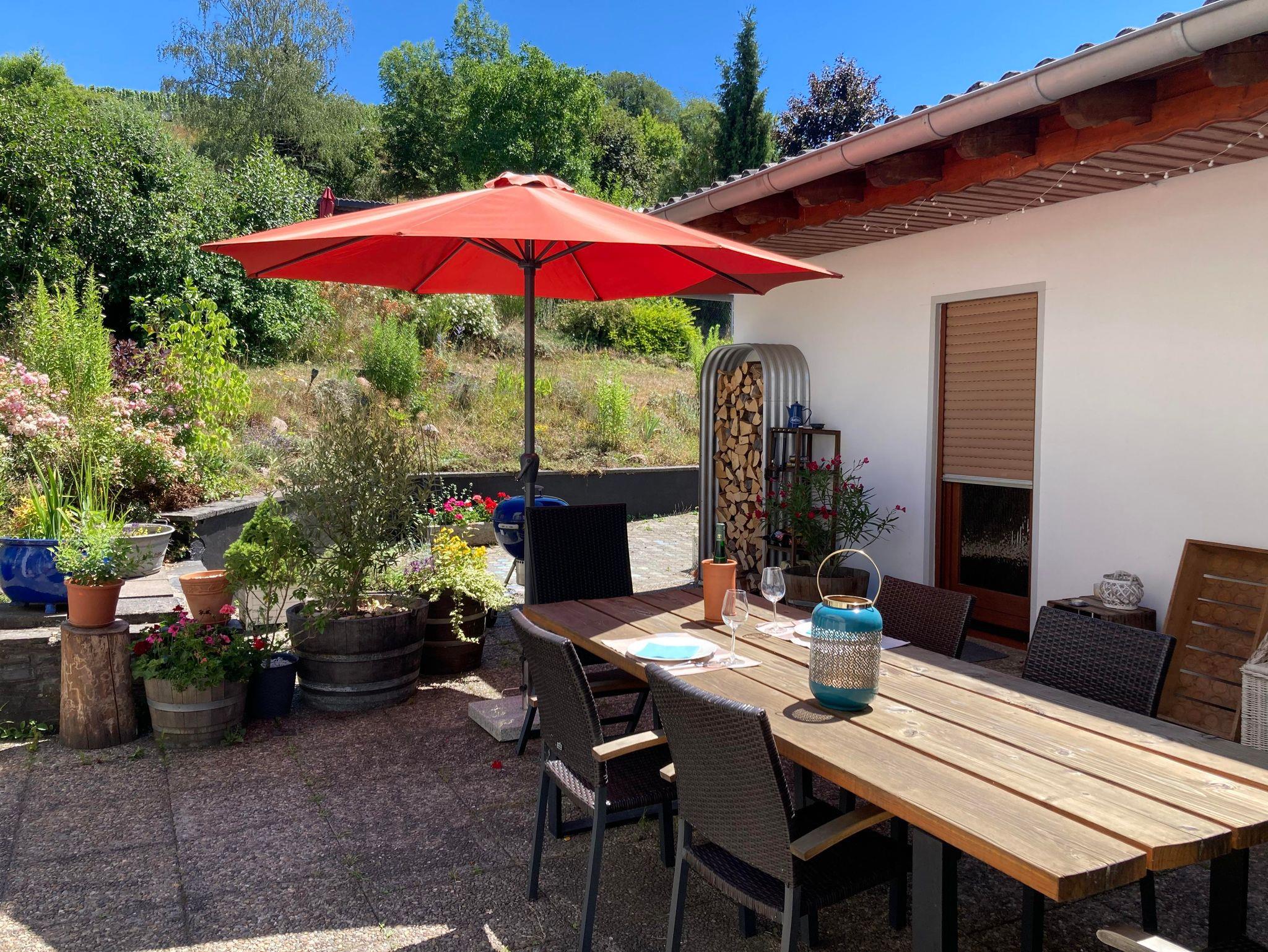 Unser hochwertig und stilvoll eingerichtetes Ferienhaus liegt im Weinort Wiltingen. Aus dem Wohnzimmer und vom Balkon bietet sich ein schöner Fernblick auf den Altenberg. Im großen Garten lässt es sich herrlich entspannen - in der Hängematte zwischen Apfelbäumen, beim Grillen oder oben auf unserem hauseigenen Berg mit einem Glas Riesling. Gleich hinter dem Gartentor wachsen schon die ersten Weinreben.
