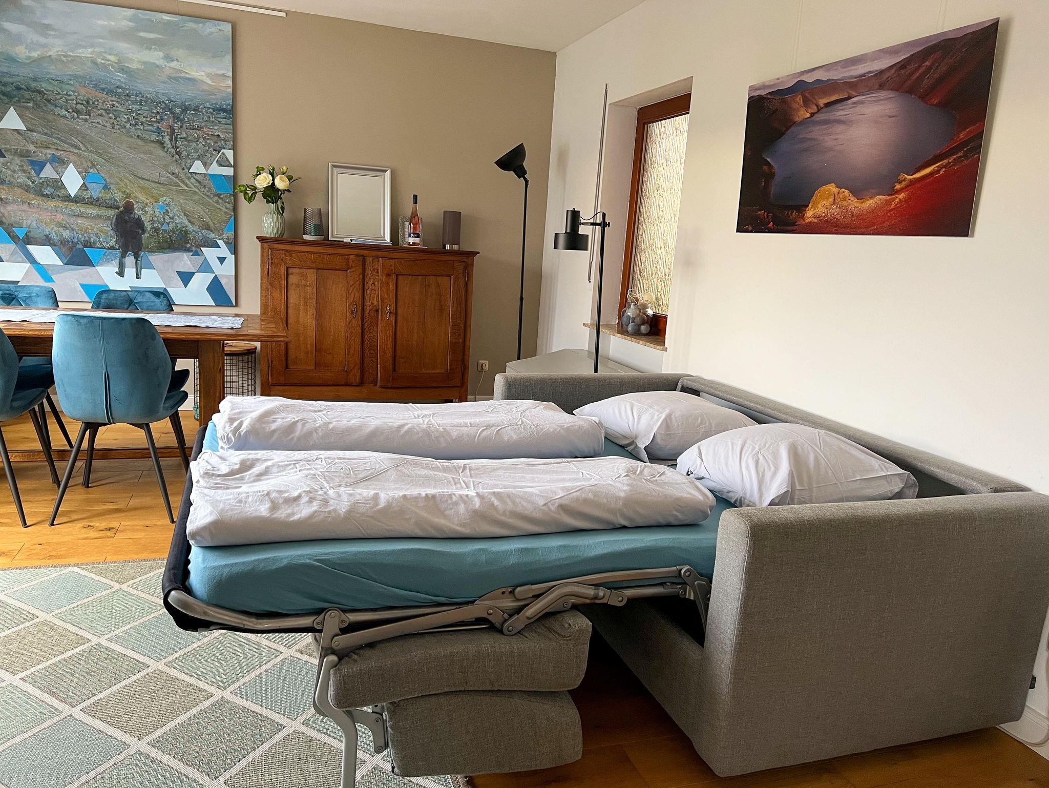Das schöne Eichenparkett, ausgewählte Antiquitäten und die geschmackvolle moderne Dekoration sorgen für Gemütlichkeit. W-LAN ist vorhanden. Kostenlose Parkplätze sind direkt vor der Türe. Bettwäsche, Handtücher, Küchentücher sind im Preis inbegriffen. Einen Kinderstuhl stellen wir bei Bedarf zur Verfügung.